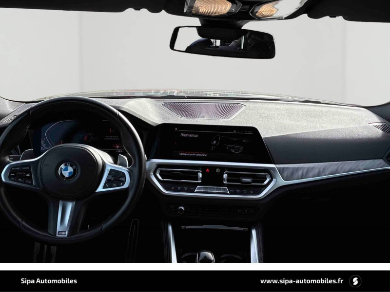 2 porte-gobelets sur la console centrale / 5 places / ABS, y compris assistant de freinage / Active Guard Plus Avertissement de collision frontale avec intervention de freinage grâce à un radar et à une caméra (entre 5 km/h et 250 km/h) - Avertissement de chauvechement de ligne avec impulsion sur la direction - Assistance de limitation de vitesse avec informations de limite de vitesse / Alarme antivol / Appel d'Urgence Intelligent (durée de vie de la voiture) / Avertisseur de franchissement de ligne avec intervention dans la direction / BMW EfficientDynamics / BMW Live Cockpit Navigation Pro / Boîte de vitesses automatique 8 rapports / Capacité du reservoir augmentée / Carte SIM 4G LTE pour les Services ConnectedDrive / Ceintures de sécurité 3 points pour toutes les places / Ciel de pavillon M Anthracite / Clés radiocommandées à mémorisation automatique des réglages "Personal Profile" / Commande électrique du volet de coffre / Connectivité avancée avec recharge sans fil par induction / Connexion multiple de téléphones / Contrôle de freinage en courbe CBC / Controller iDrive avec touches de raccourci / Désignation du modèle sur la malle à gauche / Détecteur de pluie et allumage automatique des projecteurs / Direction DirectDrive à démultiplication variable / Direction Servotronic à assistance variable en fonction de la vitesse / Eclairage d'accueil / Eclairage d'ambiance Eclairage lumineux dynamique pour 4 applications (bienvenue, au revoir, portes ouvertes et appel téléphonique) dans 9 coloris différents du tableau de bord, des panneaux de portes et de la console centrale. Comprend également les liseuses arrière, l'éclairage du rangement de l'accoudoir central avant et poignées d'ouverture de porte (intérieur et extérieur) ainsi qu'un éclairage de bienvenue avec tapis de lumière / Eclairage dans le coffre / Ecrous de roues antivol / Eléments extérieurs (poignées de portes et baguettes de toit) couleur carrosserie / Feux de croisement et feux de route à technologie Bi-LED / Feux de jour et clignotants AV/AR à LED / Frein de parking électromécanique avec fonction Auto-Hold / Grilles de calandre "Mesheffect" avec pépites en aluminium et cadres en chrome brillant / Hotspot Wi-Fi / Hybridation légère (48V) / Indicateur de limitation de vitesse / Inserts décoratifs Aluminium Tetragon soulignés de chrome perlé / Interface Bluetooth / Jantes en alliage léger 18'' style 858 M bicolores à rayons doubles 8,5 J x 18 / pneus 245/45 R 18 / Kit Eclairage / Kit rangement / Lève-vitres AV électriques avec commande par impulsion et protection anti-coincement / Mesure individuelle de pression des pneumatiques / Notice d'utilisation de la voiture intégrée et carnet d'entretien électronique avec BMW Service History / Ordinateur de bord avec Check-Control et indicateur de température extérieure / Pack Aérodynamique M / Pack Connected Pro / Park Assist / Préparation pour feux de route anti-éblouissement / Prises USB (1 type A dans la console centrale et 1 type C dans l'accoudoir central) / Protection active des piétons / Rampe commune de 3ème génération et un turbocompresseur à géométrie variable / Réglage de la largeur du dossier conducteur / Régulateur de vitesse avec fonction de freinage et limiteur de vitesse / Rétroviseur intérieur électrochrome / Rétroviseurs extérieurs couleur carrosserie et chauffants avec rappels de clignotants intégrés / Sélecteur de mode de conduite - (3 modes) ECO PRO, Comfort, Sport / Sellerie Alcantara / Similicuir Sensatec "Schwarz" avec surpiqûres contrastantes Bleues / Services Après-vente connectés BMW TeleServices (durée de vie de la voiture) - Appel Automatique - Appel Manuel - Appel "BMW Assistance - Teleservice Battery Guard - Appel Hotline / Services ConnectedDrive (Apps véhicules) (3 ans) / Seuils de portes avec inscription BMW / Shadow Line M brillant Eléments en noir à haute brillance : - Panneaux de garnissage des montants B et C - Encadrement extérieur des vitres latérales - Pieds et triangles des rétroviseurs extérieurs - Rails de toit (Touring) / Sièges Advanced conducteur et passager AV réglables en hauteur et inclinaison du dossier (sans réglage de largeur du dossier) / Sortie d'échappement simple à gauche et à droite de 90 mm / Suspensions DirectDrive / Système anti-collision à basse vitesse / Système de récupération de l'énergie au freinage / Tapis de sol en velours / Technologie 4 roues motrices intelligente xDrive / Technologie BMW TwinPower Turbo avec injection directe / Teinte de carrosserie unie (Alpinweiss) / Touches multifonctions sur le volant / Triangle de présignalisation avec kit de premiers secours / Tuner DAB Inclus DAB+. Permet la réception de la radio numérique en plus de la radio analogique et offre une qualité sonore proche du CD. Des informations supplémentaires comme le titre et l'interprète sont transmises sous forme de texte. La Radio Numérique Terrestre est disponible à Paris, Marseille, Nice et Monaco, Lille, Lyon, Nantes, Rouen, Strasbourg et Toulouse. Les stations de radio numériques sont essentiellement des stations associatives, locales ou indépendantes / Verrouillage centralisé des portes, du coffre et de la trappe à essence / Vitres avec protection contre la chaleur et le soleil / Volant M gainé cuir Trois branches, aplati en bas et marque à 12 heures en noir. Volant en cuir noir 'Walknappa' avec surpiqûres noires, inserts chrome nacré et repose-pouce dans le volant. Logo M sur la base du volant.