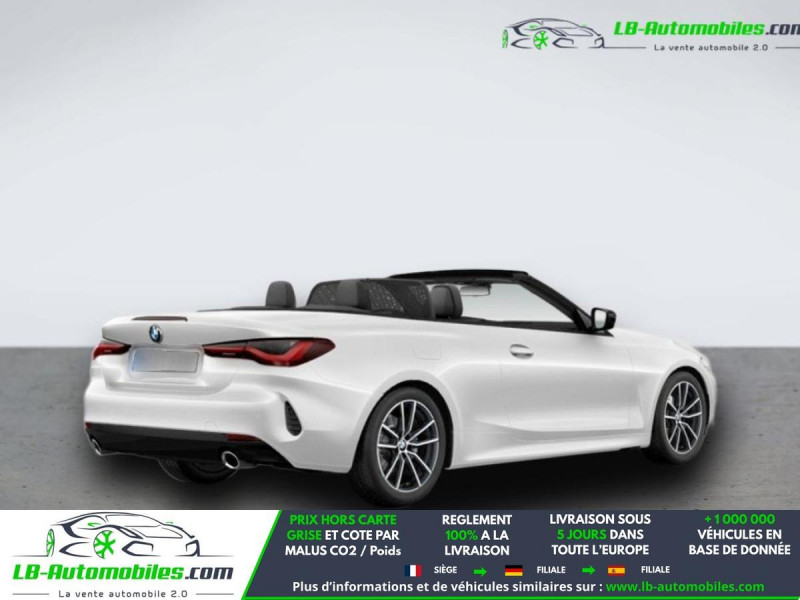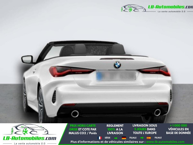 Référence : 1205712 Vos Avantages chez LB-AUTOMOBILES.com / Prix affiché TTC Livré hors carte grise / Livraison sous 10 jours dans toute la France hors 31 / Pas d?avance de frais paiement du véhicule 100% à la livraison par virement. BMW Série 4 Cabriolet Neuf remisée, BMW Série 4 Cabriolet Occasion Toulouse Beaupuy 31850, BMW Série 4 Cabriolet Véhicule sorti de réseau collaborateur, BMW Série 4 Cabriolet import, BMW Série 4 Cabriolet importateur, BMW Série 4 Cabriolet Livraison possible dans toute la France sous 5 jours, BMW Série 4 Cabriolet, BMW Série 4 Cabriolet Location Option Achat, BMW Série 4 Cabriolet LLD, BMW Série 4 Cabriolet Longue Durée, BMW Série 4 Cabriolet TVA récupérable. Possibilité d'extension de garantie 12, 24,36 mois, Pour tout autres voitures import neufs ou occasions collaborateur fortement remisée, Mandataire Audi, Mandataire BMW, Mandataire Volkswagen, Mandataire Mercedes, Mandataire Peugeot Espagne, Mandataire Renault Espagne, Porsche import, Mandataire Citroën Espagne, Mandataire Seat Espagne, n'hésitez pas à nous contacter. « Sous réserve de vente préalable et erreur de saisie » Principaux équipements : - ABS - Accoudoir - Antidémarrage - Assistance au freinage d'urgence - Assistance de démarrage en côte - Assistant d'angle mort - Avertisseur de franchissement de ligne - Bluetooth - Capteur de lumière - Capteur de pluie - Carnet d'entretien - Cockpit numérique - Commande vocale - Contrôle de la pression des pneus - Diesel avec filtre à particules - Direction assistée - Éclairage d'ambiance - Écran tactile - ESP - Fermeture centralisée - Feux de jour LED - Garantie - GPS - Isofix - Jantes alliage - Kit mains libres - Lecteur CD - Ordinateur de bord - Phares LED - Port USB - Propulsion - Radio DAB - Réglage électrique des sièges - Régulateur de vitesse adaptatif - Rétroviseur extérieur électrique - Rétroviseur intérieur anti-éblouissement automatique - Sièges chauffants - Sièges sport - Support lombaire - Système antipatinage - Système d'alarme - Système d'appel d'urgence - Système d'avertissement de la distance - Système de détection de la fatigue - Système de reconnaissance des panneaux de signalisation - Système de sonorisation - Système Stop & Start - Tuner/radio - Verrouillage centralisé sans clé - Vitres électriques - Volant chauffant - Volant en cuir - Volant multifonction - WLAN / point d'accès Wi-Fi