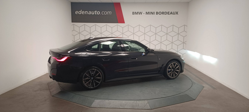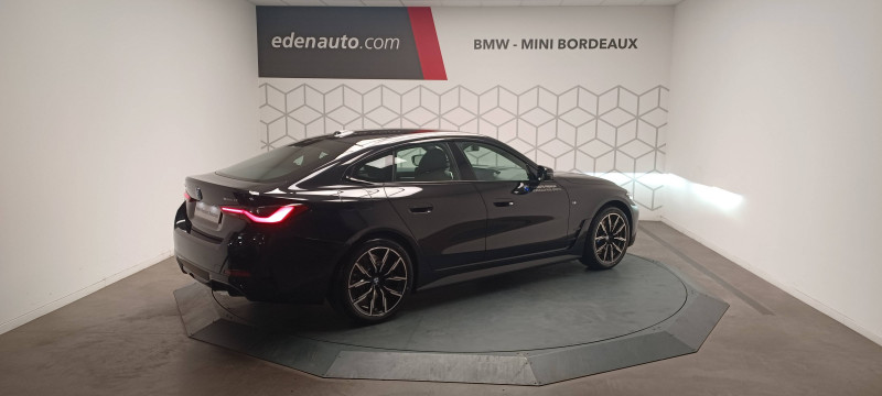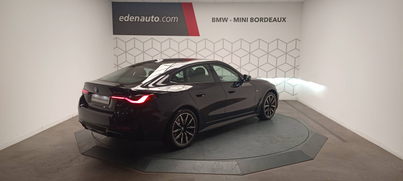 2 porte-gobelets sur la console centrale / 5 places / ABS, y compris assistant de freinage / Active Guard Plus Avertissement de collision frontale avec intervention de freinage grâce à un radar et à une caméra (entre 5 km/h et 250 km/h) - Avertissement de chauvechement de ligne avec impulsion sur la direction - Assistance de limitation de vitesse avec informations de limite de vitesse / Alarme antivol Surveillance des portes, coffre et capot moteur, protection de l'habitacle, détecteur de soulèvement et sirène. / Appel d'Urgence Intelligent (durée de vie de la voiture) Appel automatique vers le centre d'assistance BMW en cas d'accident. Touche SOS pour Appel d'Urgence manuel. Les données importantes sont automatiquement transmises aux secours : identification et localisation de la voiture, nombre de passagers à bord, statuts des airbags. Ce service utilise la carte SIM montée d'usine et ne requiert pas l'utilisation du smartphone. / BMW Curved Display / BMW EfficientDynamics Système de récupération de l'énergie au freinage, Direction à assistance électrique Servotronic / BMW Live Cockpit Navigation Plus Dalle numérique BMW Widescreen de 12,3'' derrière le volant et 14,9'' au dessus de la console centrale. BMW Intelligent Personal Assistant Fonctions Intelligentes (3 ans) Remote Software Upgrade (durée illimitée) / Boîte de vitesses automatique 1 rapports / Boîte de vitesses automatique 1 rapports / Câble de recharge Professionnel Mode 3 (T2-T2) pour la recharge publique - 5 mètres Câble de recharge Professionnel de Mode 3 triphasé avec prises Type 2 - Type 2 destinéà la recharge sur bornes publiques ou privées. Peut être utilisé sur une borne de recharge raccordée en courant monophasé ou triphasé avec des puissances de charge maximales : 7,4 kW / 32 A (en monophasé) et de 22 kW / 32 A (en triphasé). Rangement dans le coffret à câbles sous le cache du compartiment à bagages. Couleur Gris basalte / Carte SIM 4G LTE pour les Services ConnectedDrive / Ceintures de sécurité 3 points pour toutes les places / Ciel de pavillon M anthracite / Clés radiocommandées à mémorisation automatique des réglages "Personal Profile" / Climatisation automatique 2 zones Contrôle de la température et du volume d'air distribué avec 5 niveaux d'intensité, réglables séparément entre le conducteur et le passager. Fonctionnalité SYNC pour que les réglages du conducteur s'appliquent à l'ensemble de l'habitacle. Contrôle commun de la température à l'AR. Capteur d'humidité et d'ensoleillement, filtre à charbon actif et microfiltre. / Commande électrique du volet de coffre Ouverture du volet de coffre, à distance via la clé radiocommandée; fermeture via la clé ou le bouton situé sur le volet de coffre. / Connexion multiple de téléphones / Contrôle Dynamique de la Traction (DTC) et Contrôle Dynamique de Stabilité (DSC) / Controller iDrive avec touches de raccourci / Désignation du modèle sur la malle à droite / Détecteur de pluie et allumage automatique des projecteurs / Eclairage d'accueil / Eclairage d'ambiance Eclairage lumineux dynamique pour 4 applications (bienvenue, au revoir, portes ouvertes et appel téléphonique) dans 9 coloris différents du tableau de bord, des panneaux de portes et de la console centrale. Comprend également les liseuses arrière, l'éclairage du rangement de l'accoudoir central avant et poignées d'ouverture de porte (intérieur et extérieur) ainsi qu'un éclairage de bienvenue avec tapis de lumière / Eclairage dans le coffre / Ecrous de roues antivol / Eléments extérieurs (poignées de porte, baguettes de toit) couleur carrosserie / Feux de croisement et feux de route à technologie LED / Feux de jour et clignotants AV/AR à LED / Feux de route anti-éblouissement - Fonction à la demande Possibilité de post-équiper le véhicule de la fonctionnalité« feux de route anti-éblouissement » via le ConnectedDrive Store via le Remote Software Upgrade (mise à jour logicielle à distance) / Finition M Sport / Fonctionnalité "Follow Me Home" (éclairage d'accompagnement) : les feux de croisement restent allumés quelques instants une fois le contact coupé / Fonctionnalité Plug&Charge / Frein de parking électromécanique avec fonction Auto-Hold / Freins M Sport bleus Etriers de freins bleus avec désignation M à l'AV. Essieu AV : étriers fixes à quatre pistons en aluminium léger / Essieu arrière : étriers flottants à piston unique pour une sentation de pédale de frein plus sportive. Stabilité thermique accrue / Grilles de calandre "Mesheffect" avec pépites en aluminium et cadres en chrome brillant / Inserts décoratifs M Aluminium Rhombicle Anthracite / Interface Bluetooth / Jantes en alliage léger 18" aérodynamique style 858 M bicolores à rayons doubles 8,5 J x 18 / pneus 245/45 R 18 9 J x 18 / pneus 255/45 R 18 Comprend Ecrous antivol de roues. / Kit de rangement - Bac de rangement dans les portes avant (une bouteille de 1L peut y prendre place) Contrôle Dynamique de la Stabiité DSC et Contrôle Dynamique de la Traction DTC - Prise 12 V dans la console centrale "Controller" iDrive avec touches de raccourci - Double prise USB Type C dans la console centrale arrière Détecteur de pluie et allumage automatique des projecteurs - Filets au dos des sièges avant et dans le coffre à bagages, / Kit Eclairage / Lève-vitres AV électriques avec commande par impulsion et protection anti-coincement / Mesure individuelle de pression des pneumatiques / Norme GSR 2 (General Safety Regulation) / Notice d'utilisation de la voiture intégrée et carnet d'entretien électronique avec BMW Service History / Ordinateur de bord avec Check-Control et indicateur de température extérieure / Pack aérodynamique M / Pack Connected Professional Fonctions "Ma BMW à distance" (durée inderterminée),Remote 3D View (Vue 3D à distance) (durée indeterminée),In-Car Experiences (3 ans), Connected Navigation (3 ans), Inf
