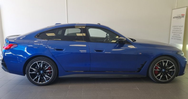 BMW i4 M50 M Performance - 2024 - 34 500 km L’électrique selon BMW M : puissance, luxe et technologie L’Agence Automobilière de Nice vous propose cette exceptionnelle BMW i4 M50 M Performance, une berline sportive 100 % électrique qui incarne parfaitement l’alliance entre performance extrême, design premium et technologie de pointe. Mise en circulation en 2024, avec 34 500 km, cette i4 M50 représente une opportunité rare d’accéder à l’univers BMW M électrique, dans une configuration haut de gamme, récente et extrêmement performante. Dotée de la version M Performance, cette i4 développe une puissance impressionnante, offrant des accélérations fulgurantes, une tenue de route exceptionnelle et une conduite à la fois sportive, précise et silencieuse, fidèle à l’ADN BMW M, tout en bénéficiant du confort et du raffinement d’une berline premium moderne. Points forts du véhicule : Année : 2024 Motorisation 100 % électrique BMW M Performance Version i4 M50 hautes performances Transmission intégrale (xDrive) Accélérations ultra sportives Conduite silencieuse et instantanément réactive Design M sport exclusif Finition premium haut de gamme Technologies embarquées dernière génération Tenue de route exceptionnelle Véhicule prestige Berline sportive électrique premium Options 17600 € : - Pack Innovation: 4500€ - Jantes en alliage 19' - 1150€ - Cuir Vernasca - 1600€ - Pack M Sport Pro - 1350€ - Toit Ouvrant - 1600€ - Pack confort - 1200€ - Vitrage calorifuge - 450€ - Sièges électriques avant, à mémoire : 1250€ - Tableau de bord Sensatec, Eclairage d'ambiance, Drive Assist Pro, Park Assist Plus, Son Harman Kardon........ Carte grise en agence * Transport possible* Garantie constructeur 07/2026 Garantie Batterie - 8 ans ou 160 000 kms Prix hors frais de mise à la route - 299€ ** (* (**) voir détails et conditions en agence Une berline électrique de prestige, conjuguant l’ADN BMW M, la modernité de l’électrique et le luxe du premium, pour une expérience de conduite unique, puissante et raffinée. Contactez-nous dès maintenant pour plus d’informations ou pour organiser une visite. La performance électrique dans sa forme la plus noble. ==================== EQUIPEMENTS ==================== - ABS - Accoudoir - Aide au démarrage en côte - Aide au maintien dans la voie - Airbag(s) - Alarme - Alerte collision - Allumage automatique des feux - Android auto - Anti-brouillards - Apple CarPlay - Banquette rabattable 1/3-2/3 - Bluetooth - Caméra de recul - Châssis sport - Climatisation automatique 3 zones - Climatisation automatique bi-zone - Commande vocale - Dalle de recharge par induction - Direction assistée - Drive Assist Pro - Démarrage sans clé - Détecteur de pluie - Détecteur de somnolence - Détecteur pression des pneus - Ecrous Antivol - ESP - Fermeture centralisée à distance - Feux de jour - Feux de routes automatiques - Fixation Isofix - Freinage actif d'urgence - Freins M Sport - Frein à main électrique - GPS - HiFi - I-cockpit - Intérieur alcantara - Intérieur semi-cuir - Jantes aluminium - Jantes en Alliage leger 19' Style 861 à rayon Y, Bicolor - Kit Mobilité - Lecteur de signalisation routière - Limiteur de vitesse - Liste d'équipements principaux sous réserve d'erreurs - Ordinateur de bord - Ouverture à distance sans clé - Pack Confort - Pack Innovation - Pack M sport Pro - Park Assist - Park Assist Plus - Peinture métallisée - Phares directionnels - Prise 12 volt - Prise USB - Radar de stationnement avant et arrière - Régulateur de vitesse - Rétroviseur intérieur jour nuit - Rétroviseurs rabattables électriquement - Sellerie Cuir Vernasca Schwarz, surpiqures Bleues - Sièges sport - Sièges à mémoire - Sièges électriques - Système HI-FI Harman Cardon - Tableau de bord en Similicuir Sensatec - Toit ouvrant électrique - Vitrage calorifuge - Vitres électriques avant et arrière - Volant cuir - Volant multifonctions - Éclairage d'ambiance - Écran tactile Nb. Places : 5