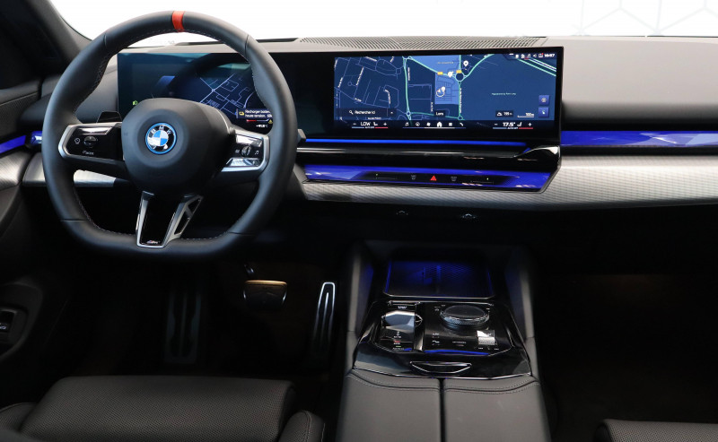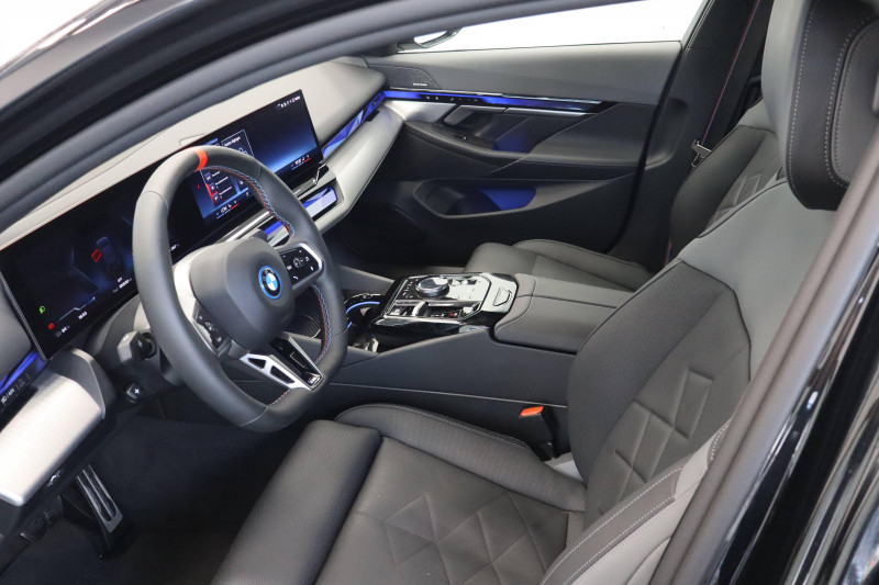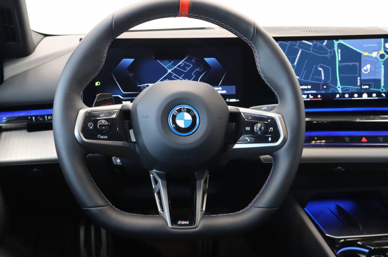3 ceintures AR 3 points / 3ème feu stop à LED / 5 sièges / ABS (système de freinage antiblocage) y compris assistant de freinage d'urgence en virage / Accoudoir central AV/AR (avec 2 porte-gobelets) / Active Guard -Avertisseur de collision AV avec intervention de freinage pour piétons/cyclistes incl. dans les virages et aux carrefours -Avertisseur de sortie de voie avec retour actif -Informations sur la limite de vitesse (Speed Limit Info) avec indication d'interdiction de dépassement ainsi que l'assistant de limitation de vitesse manuel (Speed Limit Assist) / Airbag central (siège conducteur) / Airbag frontal (volant/conducteur et passager AV(désactivation possible)) / Alarme antivol / Appel d'Urgence Intelligent (durée de vie de la voiture) Appel automatique vers le centre d'assistance BMW en cas d'accident. Touche SOS pour Appel d'Urgence manuel. Les données importantes sont automatiquement transmises aux secours : identification et localisation de la voiture, nombre de passagers à bord, statuts des airbags. Ce service utilise la carte SIM montée d'usine et ne requiert pas l'utilisation du smartphone. / Assistant d'attention avec recommandation de pause / Avertisseur sonore pour piétons / BMW IconicSounds Electric . / BMW ID / BMW iDrive / BMW Interaction Bar, rétroéclairée / BMW Live Cockpit Navigation Plus avec BMW Curved Display / Bouton de démarrage du moteur Start/Stop sans manipulation de la clé / Buse de lave-glace pour caméra de recul / Buses de lave-glace chauffantes / Câble de recharge Professionnel Mode 3 (T2-T2) 22 kW pour la recharge publique - 5 mètres / Capteur de pluie et allumage automatique des projecteurs / Chargeur rapide AC Pro 22kW / Chauffage de lunette AR / Ciel de pavillon M Anthracite / Dalle de recharge par induction / Désignation du modèle / Disques de freins AV/AR / Drive Assist / Eclairage d'ambiance Eclairage lumineux dynamique pour 4 applications (bienvenue, au revoir, portes ouvertes et appel téléphonique) dans 9 coloris différents du tableau de bord, des panneaux de portes et de la console centrale. Comprend également les liseuses arrière, l'éclairage du rangement de l'accoudoir central avant et poignées d'ouverture de porte (intérieur et extérieur) ainsi qu'un éclairage de bienvenue avec tapis de lumière / Ecrous de roues antivol / Eléments extérieurs M Sport / Eléments intérieurs M Sport / Entourage de calandre en Aluminium satiné / Feux de jour et clignotants AV/AR à LED / Feux de route anti-éblouissement / Feux de sortie de porte / Frein de parking électrique avec fonction "Automatic Hold" / Inserts décoratifs Dark Silver avec Aluminium Rhombicle / Jantes 19" M à rayons doubles style 935 M bicolores Black Grey avec pneus mixtes AV: 8.5 J × 19 / pneus: 245/45 R 19, AR: 10J × 19 / pneus: 275/40 R 19, Midnight Grey / Logo M sur les ailes AV / Mesure individuelle de pression des pneumatiques / Pack Connected Pro (dont Apple CarPlay et Android Auto) Fonctions "Ma BMW à distance" (durée indéfinie) Remote 3D View (Vue 3D à distance) (3 ans) Information Trafic en Temps Réel (RTTI) (3 ans) Connected Navigation (3 ans) Connected Parking Intégration Smartphone (durée illimitée) Apple CarPlay Google Android Auto Amazon Alexa Car (3 ans) Services eDrive Divertissement à bord (offert pendant 1) / Pack Extérieur BMW Iconic Glow Contour de la calandre illuminé (lorsque le véhicule est à l'arrêt et en roulant), désactivable. Le Welcome Light Carpet projette une lumière d'accueil sur la zone d'entrée et de sortie gauche et droite (via une source de lumière intégrée dans les seuils latéraux gauche et droit) / Pare-soleils pour conducteur et passager AV avec miroir de courtoisie éclairé avec couvercle coulissant / Park Assist avec caméra de recul Système d'aide à la conduite basé sur caméra et radars à ultrason comprenant les fonctionnalités d'aides à la conduite suivantes: caméra de recul avec vue panoramique AR, Active Park Distance Control, Park Assistant (Aide au stationnement automatique), Auto Reverse (Assistant de recul), Aide au stationnement latéral / PC iBrake (PostCrash Collision Warning avec fonction de freinage) / Personal eSIM Personal eSIM est la version électronique, intégrée au véhicule, de la carte SIM traditionnelle. Vous l'utilisez via un abonnement souscrit auprès d'un opérateur téléphonique et transformez ainsi votre BMW en périphérique mobile supplémentaire : - Connectivité en 5G - Meilleure qualité de connexion grâce aux antennes de la voiture - Connexion Hotspot Wi-Fi avec la possibilité de connecter jusqu'à 10 appareils (ex : tablette numérique, smartphone, ordinateur, ...) / Poignées de portes affleurantes / Portes AR avec sécurité enfants / Prises 12V : 1 x accoudoir AV, 1 x vide-poches AV, 2 x console centrale AR avec un adaptateur USB / Prises USB-C : 2 x 15 W (recharge + transmission de données) dans l'accoudoir AV 2 x 45 W (recharge seulement) dans l'accoudoir AR / Projecteurs Advanced Full LED Phares adaptatifs, Feux de virage automatique, Feux de route sans éblouissement (BMW Selective Beam), de façon à ne pas éblouir les conducteurs des véhicules roulant devant la BMW et de ceux arrivant en sens inverse. Intensité proche de lumière du jour pour un éclairage optimal de la chaussée et une meilleure visibilité dans l'obscurité, Éclairage optimal et homogène de la route, Inserts en bleu dans les projecteurs / Recyclage de l'air et microfiltre à charbon actif / Rétroviseurs extérieurs couleur carrosserie à réglage électrique, asphériques et dégivrants avec rappels de clignotants à LED intégrés / Rétroviseurs extérieurs rabattables électriquement rétroviseurs intérieur et extérieur (côté conducteur) électrochromes, comprend également la fonction dégivrage / Sélecteur de mode de conduite - (3 modes) ECO PRO, Comfort, Sport / Sélecteur d'expériences de conduite My Modes : Personal, Sport (incl. Sport +), 