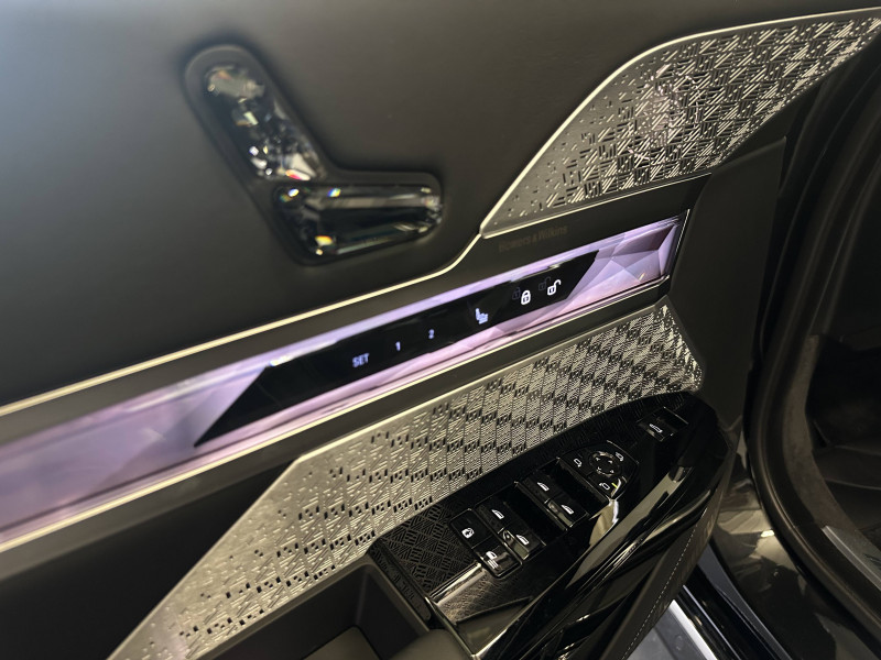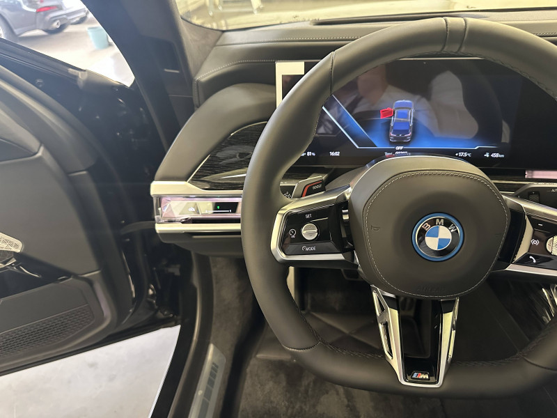 3ème feu stop à LED / 5 sièges / ABS (système de freinage antiblocage) y compris assistant de freinage d'urgence en virage / Accès confort Ouverture et fermeture (des 4 portes et du hayon) et démarrage main libre, Mise en scène de bienvenue lors de l'approche du véhicule, Eclairage d'accueil lorsque le conducteur se situe à 2,5 m du véhicule, Déverrouillage automatique à partir de 0,5 m du véhicule, Verrouillage automatique lorsque le conducteur s'éloigne du véhicule, à partir de 3 m, Accès confort pour les deux clés de véhicule physiques. Inclus la BMW Digital Key Plus, Inclus la ''Key Card (carte clé)' / Active Guard Professionnal avec avertisseur de sortie de voie, de collision frontale avec intervention de freinage et affichage des limitations de vitesse (Speed Limit Info) et interdiction de dépassement / Airbag central (siège conducteur) / Airbags de tête (rideaux) pour le 1er et le 2e rang de sièges / Alarme antivol Pour la surveillance des portes, du capot moteur et du hayon, y compris capteur de mouvement intérieur, capteur d'inclinaison et sirène avec une alimentation de secours / Appel d'Urgence Intelligent (durée de vie de la voiture) Appel automatique vers le centre d'assistance BMW en cas d'accident. Touche SOS pour Appel d'Urgence manuel. Les données importantes sont automatiquement transmises aux secours : identification et localisation de la voiture, nombre de passagers à bord, statuts des airbags. Ce service utilise la carte SIM montée d'usine et ne requiert pas l'utilisation du smartphone. / Appui lombaire ajustable pour le conducteur / Assistant d'attention avec analyse du comportement de conduite du conducteur : détection somnolence, recommandation de pause / Avertisseur 2 tons / Avertisseur sonore pour piétons / BMW eDrive (Système de récupération de l'énergie au freinage Brake Energy Regeneration jusqu'au "One Pedal Feeling", Capacité de la batterie haute tension Lithium-ion : 105,7 kWh brute (101,7 kWh nette) / 281 Ah / 376 V, Chargeur embarqué DC sur prise CCS : 195 kW (puissance de recharge maximale), Gestion thermique de la batterie pour une recharge rapide en courant continu, Préconditionnement de la température de la batterie pour charge rapide CC optimisée) / BMW IconicSounds Electric . / BMW ID / BMW iDrive / BMW Interaction Bar en verre à effet cristal, avec rétro-éclairage dynamique en 15 couleurs et effets lumineux / BMW Live Cockpit Navigation Pro (Affichage Tête Haute HUD en couleur et Réalité Augmentée) BMW Curved Display, Affichage tête haute HUD en couleur, Guidage intéractif avec "Réalité Augmentée", Mémorisation des réglages dans les profils conducteur, Profil conducteurOpérations tactiles sur l'écran central, Système d'exploitation BMW Operating System 8, Controller iDrive Touch, BMW Intelligent Personal Assistant, Éléments de commande pour l'affichage des écrans, l'audio et la téléphonie sur le volant multifonction, Nouveau dispositif My Modes, BMW Maps, Interface Bluetooth / BMW Natural Interaction Des gestes simples tels que balayer ou pointer sont reconnus dans la zone de détection au-dessus de la console centrale avant, permettent par exemple d'accepter ou rejeter un appel téléphonique. Le volume peut également être réglé en tournant l'index. / BMW Touch Command : panneaux de commande tactiles intégrés dans les portes AR / Boîte à gants à ouverture électrique / Bouton de démarrage du moteur Start/Stop sans manipulation de la clé / Buses de lave-glace chauffantes intégrées aux balais d'essuie-glace / Câble de recharge Professionnel Mode 3 (T2-T2) pour la recharge publique - 5 mètres Câble de recharge Professionnel de Mode 3 triphasé avec prises Type 2 - Type 2 destinéà la recharge sur bornes publiques ou privées. Peut être utilisé sur une borne de recharge raccordée en courant monophasé ou triphasé avec des puissances de charge maximales : 7,4 kW / 32 A (en monophasé) et de 22 kW / 32 A (en triphasé). Rangement dans le coffret à câbles sous le cache du compartiment à bagages. Couleur Gris basalte. / Calandre illuminée ''BMW Iconic Glow'' Mise en valeur de la calandre BMW avec un éclairage de son contour, Actif lorsque la voiture est à l'arrêt et en roulant, Désactivation possible / Chargeur rapide AC Pro 22kW / Clés radiocommandées à mémorisation automatique des réglages "Personal Profile" (x 2) / Climatisation automatique 4 zones Régulation de la température séparée, Aérateurs invisibles mais très efficaces, Réglage du débit d'air et de la répartition d'air séparément, Mode de fonctionnement intelligent (Aura), Programme automatique, Refroidissement maximum (climatisation MAX AC) pour conducteur et passager AV, Capteur de condensation et capteur solaire, Microfiltre et filtre à charbon actif, Pré-ventilation avec minuterie ou à démarrage immédiat, Filtre à nanoparticules pour air frais et air recyclé dans l'habitacle / Commande électrique du volet de coffre / Compartiment à bagages avec crochets pour sacs, oeillets d'arrimage et éclairage / Connexion USB type C : x 2 dans l'accoudoir central AV (transmission de données + recharge 15W) et x 2 à l'AR (recharge 45W) / Coussin de confort dans le siège multifonction/fauteuil capitaine / Dalle de recharge par induction Chargement sans fil par induction des appareils positionnés dans le plateau, utilisant la norme de charge «Qi», Interface NFC avec le véhicule, Refroidissement actif de l'appareil intégré, 2ème plateau de charge sans fil à l'arrière avec console arrière Executive Lounge. / Désignation du modèle "i7" sur le hayon, à gauche et "eDrive60" à droite, teinte Silver / Détecteur de pluie et allumage automatique des projecteurs / Direction à assistance électrique Servotronic / Direction ActiveDrive à 4 roues directrices / Drive Assist Système d'aide à la conduite basé sur caméra et radar composé du régulateur de vitesse actif Active Cruise 