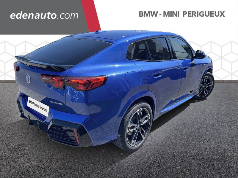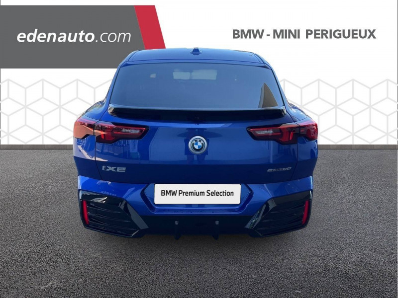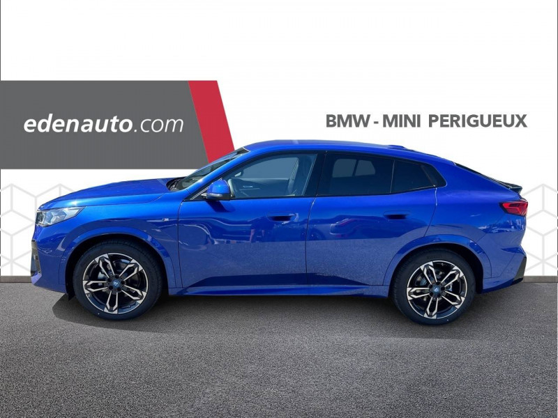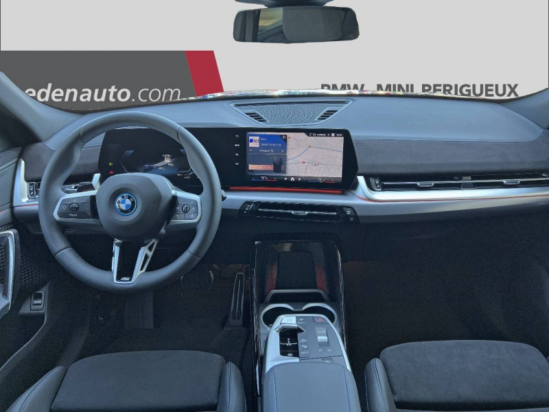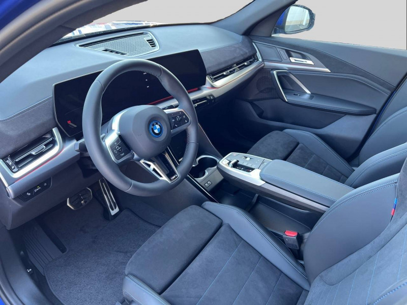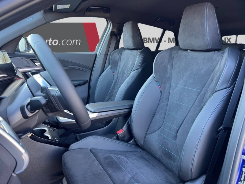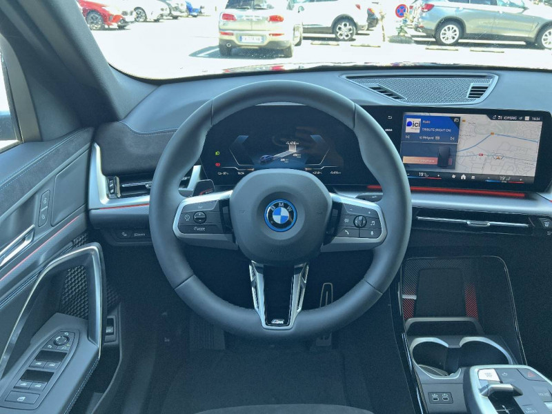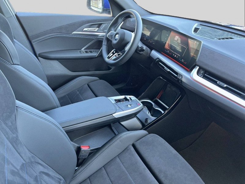 2 porte-gobelets sur la console centrale / 3ème feu stop LED intégré au hayon AR / 5 places / Accoudoir central AV avec panneau de commande intégré / Active Guard Avertissement de franchissement de ligne. Avertisseur de collision frontale. Avertisseur de présence d'un véhicule lors d'un changement de direction vers la gauche. Avertisseur d'intersection. Avertisseur présence piéton/cycliste lors d'un virage en intersection. Assistance de limitation de vitesse. Assistance d'évitement en cas de risque de collision frontale / Airbag entre les deux sièges AV en cas de collision latérale / Airbag passager AV désactivable via la clé / Airbags de tête à l'AV et aux places latérales AR / Alarme antivol Surveillance des portes, coffre et capot moteur, protection de l'habitacle, détecteur de soulèvement et sirène. / Appel d'Urgence Intelligent (durée de vie de la voiture) Appel automatique vers le centre d'assistance BMW en cas d'accident. Touche SOS pour Appel d'Urgence manuel. Les données importantes sont automatiquement transmises aux secours : identification et localisation de la voiture, nombre de passagers à bord, statuts des airbags. Ce service utilise la carte SIM montée d'usine et ne requiert pas l'utilisation du smartphone. / Assistant dynamique de motricité (DTC) / BMW Digital (BMW Maps, RTTI sur itinéraire, Apple CarPlay, Android Auto, BMW Intelligent Personal Assistant) / BMW EfficientDynamics Système de récupération de l'énergie au freinage, Fonction d'arrêt et de redémarrage automatique du moteur, Direction à assistance électrique Servotronic (assistance variable selon la vitesse) / BMW Live Cockpit Navigation Plus avec Écran BMW Curved Display / Boîte automate à fonction continue / Buse de lave-glace pour caméra de recul / Câble de recharge Professionnel Mode 3 (T2-T2) pour la recharge publique - 5 mètres / Capteur d'impact (Activation de l'airbag, des feux de détresse, de l'éclairage intérieur, Déverrouillage des portes, Activation de la borne batterie de sécurité) / Carte BMW Charging / Carte SIM 4G LTE pour les Services BMW ConnectedDrive / Ceintures de sécurité 3 points pour toutes les places / Ciel de pavillon M Anthracite / Clés radiocommandées à mémorisation automatique des réglages "Personal Profile" (x 2) / Clignotants LED intégrés aux feux de jour / Commande électrique du hayon / Compartiment à bagages : 2 crochets de sac, filet sur panneau gauche, prise 12V rangement additionel (volume spécifique au modèle) sous plancher amovible / Console centrale avec insert noir brillant / Contrôle de freinage en courbe CBC / Contrôle de stabilité dynamique (DSC) avec dotation élargie / Contrôle dynamique du freinage (DBC) / Désignation du modèle "X2" sur le hayon à gauche et version à droite / Détecteur de pluie et allumage automatique des projecteurs / Eclairage de bienvenue autour du véhicule / Eclairage de plaque d'immatriculation à LED / Ecran BMW Curved Display / Eléments extérieurs M Sport / Eléments intérieurs M Sport / Feux AR à LED intégrant les clignotants / Feux de sortie de porte AV (porte ouverte) / Fixations ISOFIX / i-Size pour les deux sièges AR extérieurs / Fonction cargo : Réglage de l'inclinaison de la banquette AR à 12 degrés (volume de chargement supplémentaire d' environ 85-100 litres) / Fonctionnalité "Follow Me Home" (éclairage d'accompagnement) : les feux de croisement restent allumés quelques instants une fois le contact coupé / Freinage de séchage / Frein de parking électromécanique avec fonction "Automatic Hold" / Grilles de calandre façon Mesh Effect avec contour cerclées de chrome / Inserts décoratifs Aluminium M Hexacube clair / Jantes en alliage léger 19" style 871 M 8 J x 19 / pneus 245/45 R 19 Gris foncé. Bicolore Montage chaînes à neige impossible. / Kit de mobilité Plus - Bouteille avec liquide anti-crevaison - Compresseur avec alimentation autonome via batterie rechargeable - Système se fixant au centre de la jante avec maintient de pression automatique du pneu crevé durant la conduite - Simple d'utilisation et réduction du temps passé sur le lieu de la panne / Kit éclairage : Lampes de courtoisie, Eclairage intérieur de l'accoudoir central AV, Eclairage habitacle AV et AR, éclairage plancher AV et AR, éclairage du miroir de courtoisie , lampes de lecture centrales, éclairage du coffre à bagages sur un côté / Kit rangement - bac de rangement dans les portes AV et AR avec porte-bouteille - compartiment de rangement central - compartiment de rangement avec couvercle rabattable sous l'accoudoir central AV - crochets de vêtements AR / Lève-vitres AV/AR électriques avec commande par impulsion et sécurité enfants / Logo BMW avec cerclage bleu sur le capot et le hayon / Mesure individuelle de pression des pneumatiques / My Modes: 5 modes de conduite (Personnel, Efficient, Sport, Relax, Expressive) / Norme General Safety Regulation 2 (GSR2) / Notice d'utilisation de la voiture intégrée et carnet d'entretien électronique avec BMW Service History / Ordinateur de bord avec Check-Control et indicateur de température extérieure / Parking Assistant Système de manoeuvres de stationnemment en créneau et en bataille automatique, Caméra de recul avec lignes interactives de trajectoires. Fonction zoom pour attelage, Radars de recul AV & AR (PDC). Fonction PDC actif et aide au parking latéral, Assistant de marche AR "Auto-Reverse" sur 50m / Performance control : contrôle du moteur et interventions freinage pour améliorer l'agilité et la neutralité en virage / Personal eSIM Personal eSIM est la version électronique, intégrée au véhicule, de la carte SIM traditionnelle. Vous l'utilisez via un abonnement souscrit auprès d'un opérateur téléphonique et transformez ainsi votre BMW en périphérique mobile supplémentaire : - Connectivité en 5G - Meilleure qualité de connexion grâce aux antennes de la voiture - Connexion Hotspot Wi-Fi ave