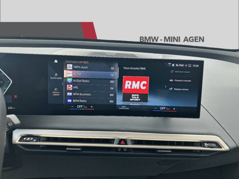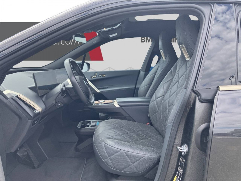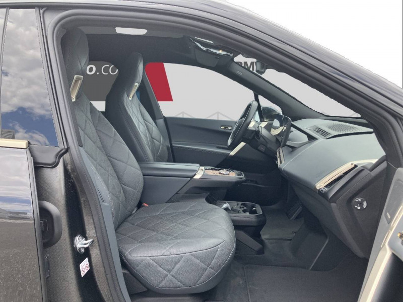 3ème feu stop à LED / 5 sièges / Active Guard Plus / Alarme antivol / Anneau bleu autour des logos BMW / Anneaux d'arrimage dans le coffre / Appel d'Urgence Intelligent (durée de vie de la voiture) / Appuis-tête intégrés au siège à l'AV, non ajustable (siège intégral) / Avertisseur 2 tons / Avertisseur sonore pour piétons / BMW IconicSounds Electric / BMW Live Cockpit Navigation Plus / Boîte à gants à déverrouillage électrique / Bouton de démarrage Start/Stop sans manipuler la clé / Boutons Center-Lock: touches dans le sportes à l'avant, verrouillage complet du véhicule / Buses de lave-glace chauffantes intégrées aux balais d'essuie-glace / Câble de recharge BMW Flexible Charger Mode 2 pour prise domestique - 5 mètres / Câble de recharge T2-T2 (3 phases-5m) / Calandre verticale au design spécifique iX avec apparence fermée, teinte Silver / Capacité de la batterie haute tension Lithium-ion : 76,6 kWh brute (71 kWh nette) / 232 Ah / 330,3 / Chargeur embarqué AC Fast Charging Plus (11 kW) pour prise T2 / Chargeur embarqué DC sur prise CCS : 150 kW (puissance de recharge maximale) / Clés à mémorisation automatique des réglages "Personal Profile" / Connection USB type C (x 2 dans l'accoudoir central AV et x 2 AR des sièges AV) / Contrôle Dynamique de la Traction (DTC) et Contrôle Dynamique de Stabilité (DSC) / DC charging : Chargeur embarqué DC sur prise CCS : 150 kW (puissance de recharge maximale) / Désignation du modèle "iX" sur le hayon, à gauche, et "xDrive40", à droite, teinte Silver / Design Intérieur Atelier Sièges en Similicuir Sensatec (motif de couture élaboré / partiellement perforé), Tableau de bord en Similicuir Sensatec, Console centrale et accoudoir central en Similicuir Sensatec, Composants et éléments de commandes en Gold Bronze. / Détecteur de pluie et allumage automatique des projecteurs / Détection de somnolence / Direction à assistance variable en fonction de la vitesse Servotronic / Drive Assist / Eclairage d'ambiance / Eclairage de bienvenue / Eclairage de jour / Ecrous de roues antivol / Eléments extérieurs en bleu BMW i sur le pare-choc avant et le diffuseur AR ainsi que sur les jupes latérales inférieures / Fermeture du véhicule avec verrouillage centralisée / Feux AR LED avec éclairage secondaire lorsque le hayon est ouvert / Feux de route anti-éblouissement / Feux de stop dynamiques clignotants / Filet de séparation du coffre / Freins à disques ventilés AV/AR / Interface Bluetooth / WLAN avec kit mains libres / Jantes 20" aérodynamiques style 1002 Lightning Grey 8.5J × 20 / pneumatiques 235/60 R 20 / 20" / Lame aérodynamique M / Lève-vitres AV électriques avec commande par impulsion et protection anti-coincement / Mesure individuelle de pression des pneumatiques / Notice d'utilisation de la voiture intégrée et carnet d'entretien électronique avec BMW Service History / Pack Connected Pro Fonctions "Ma BMW à distance" (durée indéfinie) :commande à distance du véhicule (verrouillage, déverrouillage, appel de phare, ventilation de l'habitacle),envoi d'adresses de destination au véhicule via l'application My BMW,affichage sur la carte du smartphone de l'emplacement du véhicule en stationnement,affichage des statuts du véhicule (échéances de maintenance, kilométrage, ...)Remote 3D View (Vue 3D à distance) (durée indéfinie) / Pare-chocs déformables / Park Assist / Poignées de porte affleurantes activées par simple pression, teinte Silver / Poignées de porte avec dispositif électrique d'ouverture / Portes dotées de fenêtres sans encadrement / Portes gobelet situés AV (x 2) et dans l'accoudoir central AR (x 2) / Protection Active des occupant / Protection active des piétons / Protection Passive des piétons / Recharge sans fil par induction / Réglage électrique continu en hauteur et en longueur de la colonne de direction / Régulateur de vitesse avec fonction freinage / Rétroviseur intérieur sans cadre / Rétroviseurs extérieurs rabattables électriquement, rétroviseurs intérieur et extérieur (côté conducteur) électrochromes / Services Après-vente connectés BMW TeleServices / Sièges AV à réglages électriques avec soutien des lombaires / Sièges AV chauffants Chauffage de l'assise et du dossier, parties centrales et latérales. Trois niveaux de réglages. / Système de chauffage et de refroidissement grâce à une pompe à chaleur / Système de récupération de l'énergie au freinage jusqu'au One Pedal Feeling Position B: niveau de récupération fixe maximal. Récupération jusqu'à l'arrêt. Pas de vitesse rampante. Position D: 4 niveaux de récupération sélectionnables (adaptatif, élevé, moyen, bas). Vitesse rampante proche de l'arrêt. Compatible Last function. / Système Hi-Fi avec 12 haut-parleurs, 205 W / Technologie 4 roues motrices intelligente xDrive, grâce aux 2 moteurs électriques / Teinte de carrosserie unie / Triangle de présignalisation avec kit de premiers secours / Tuner avec réception boîtier Diversity et RDS (radio AM et radio FM) / Tuner DAB / Volant à 2 branches, forme hexagonale, avec touches multifonctions / Welcome Pack BMW avec carte BMW Charging