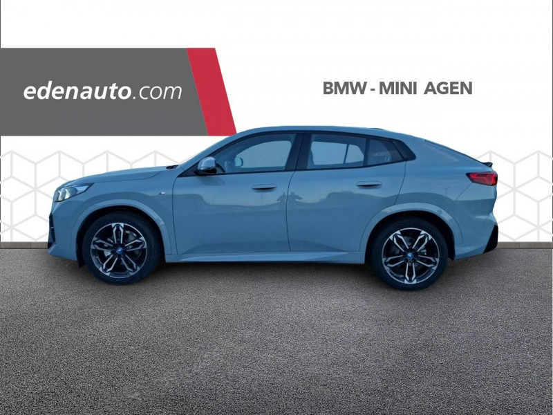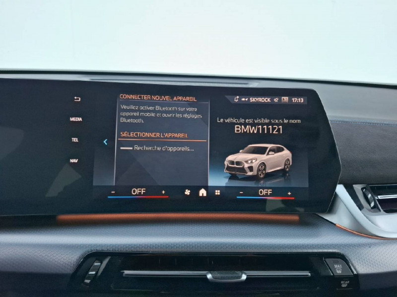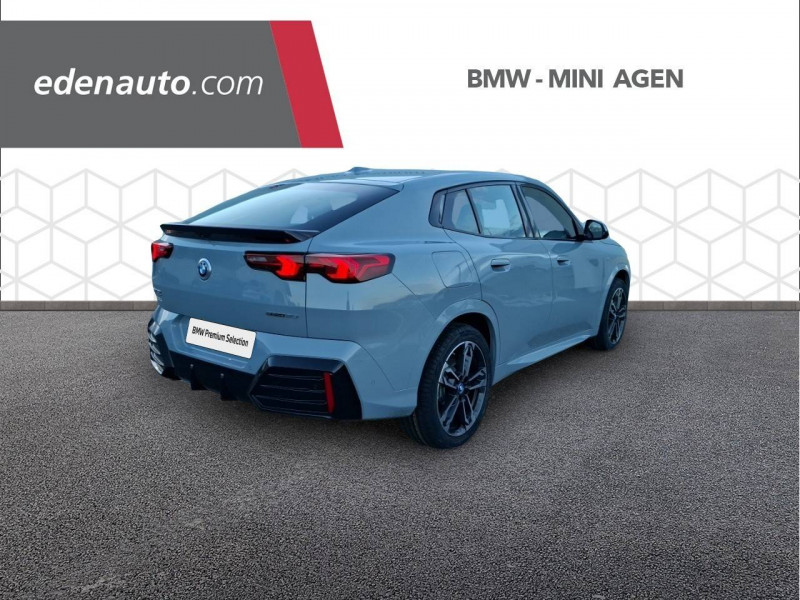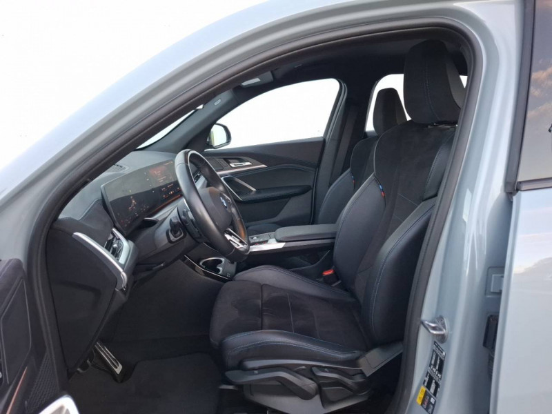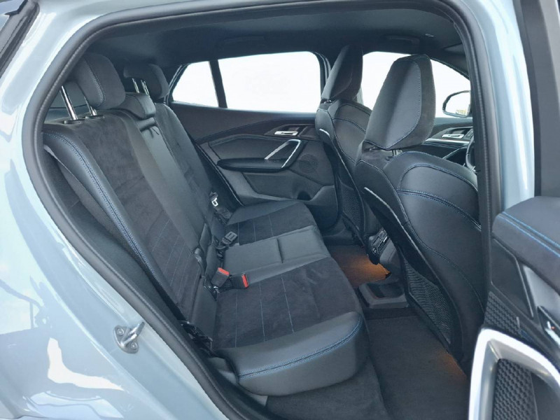 2 porte-gobelets sur la console centrale / 3ème feu stop LED intégré au hayon AR / 5 places / Accoudoir central AV avec panneau de commande intégré / Active Guard Avertissement de franchissement de ligne. Avertisseur de collision frontale. Avertisseur de présence d'un véhicule lors d'un changement de direction vers la gauche. Avertisseur d'intersection. Avertisseur présence piéton/cycliste lors d'un virage en intersection. Assistance de limitation de vitesse. Assistance d'évitement en cas de risque de collision frontale / Airbag entre les deux sièges AV en cas de collision latérale / Airbag passager AV désactivable via la clé / Airbags de tête à l'AV et aux places latérales AR / Alarme antivol Surveillance des portes, coffre et capot moteur, protection de l'habitacle, détecteur de soulèvement et sirène. / Appel d'Urgence Intelligent (durée de vie de la voiture) Appel automatique vers le centre d'assistance BMW en cas d'accident. Touche SOS pour Appel d'Urgence manuel. Les données importantes sont automatiquement transmises aux secours : identification et localisation de la voiture, nombre de passagers à bord, statuts des airbags. Ce service utilise la carte SIM montée d'usine et ne requiert pas l'utilisation du smartphone. / Assistant dynamique de motricité (DTC) / BMW Digital (BMW Maps, RTTI sur itinéraire, Apple CarPlay, Android Auto, BMW Intelligent Personal Assistant) / BMW EfficientDynamics Système de récupération de l'énergie au freinage, Fonction d'arrêt et de redémarrage automatique du moteur, Direction à assistance électrique Servotronic (assistance variable selon la vitesse) / BMW Live Cockpit Navigation Plus avec Écran BMW Curved Display / Boîte automate à fonction continue / Buse de lave-glace pour caméra de recul / Câble de recharge Professionnel Mode 3 (T2-T2) pour la recharge publique - 5 mètres / Capteur d'impact (Activation de l'airbag, des feux de détresse, de l'éclairage intérieur, Déverrouillage des portes, Activation de la borne batterie de sécurité) / Carte BMW Charging / Carte SIM 4G LTE pour les Services BMW ConnectedDrive / Ceintures de sécurité 3 points pour toutes les places / Ciel de pavillon M Anthracite / Clés radiocommandées à mémorisation automatique des réglages "Personal Profile" (x 2) / Clignotants LED intégrés aux feux de jour / Commande électrique du hayon / Compartiment à bagages : 2 crochets de sac, filet sur panneau gauche, prise 12V rangement additionel (volume spécifique au modèle) sous plancher amovible / Console centrale avec insert noir brillant / Contrôle de freinage en courbe CBC / Contrôle de stabilité dynamique (DSC) avec dotation élargie / Contrôle dynamique du freinage (DBC) / Désignation du modèle "X2" sur le hayon à gauche et version à droite / Détecteur de pluie et allumage automatique des projecteurs / Eclairage de bienvenue autour du véhicule / Eclairage de plaque d'immatriculation à LED / Ecran BMW Curved Display / Eléments extérieurs M Sport / Eléments intérieurs M Sport / Feux AR à LED intégrant les clignotants / Feux de sortie de porte AV (porte ouverte) / Fixations ISOFIX / i-Size pour les deux sièges AR extérieurs / Fonction cargo : Réglage de l'inclinaison de la banquette AR à 12 degrés (volume de chargement supplémentaire d' environ 85-100 litres) / Fonctionnalité "Follow Me Home" (éclairage d'accompagnement) : les feux de croisement restent allumés quelques instants une fois le contact coupé / Freinage de séchage / Frein de parking électromécanique avec fonction "Automatic Hold" / Grilles de calandre façon Mesh Effect avec contour cerclées de chrome / Inserts décoratifs Aluminium M Hexacube clair / Jantes en alliage léger 19" style 871 M 8 J x 19 / pneus 245/45 R 19 Gris foncé. Bicolore Montage chaînes à neige impossible. / Kit de mobilité Plus - Bouteille avec liquide anti-crevaison - Compresseur avec alimentation autonome via batterie rechargeable - Système se fixant au centre de la jante avec maintient de pression automatique du pneu crevé durant la conduite - Simple d'utilisation et réduction du temps passé sur le lieu de la panne / Kit éclairage : Lampes de courtoisie, Eclairage intérieur de l'accoudoir central AV, Eclairage habitacle AV et AR, éclairage plancher AV et AR, éclairage du miroir de courtoisie , lampes de lecture centrales, éclairage du coffre à bagages sur un côté / Kit rangement - bac de rangement dans les portes AV et AR avec porte-bouteille - compartiment de rangement central - compartiment de rangement avec couvercle rabattable sous l'accoudoir central AV - crochets de vêtements AR / Lève-vitres AV/AR électriques avec commande par impulsion et sécurité enfants / Logo BMW avec cerclage bleu sur le capot et le hayon / Mesure individuelle de pression des pneumatiques / My Modes: 5 modes de conduite (Personnel, Efficient, Sport, Relax, Expressive) / Norme General Safety Regulation 2 (GSR2) / Notice d'utilisation de la voiture intégrée et carnet d'entretien électronique avec BMW Service History / Ordinateur de bord avec Check-Control et indicateur de température extérieure / Parking Assistant Système de manoeuvres de stationnemment en créneau et en bataille automatique, Caméra de recul avec lignes interactives de trajectoires. Fonction zoom pour attelage, Radars de recul AV & AR (PDC). Fonction PDC actif et aide au parking latéral, Assistant de marche AR "Auto-Reverse" sur 50m / Performance control : contrôle du moteur et interventions freinage pour améliorer l'agilité et la neutralité en virage / Personal eSIM Personal eSIM est la version électronique, intégrée au véhicule, de la carte SIM traditionnelle. Vous l'utilisez via un abonnement souscrit auprès d'un opérateur téléphonique et transformez ainsi votre BMW en périphérique mobile supplémentaire : - Connectivité en 5G - Meilleure qualité de connexion grâce aux antennes de la voiture - Connexion Hotspot Wi-Fi ave