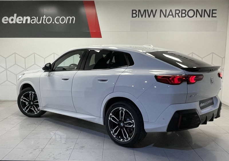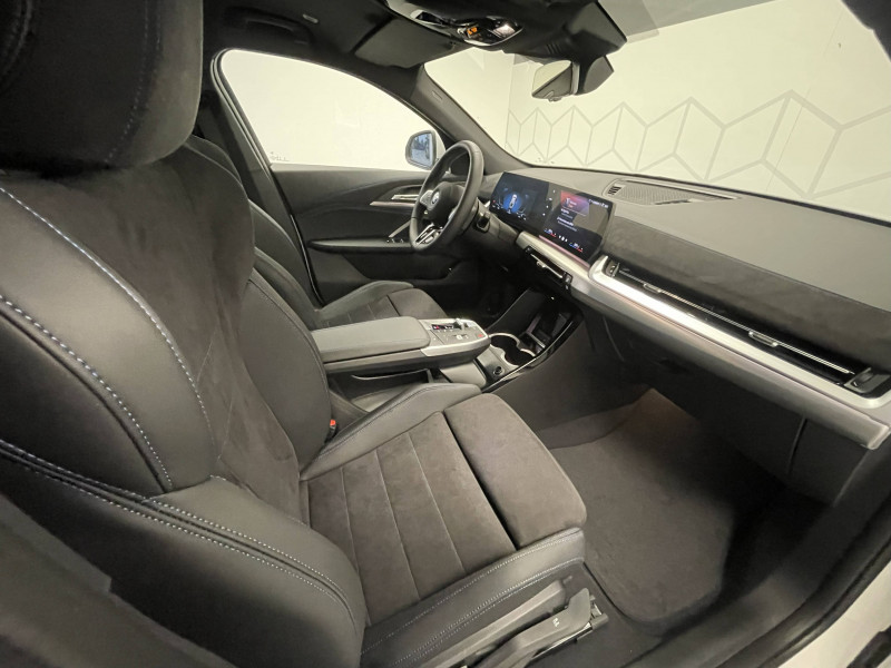 2 porte-gobelets sur la console centrale / 3ème feu stop LED intégré au hayon AR / 5 places / Accoudoir central AV avec panneau de commande intégré / Active Guard Avertissement de franchissement de ligne. Avertisseur de collision frontale. Avertisseur de présence d'un véhicule lors d'un changement de direction vers la gauche. Avertisseur d'intersection. Avertisseur présence piéton/cycliste lors d'un virage en intersection. Assistance de limitation de vitesse. Assistance d'évitement en cas de risque de collision frontale / Aides au stationnement Parking Assistant - Radars de stationnement AV et AR - Caméra de recul - Manoeuvres de stationnemment automatique en créneau et en bataille - Freinage automatique en marche AR - Assistant de marche AR/Auto-reverse / Airbag entre les deux sièges AV en cas de collision latérale / Airbag passager AV désactivable via la clé / Airbags de tête à l'AV et aux places latérales AR / Alarme antivol Surveillance des portes, coffre et capot moteur, protection de l'habitacle, détecteur de soulèvement et sirène. / Appel d'Urgence Intelligent (durée de vie de la voiture) Appel automatique vers le centre d'assistance BMW en cas d'accident. Touche SOS pour Appel d'Urgence manuel. Les données importantes sont automatiquement transmises aux secours : identification et localisation de la voiture, nombre de passagers à bord, statuts des airbags. Ce service utilise la carte SIM montée d'usine et ne requiert pas l'utilisation du smartphone. / Assistant dynamique de motricité (DTC) / BMW Digital (BMW Maps, RTTI sur itinéraire, Apple CarPlay, Android Auto, BMW Intelligent Personal Assistant) / BMW EfficientDynamics Système de récupération de l'énergie au freinage, Fonction d'arrêt et de redémarrage automatique du moteur, Direction à assistance électrique Servotronic (assistance variable selon la vitesse) / BMW Live Cockpit Navigation Plus avec Écran BMW Curved Display / Boîte automate à fonction continue / Buse de lave-glace pour caméra de recul / Câble de recharge Professionnel Mode 3 (T2-T2) pour la recharge publique - 5 mètres / Capteur d'impact (Activation de l'airbag, des feux de détresse, de l'éclairage intérieur, Déverrouillage des portes, Activation de la borne batterie de sécurité) / Carte BMW Charging / Carte SIM 4G LTE pour les Services BMW ConnectedDrive / Ceintures de sécurité 3 points pour toutes les places / Ciel de pavillon M Anthracite / Clés radiocommandées à mémorisation automatique des réglages "Personal Profile" (x 2) / Clignotants LED intégrés aux feux de jour / Commande électrique du hayon / Compartiment à bagages : 2 crochets de sac, filet sur panneau gauche, prise 12V rangement additionel (volume spécifique au modèle) sous plancher amovible / Console centrale avec insert noir brillant / Contrôle de freinage en courbe CBC / Contrôle de stabilité dynamique (DSC) avec dotation élargie / Contrôle dynamique du freinage (DBC) / Désignation du modèle "X2" sur le hayon à gauche et version à droite / Détecteur de pluie et allumage automatique des projecteurs / Eclairage de bienvenue autour du véhicule / Eclairage de plaque d'immatriculation à LED / Ecran BMW Curved Display / Eléments extérieurs M Sport / Eléments intérieurs M Sport / Feux AR à LED intégrant les clignotants / Feux de sortie de porte AV (porte ouverte) / Fixations ISOFIX / i-Size pour les deux sièges AR extérieurs / Fonction cargo : Réglage de l'inclinaison de la banquette AR à 12 degrés (volume de chargement supplémentaire d' environ 85-100 litres) / Fonctionnalité "Follow Me Home" (éclairage d'accompagnement) : les feux de croisement restent allumés quelques instants une fois le contact coupé / Freinage de séchage / Frein de parking électromécanique avec fonction "Automatic Hold" / Grilles de calandre façon Mesh Effect avec contour cerclées de chrome / Inserts décoratifs Aluminium M Hexacube clair / Jantes en alliage léger 19" style 871 M 8 J x 19 / pneus 245/45 R 19 Gris foncé. Bicolore Montage chaînes à neige impossible. / Kit de mobilité Plus - Bouteille avec liquide anti-crevaison - Compresseur avec alimentation autonome via batterie rechargeable - Système se fixant au centre de la jante avec maintient de pression automatique du pneu crevé durant la conduite - Simple d'utilisation et réduction du temps passé sur le lieu de la panne / Kit éclairage : Lampes de courtoisie, Eclairage intérieur de l'accoudoir central AV, Eclairage habitacle AV et AR, éclairage plancher AV et AR, éclairage du miroir de courtoisie , lampes de lecture centrales, éclairage du coffre à bagages sur un côté / Kit rangement - bac de rangement dans les portes AV et AR avec porte-bouteille - compartiment de rangement central - compartiment de rangement avec couvercle rabattable sous l'accoudoir central AV - crochets de vêtements AR / Lève-vitres AV/AR électriques avec commande par impulsion et sécurité enfants / Logo BMW avec cerclage bleu sur le capot et le hayon / Mesure individuelle de pression des pneumatiques / My Modes: 5 modes de conduite (Personnel, Efficient, Sport, Relax, Expressive) / Norme General Safety Regulation 2 (GSR2) / Notice d'utilisation de la voiture intégrée et carnet d'entretien électronique avec BMW Service History / Ordinateur de bord avec Check-Control et indicateur de température extérieure / Performance control : contrôle du moteur et interventions freinage pour améliorer l'agilité et la neutralité en virage / Personal eSIM Personal eSIM est la version électronique, intégrée au véhicule, de la carte SIM traditionnelle. Vous l'utilisez via un abonnement souscrit auprès d'un opérateur téléphonique et transformez ainsi votre BMW en périphérique mobile supplémentaire : - Connectivité en 5G - Meilleure qualité de connexion grâce aux antennes de la voiture - Connexion Hotspot Wi-Fi avec la possibilité de connecter jusqu'à 10 appareils (ex : tablette numé