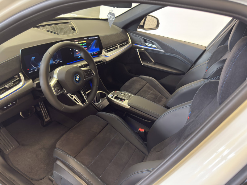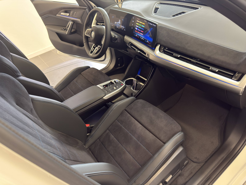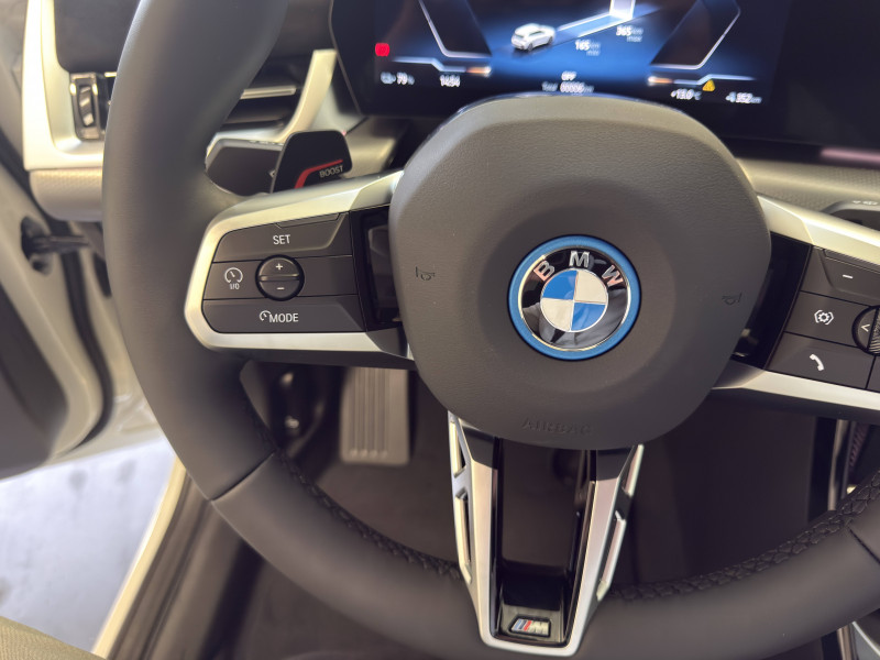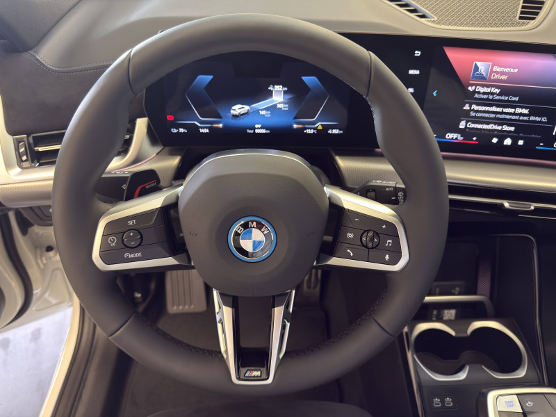 2 porte-gobelets sur la console centrale / 3ème feu stop LED intégré au spoiler AR / 5 places / Accoudoir central AV avec panneau de commande intégré / Active Guard Avertissement de franchissement de ligne avec impulsion sur la direction (>70km/h).Avertisseur de collision frontale avec intervention de freinage (3-210km/h).Avertisseur de présence d'un véhicule lors d'un changement de direction vers la gauche avec action sur les freins (3-35km/h).Avertisseur d'intersection (détection risque collision latérale 3-85km/h).Avertisseur présence piéton/cycliste lors d'un virage en intersection (3-35km/h).Assistance de limitation de vitesse. / Airbag entre les deux sièges AV en cas de collision latérale / Airbag passager AV désactivable via la clé / Airbags de tête à l'AV et aux places latérales AR / Alarme antivol / Appel d'Urgence Intelligent (durée de vie de la voiture) / Assistant dynamique de motricité (DTC) / BMW Digital (BMW Maps, RTTI sur itinéraire, Apple CarPlay, Android Auto, BMW Intelligent Personal Assistant) / BMW EfficientDynamics Système de récupération de l'énergie au freinage, Fonction d'arrêt et de redémarrage automatique du moteur, Direction à assistance électrique Servotronic (assistance variable selon la vitesse) / BMW IconicSounds Electric . / BMW Live Cockpit Navigation Plus avec Ecran Widescreen / BMW Live Cockpit Plus / Boîte de vitesses automatique 1 rapports / Buse de lave-glace pour caméra de recul / Câble de recharge Professionnel Mode 3 (T2-T2) pour la recharge publique - 5 mètres Câble de recharge Professionnel de Mode 3 triphasé avec prises Type 2 - Type 2 destinéà la recharge sur bornes publiques ou privées. Peut être utilisé sur une borne de recharge raccordée en courant monophasé ou triphasé avec des puissances de charge maximales : 7,4 kW / 32 A (en monophasé) et de 22 kW / 32 A (en triphasé). Rangement dans le coffret à câbles sous le cache du compartiment à bagages. Couleur Gris basalte. / Capteur d'impact (Activation de l'airbag, des feux de détresse, de l'éclairage intérieur, Déverrouillage des portes, Activation de la borne batterie de sécurité) / Carte SIM 4G LTE pour les Services ConnectedDrive / Ceintures de sécurité 3 points pour toutes les places / Ciel de pavillon M Anthracite / Clés radiocommandées à mémorisation automatique des réglages "Personal Profile" (x 2) / Clignotants LED intégrés aux feux de jour / Climatisation automatique 2 zones Contrôle de la température et du volume d'air distribué avec 5 niveaux d'intensité, réglables séparément entre le conducteur et le passager. Fonctionnalité SYNC pour que les réglages du conducteur s'appliquent à l'ensemble de l'habitacle. Contrôle commun de la température à l'AR. Capteur d'humidité et d'ensoleillement, filtre à charbon actif et microfiltre. / Commande électrique du hayon de coffre / Compartiment à bagages : 2 crochets de sac, filet sur panneau garuche, prise 12V, rangement additionel au modèle) sous plancher amovible / Compatible Plug&Charge sur certaines bornes publiques / Console centrale avec insert noir brillant / Contour de vitres noir mat / Contrôle de freinage en courbe CBC / Contrôle dynamique du freinage (DBC) / Désignation du modèle à droite du hayon / Détecteur de pluie et allumage automatique des projecteurs / Eclairage de bienvenue autour du véhicule / Eclairage de plaque d'immatriculation à LED / Eléments extérieurs M Sport / Eléments intérieur M / Equipements supplémentaires Pack M Sport / Feux AR à LED intégrant les clignotants / Feux de sortie de porte AV (porte ouverte) / Fixations ISOFIX / i-Size pour les deux sièges AR extérieurs / Fonction cargo : Réglage de l'inclinaison de la banquette AR à 12 degrés (volume de chargement supplémentaire d' environ 85-100 litres) / Fonctionnalité "Follow Me Home" (éclairage d'accompagnement) : les feux de croisement restent allumés quelques instants une fois le contact coupé / Fonction Start&Stop automatique / Freinage de séchage / Frein de parking électromécanique avec fonction "Automatic Hold" / Grilles de calandre cerclées de chrome avec barreaux verticaux noirs / HotSpot Wi-Fi / Inserts décoratifs Aluminium M Hexacube / Jantes en alliage léger 18" style 838 M Gris foncé. Bicolore 7.5 J x 18 pneus 225/55 R 18. Montage chaînes à neige impossible. / Kit de mobilité Plus - Bouteille avec liquide anti-crevaison - Compresseur avec alimentation autonome via batterie rechargeable - Système se fixant au centre de la jante avec maintient de pression automatique du pneu crevé durant la conduite - Simple d'utilisation et réduction du temps passé sur le lieu de la panne / Kit éclairage / Kit rangement / Lève-vitres AV/AR électriques avec commande par impulsion et sécurité enfants / Mesure individuelle de pression des pneumatiques / My Modes: 5 modes de conduite (Personnel, Efficient, Sport, Relax, Expressive) / Norme General Safety Regulation 2 (GSR2) / Notice d'utilisation de la voiture intégrée et carnet d'entretien électronique avec BMW Service History / Ordinateur de bord avec Check-Control et indicateur de température extérieure / Pare-choc AR avec inserts chromés en L / Pare-choc AV avec air curtains en noir mat / Parking Assistant Comprend l'option Caméra de recul. Manoeuvres de stationnemment en créneau et en bataille facilitées par mesure automatique, Assistant de marche AR/Auto-reverse / Performance control : contrôle du moteur et interventions freinage pour améliorer l'agilité et la neutralité en virage / Personal eSIM Personal eSIM est la version électronique, intégrée au véhicule, de la carte SIM traditionnelle. Vous l'utilisez via un abonnement souscrit auprès d'un opérateur téléphonique et transformez ainsi votre BMW en périphérique mobile supplémentaire : - Connectivité en 5G - Meilleure qualité de connexion grâce aux antennes de la voiture - Connexion Hotspot Wi-Fi avec la possibilit