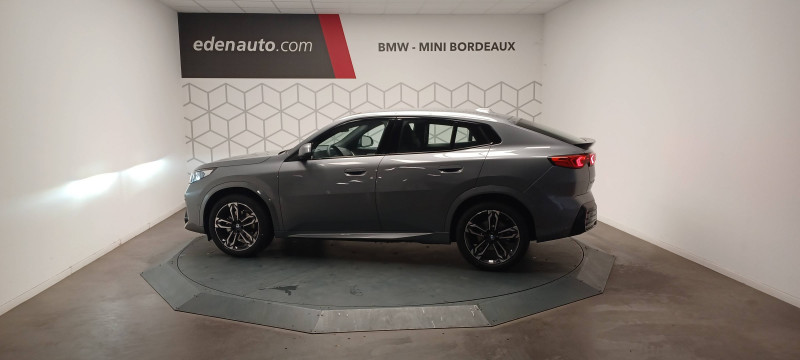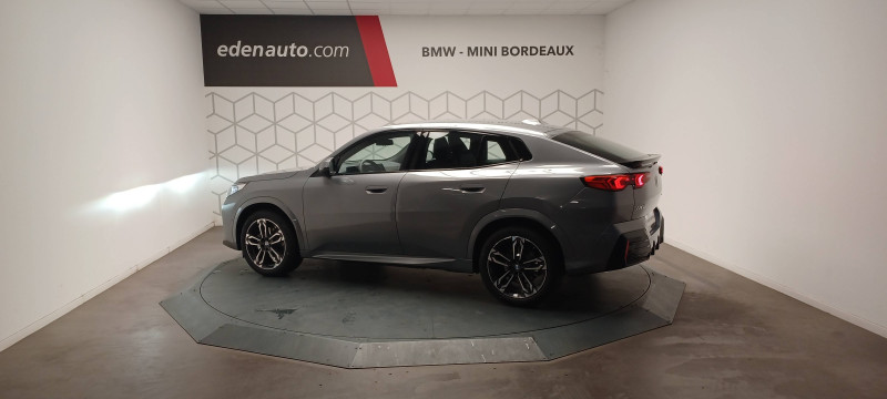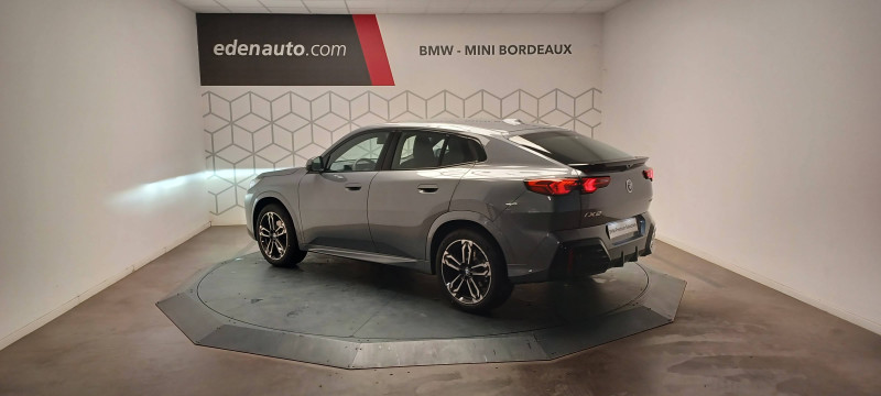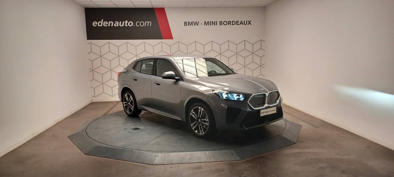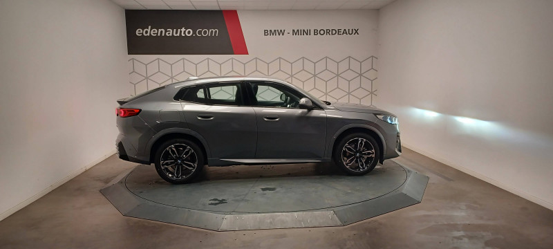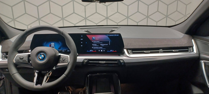 2 porte-gobelets sur la console centrale / 3ème feu stop LED intégré au hayon AR / 5 places / Accoudoir central AV avec panneau de commande intégré / Active Guard Avertissement de franchissement de ligne. Avertisseur de collision frontale. Avertisseur de présence d'un véhicule lors d'un changement de direction vers la gauche. Avertisseur d'intersection. Avertisseur présence piéton/cycliste lors d'un virage en intersection. Assistance de limitation de vitesse. Assistance d'évitement en cas de risque de collision frontale / Aides au stationnement Parking Assistant - Radars de stationnement AV et AR - Caméra de recul - Manoeuvres de stationnemment automatique en créneau et en bataille - Freinage automatique en marche AR - Assistant de marche AR/Auto-reverse / Airbag entre les deux sièges AV en cas de collision latérale / Airbag passager AV désactivable via la clé / Airbags de tête à l'AV et aux places latérales AR / Alarme antivol Surveillance des portes, coffre et capot moteur, protection de l'habitacle, détecteur de soulèvement et sirène. / Appel d'Urgence Intelligent (durée de vie de la voiture) Appel automatique vers le centre d'assistance BMW en cas d'accident. Touche SOS pour Appel d'Urgence manuel. Les données importantes sont automatiquement transmises aux secours : identification et localisation de la voiture, nombre de passagers à bord, statuts des airbags. Ce service utilise la carte SIM montée d'usine et ne requiert pas l'utilisation du smartphone. / Assistant dynamique de motricité (DTC) / BMW Digital (BMW Maps, RTTI sur itinéraire, Apple CarPlay, Android Auto, BMW Intelligent Personal Assistant) / BMW EfficientDynamics Système de récupération de l'énergie au freinage, Fonction d'arrêt et de redémarrage automatique du moteur, Direction à assistance électrique Servotronic (assistance variable selon la vitesse) / BMW Live Cockpit Navigation Plus avec Écran BMW Curved Display / Boîte automate à fonction continue / Buse de lave-glace pour caméra de recul / Câble de recharge Professionnel Mode 3 (T2-T2) pour la recharge publique - 5 mètres / Capteur d'impact (Activation de l'airbag, des feux de détresse, de l'éclairage intérieur, Déverrouillage des portes, Activation de la borne batterie de sécurité) / Carte BMW Charging / Carte SIM 4G LTE pour les Services BMW ConnectedDrive / Ceintures de sécurité 3 points pour toutes les places / Ciel de pavillon M Anthracite / Clés radiocommandées à mémorisation automatique des réglages "Personal Profile" (x 2) / Clignotants LED intégrés aux feux de jour / Commande électrique du hayon / Compartiment à bagages : 2 crochets de sac, filet sur panneau gauche, prise 12V rangement additionel (volume spécifique au modèle) sous plancher amovible / Console centrale avec insert noir brillant / Contrôle de freinage en courbe CBC / Contrôle de stabilité dynamique (DSC) avec dotation élargie / Contrôle dynamique du freinage (DBC) / Désignation du modèle "X2" sur le hayon à gauche et version à droite / Détecteur de pluie et allumage automatique des projecteurs / Eclairage de bienvenue autour du véhicule / Eclairage de plaque d'immatriculation à LED / Ecran BMW Curved Display / Eléments extérieurs M Sport / Eléments intérieurs M Sport / Feux AR à LED intégrant les clignotants / Feux de sortie de porte AV (porte ouverte) / Fixations ISOFIX / i-Size pour les deux sièges AR extérieurs / Fonction cargo : Réglage de l'inclinaison de la banquette AR à 12 degrés (volume de chargement supplémentaire d' environ 85-100 litres) / Fonctionnalité "Follow Me Home" (éclairage d'accompagnement) : les feux de croisement restent allumés quelques instants une fois le contact coupé / Freinage de séchage / Frein de parking électromécanique avec fonction "Automatic Hold" / Grilles de calandre façon Mesh Effect avec contour cerclées de chrome / Inserts décoratifs Aluminium M Hexacube clair / Jantes en alliage léger 19" style 871 M 8 J x 19 / pneus 245/45 R 19 Gris foncé. Bicolore Montage chaînes à neige impossible. / Kit de mobilité Plus - Bouteille avec liquide anti-crevaison - Compresseur avec alimentation autonome via batterie rechargeable - Système se fixant au centre de la jante avec maintient de pression automatique du pneu crevé durant la conduite - Simple d'utilisation et réduction du temps passé sur le lieu de la panne / Kit éclairage : Lampes de courtoisie, Eclairage intérieur de l'accoudoir central AV, Eclairage habitacle AV et AR, éclairage plancher AV et AR, éclairage du miroir de courtoisie , lampes de lecture centrales, éclairage du coffre à bagages sur un côté / Kit rangement - bac de rangement dans les portes AV et AR avec porte-bouteille - compartiment de rangement central - compartiment de rangement avec couvercle rabattable sous l'accoudoir central AV - crochets de vêtements AR / Lève-vitres AV/AR électriques avec commande par impulsion et sécurité enfants / Logo BMW avec cerclage bleu sur le capot et le hayon / Mesure individuelle de pression des pneumatiques / My Modes: 5 modes de conduite (Personnel, Efficient, Sport, Relax, Expressive) / Norme General Safety Regulation 2 (GSR2) / Notice d'utilisation de la voiture intégrée et carnet d'entretien électronique avec BMW Service History / Ordinateur de bord avec Check-Control et indicateur de température extérieure / Performance control : contrôle du moteur et interventions freinage pour améliorer l'agilité et la neutralité en virage / Personal eSIM Personal eSIM est la version électronique, intégrée au véhicule, de la carte SIM traditionnelle. Vous l'utilisez via un abonnement souscrit auprès d'un opérateur téléphonique et transformez ainsi votre BMW en périphérique mobile supplémentaire : - Connectivité en 5G - Meilleure qualité de connexion grâce aux antennes de la voiture - Connexion Hotspot Wi-Fi avec la possibilité de connecter jusqu'à 10 appareils (ex : tablette numé