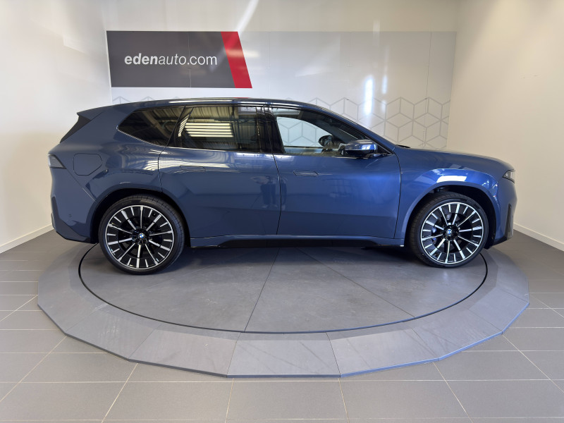 3ème feu stop à LED / 5 sièges / ABS, y compris assistant de freinage / Accès confort avec préparation "BMW Digital Key Plus" Ouverture et fermeture (des 4 portes et du hayon) et démarrage sans clé. - Eclairage d'accueil lorsque le conducteur se situe à 2,5 m du véhicule - Déverrouillage automatique à partir de 0,5 m du véhicule - Verrouillage automatique lorsque le conducteur s'éloigne du véhicule, à partir de 3 m - Y compris ouverture et fermeture sans contact du hayon par un mouvement de pied / Aide au stationnement Parking Assistant avec PDC AV / AR, caméra de recul et Panoramic View / Aides à la conduite Driving Assistant Plus Système d'aide à la conduite basé sur caméra et radar composé du régulateur de vitesse actif Active Cruise Control - Avertisseur de sortie de voie (Lane Departure Warning) - Avertisseur de collision frontale avec intervention freinage - Assistant de Limitation de Vitesse Automatique (Automatic Speed Limit Assist) / Airbag pour la tête AV et AR (rideau gonflable qui s'ouvre le toit au-dessus des première et deuxième rangées de sièges) / Airbags frontaux pour conducteur et passager AV (moyeu de volant et tableau de bord) / Airbags latéraux pour le conducteur et le passager AV dans la première rangée de sièges du corps sur le côté, les airbags se déploient depuis les dossiers de la première rangée de sièges) / Alarme antivol Surveillance des portes, coffre, capot moteur, de l'habitacle avec détecteur de soulèvement / d'inclinaison (par exemple, en cas de tentative de vol de pneus). Active la sirène ainsi que les feux AV et AR du véhicule. Envoie une notifications sur l'application My BMW en cas de déclanchement du système d'alarme et possibilité d'activation partielle (par exemple, capteur d'inclinaison lors d'un transport ou proctection de l'intérieure de l'habitacle). / Alerte de franchissement de ligne avec intervention sur le direction en cas d'urgence / Appel d'Urgence Intelligent (durée de vie de la voiture) Appel automatique vers le centre d'assistance BMW en cas d'accident. Touche SOS pour Appel d'Urgence manuel. Les données importantes sont automatiquement transmises aux secours : identification et localisation de la voiture, nombre de passagers à bord, statuts des airbags. Ce service utilise la carte SIM montée d'usine et ne requiert pas l'utilisation du smartphone. / Appuis-tête AV et AR intégrés aux sièges / Assistant d'attention avec arrêt d'urgence / Assistant de recul / Avertissement de changement de voie / Avertissement de sortie / Avertisseur 2 tons / Avertisseur sonore pour piétons / Badge avec nouveau logo BMW / BMW Digital Navigation Information trafic en temps réel RTTI (informations sur l'itinéraire actif uniquement) Carte en streaming (les mises à jour ne sont plus nécessaires) - Connected Charging - Apple CarPlay - Android Auto - BMW Intelligent Personal Assistant - Amazon Alexa - My Modes (Efficient, Personal, Sport) - Fonctions "Ma BMW à distance" - Services eDrive - Remote Software Update (RSU) / BMW Dynamic Performance Control avec "Heart of Joy" Système de conduite et de dynamique du véhicule entièrement développé par BMW, intégréà une unité de commande centrale Heart of Joy / BMW eDrive Système de récupération de l'énergie au freinage Brake Energy Regeneration jusqu'au « One Pedal Feeling » :s Position D : 4 niveaux de récupération sélectionnables (adaptatif, élevé, moyen, bas). Vitesse rampante proche de l'arrêt.Position B : niveau de récupération fixe maximal. Récupération jusqu'à l'arrêt. Pas de vitesse rampante.Capacité de la batterie haute tension avec cellule ronde Lithium-ion Gen6 : 108 kWh nette / 800 V / 400 V.Chargeur AC 11 kW.Chargeur CC 400 kW (puissance de recharge / BMW OS X avec possibilité de souscrire à l'abonnement BMW Digital Premium / BMW Panoramic Vision Projections d'informations en 4K sur toute la largeur de la partie basse du pare-brise. Cette projections est divisé en 2 grandes parties : - Partie de gauche (devant le conducteur) : combiné d'instrumentation avec toutes les informations liées à la conduite (par exemple : vitesse, autonomie, pourcentage de la batterie, sélecteur de vitesse, etc) - Partie centrale et droite (devant le passager) : 6 espaces (widgets) personnalisables et distincts (par exemple : l'assistant personnel, météo / Boîte automate à fonction continue / Bouton de démarrage du moteur Start/Stop sans manipulation de la clé / Buses de lave-glace intégrées aux balais d'essuie-glace / Câble de recharge Professionnel Mode 3 (T2-T2) pour la recharge publique - 5 mètres Câble de recharge Professionnel de Mode 3 triphasé avec prises Type 2 - Type 2 destinéà la recharge sur bornes publiques ou privées. Peut être utilisé sur une borne de recharge raccordée en courant monophasé ou triphasé avec des puissances de charge maximales : 7,4 kW / 32 A (en monophasé) et de 22 kW / 32 A (en triphasé). Rangement dans le coffret à câbles sous le cache du compartiment à bagages. Couleur Gris basalte / Carte BMW Charging / Ciel de pavillon anthracite / Clés radiocommandées à 4 touches à mémorisation automatique des réglages "Personal Profile" (x 1) / 1 Setup Card & 1 Service Card / Colone de direction réglable en hauteur et profondeur manuellement / Connection USB type C (x 2 dans l'accoudoir central AV et x 2 AR des sièges AV) / Contour de calandre gris avec intérieur en noir brillant en 3D avec intégration de la caméra avec buse de nettoyage / Contrôle de la distance de stationnement avec freinage d'urgence AV, AR et latérale / Contrôle Dynamique de la Traction (DTC) et Contrôle Dynamique de Stabilité (DSC) / Coques de rétroviseurs couleur carrosserie, partie inférieur de la coque en noir brillant / Désactivation des airbags passagers avec reconnaissance des occupants par caméra / Désignation du modèle "iX3" sur le hayon, à droite, suivie de la designation de la motorisa