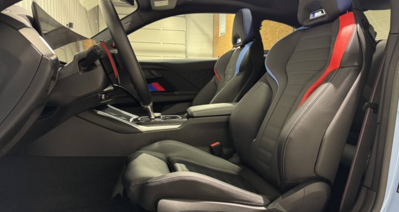 Cylindrée : 2993 cm3 Nb. Vitesse : 8 - 2x2 sorties d'échappements M - ABS - Système anti blocage des roues - Accentuations garnitures de contre-portes rétro-éclairées aux couleurs M - Accès confort avec préparation BMW Digital Key - Airbags de tête AV/AR - Airbags frontaux conducteur et passager AV - Airbags latéraux pour conducteur et passager AV - Alarme antivol - Appel d'Urgence Intelligent (durée de vie de la voiture) - Appuie-tête AR rabattables - Appui lombaire ajustable Appui lombaire à réglage électrique - Banquette AR 4 places rabattable 40/20/40 - BMW Curved Display - BMW Live Cockpit Navigation Plus - BMW Live Cockpit Navigation Pro avec Affichage Tête Haute HUD en relation avec Pack Innovation - Boîte de vitesses automatique Sport 8 rapports avec palettes au volant et Drivelogic - Capteur d'impact (Activation de l'airbag, des feux de détresse, de l'éclairage intérieur, Déverrouillage des portes, Activation de la borne batterie de sécurité, Arrêt de la pompe à carburant en cas de collision) - Ceintures de sécurité noires avec liserés aux couleurs M Ceintures de sécurité noires avec liséré aux couleurs M pour tous les sièges - Ciel de pavillon M Anthracite - Clignotants intégrés aux feux de jour - Climatisation automatique bi-zone avec microfiltre - Connectivité téléphone Bluetooth avec interface USB - Contrôle automatique de la stabilité (ASC) - Contrôle de freinage en courbe CBC - Contrôle dynamique de stabilité DSC - Contrôle dynamique du freinage (DBC) - Désactivation Airbag pour passager AV - Désignation du modèle sur la malle à droite - Disques de freins ventilés structure composite AV: Disques composites 395x36mm percés et ventilés. AR: Disques composites 370x24mm percés et ventilés - Drive Assist - Eclairage d'ambiance Eclairage lumineux dynamique pour 4 applications (bienvenue, au revoir, portes ouvertes et appel téléphonique) dans 9 coloris différents du tableau de bord, des panneaux de portes et de la console centrale. Comprend également les liseuses arrière, l'éclairage du rangement de l'accoudoir central avant et poignées d'ouverture de porte (intérieur et extérieur) ainsi qu'un éclairage de bienvenue avec tapis de lumière - Eclairage de bienvenue - Eclairage de plaque d'immatriculation à LED - Eclairage intérieur Lampes de courtoises, Eclairage boîte à gants, intérieur de l'accoudoir central, Eclairage habitacle AV et AR, Eclairage plancher AV, Eclairage coffre à bagages - Ecrous de roues antivol - Feux AR à LED intégrant les clignotants - Feux de croisement et feux de route à technologie Bi-LED - Feux de route anti-éblouissement - Feux Shadow Line M - Fixations ISOFIX pour les deux sièges AR - Fonction Start&Stop - Frein de parking électromécanique avec fonction Automatic Hold - Freins M Sport Bleus - Freins M Sport rouges - Inserts décoratifs brillant Schwarz soulignés de chrome perlé - Inserts décoratifs M en fibre de carbone - Jantes en alliage léger 19 AV / 20 AR, style 930 M à rayons doubles, Jet Black avec pneumatiques mixtes. AV: 9,5 J x 19 / pneus 275/35 ZR19 AR: 10,5 J x 19 / pneus 285/30 ZR20 - Kit de mobilité BMW - Kit de rangement - Bac de rangement dans les portes avant (une bouteille de 1L peut y prendre place) Contrôle Dynamique de la Stabiité DSC et Contrôle Dynamique de la Traction DTC - Prise 12 V dans la console centrale Controller iDrive avec touches de raccourci - Double prise USB Type C dans la console centrale arrière Détecteur de pluie et allumage automatique des projecteurs - Filets au dos des sièges avant et dans le coffre à bagages, - Limiteur de vitesse - M Drive - M Drive Professional - Mesure individuelle de pression des pneumatiques - Moteur M TwinPower Turbo essence M 6 cylindres en ligne - Pack Connected Pro - Park Assist Caméra de recul, Système d'aide au stationnement PDC AV et AR, Manoeuvres de stationnemment en créneau et en bataille, Assistant de marche AR/ Auto-reverse - Pont AR avec différentiel autobloquant M Sport - Porte-gobelets - Préparation pour feux de route anti-éblouissement - Prise de courant 12V dans la console centrale AV - Projecteurs Advanced Full LED Phares adaptatifs, Feux de virage automatique, Feux de route sans éblouissement (BMW Selective Beam), de façon à ne pas éblouir les conducteurs des véhicules roulant devant la BMW et de ceux arrivant en sens inverse. Intensité proche de lumière du jour pour un éclairage optimal de la chaussée et une meilleure visibilité dans l'obscurité, Éclairage optimal et homogène de la route, Inserts en bleu dans les projecteurs - Projecteurs LED Feux de route et feux de croisement à technologie bi- LED - Radars de stationnement AV/AR PDC - Recharge smartphone sans fil par induction - Réglage de la largeur du dossier - Régulateur de vitesse avec fonction freinage en descente - Régulateur de vitesses actif ACC + - Repair Inclusive 3 ans / 200 000 km : Garantie Commerciale étendue 2 ans + 1 an - Rétroviseur intérieur électrochrome - Rétroviseurs extérieurs à réglage électrique, chauffants et intégrant les clignotants latéraux - Rétroviseurs extérieurs rabattables électriquement, électrochrome côté conducteur - Sellerie Alcantara / Similicuir Sensatec Schwarz avec surpiqûres contrastantes Bleues Teinte d'habitacle Schwarz - Sellerie Cuir Schwarz avec surpiqûres contrastantes aux couleurs M / Teinte d'habitacle Schwarz - Services Après-vente connectés BMW TeleServices (durée de vie de la voiture) - Appel Automatique - Appel Manuel - Appel BMW Assistance - Teleservice Battery Guard - Appel Hotline - Services ConnectedDrive (Apps véhicules) (3 ans) - Seuils de portes en Aluminium avec inscription M2 - Shadow Line M brillant Eléments en noir à haute brillance : - Panneaux de garnissage des montants B et C - Encadrement extérieur des vitres latérales - Pieds et triangles des rétroviseurs extérieurs - Rails de toit (Touring) - Shadow Line M bri