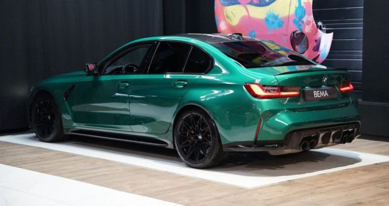 BEMA VITESSE vous propose aujourd’hui cette BMW M3 G80 Competition, présentée dans la spectaculaire teinte Isle of Man Green métallisée, associée à un intérieur Cuir Merino Noir. Véritable référence des berlines sportives modernes, la M3 G80 Competition développe 510 chevaux grâce à son 6 cylindres en ligne 3.0 TwinPower Turbo, associé à la boîte automatique M Steptronic à 8 rapports. Plus affûtée que jamais, elle combine performances de haut niveau et polyvalence au quotidien. Notre exemplaire se distingue par une configuration particulièrement désirable incluant les sièges baquets M Carbone, le Pack extérieur M Carbone, les projecteurs BMW Laser ainsi que le Pack Expérience M portant la vitesse maximale à 290 km/h. Un modèle configuré avec goût, destiné aux passionnés recherchant une M3 aboutie et parfaitement équipée. CONFIGURATION : Extérieur : Isle of Man Green métallisé Intérieur : Cuir Merino Noir - CARACTÉRISTIQUES PRINCIPALES : *Malus payé - Carte grise française *Sièges baquets M Carbone *Pack extérieur M Carbone *BMW Laser *Système Harman Kardon *Caméra 360° - OPTIONS : - Pack extérieur M Carbone - Sièges baquets M Carbone - Pack Expérience M (Vmax 290 km/h) - Teinte métallisée Isle of Man Green - Jantes forgées 19/20 Style 825M noires - BMW Laser - Inserts décoratifs fibre de carbone - Sellerie tout cuir Merino Noir - Système audio Harman Kardon - Park Assist Plus (caméra 360°) - Drive Assist - Accès confort avec Digital Key - Affichage tête haute couleur - Sièges chauffants avant - Volant chauffant - Vitrage calorifuge - Ceintures M - HISTORIQUE : Cette M3 a été livrée à son premier propriétaire en octobre 2021 et entretenue depuis exclusivement en réseau constructeur. Véhicule à jour de révision. - FINANCEMENTS EN LOA | CRÉDIT BALLON | CRÉDIT CLASSIQUE Véhicule disponible en financement à partir de 990€/mois. Pour toutes reprises, faire la demande par mail. Des erreurs peuvent se glisser dans l'annonce, merci de vous renseigner auprès d'un de nos commerciaux. Horaires d'ouverture: Lundi - Samedi de 10:00 à 19:00 Visites uniquement sur rendez-vous Site sous vidéosurveillance 7/24 En cas d'indisponibilité, merci de nous laisser un message. - M4, CS, Touring, G81, xDrive