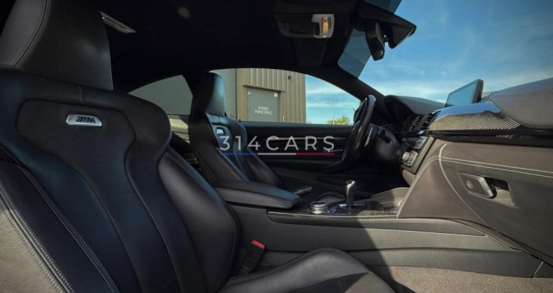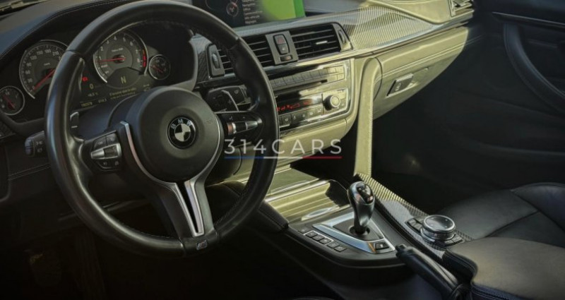 ======= EQUIPEMENTS DE SERIE ======= Affichage tête haute HUD couleur avec affichages spécifiques M et limitations de vitesse Badge M4 apposé au niveau du coffre à droite BMW M TwinPower Turbo Boîte de vitesses M DKG 7 rapports à double embrayage avec Drivelogic Ciel de pavillon Anthrazit Climatisation automatique 3 zones avec filtre microporeux et fonction de recyclage d'air Démarrage sans clé via le bouton de démarrage Start Stop avec contour chromé Détecteur de pluie et allumage automatique des projecteurs Différentiel Actif M à commande électronique avec blocage du couple variant de 0 à 100% Eclairage d'ambiance avec 2 couleurs au choix et éclairage d'approche dans les poignées extérieures Fonctions Ma BMW à distance Limiteur et régulateur de vitesse avec maintien de la vitesse en descente Ordinateur de bord, Check-Control et indicateur de température extérieure Pack Advanced Full LED Projecteurs Advanced Full LED avec quatre anneaux lumineux blancs à technologie LED pour éclairage diurne Radars de stationnement avant et arrière PDC avec représentation graphique des obstacles sur l'écran d'information central Sièges avant électriques à mémoires conducteur avec soutien lombaire Sièges avant Sport M intégraux avec logo M rétroéclairé Nb. Vitesses : 7 Conso Mixte : l/100