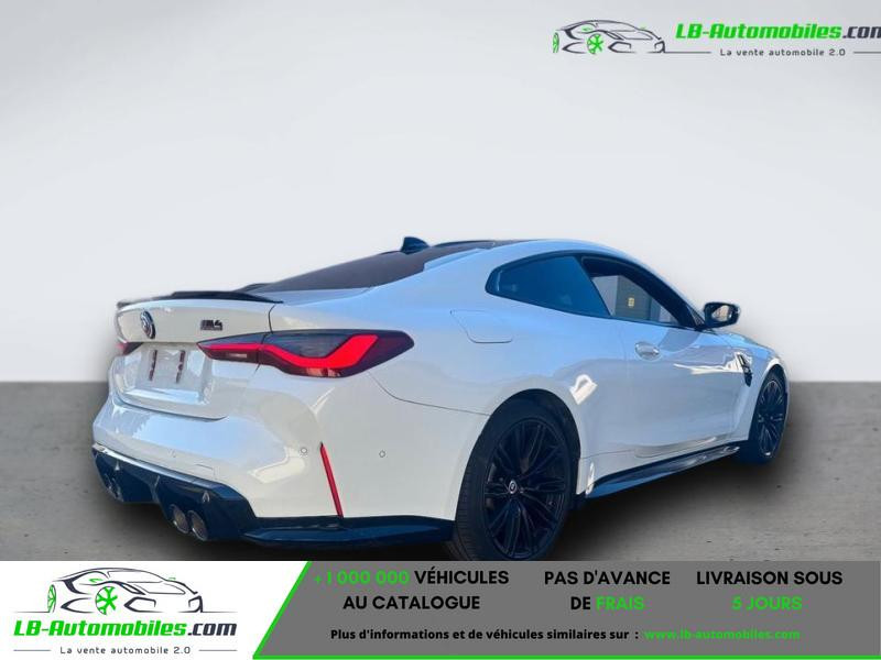 Référence : 1002985 Vos Avantages chez LB-AUTOMOBILES.com / Prix affiché TTC Livré hors carte grise / Livraison sous 10 jours dans toute la France hors 31 / Pas d?avance de frais paiement du véhicule 100% à la livraison par virement. BMW M4 Competition Coupe Neuf remisée, BMW M4 Competition Coupe Occasion Toulouse Beaupuy 31850, BMW M4 Competition Coupe Véhicule sorti de réseau collaborateur, BMW M4 Competition Coupe import, BMW M4 Competition Coupe importateur, BMW M4 Competition Coupe Livraison possible dans toute la France sous 5 jours, BMW M4 Competition Coupe, BMW M4 Competition Coupe Location Option Achat, BMW M4 Competition Coupe LLD, BMW M4 Competition Coupe Longue Durée, BMW M4 Competition Coupe TVA récupérable. Possibilité d'extension de garantie 12, 24,36 mois, Pour tout autres voitures import neufs ou occasions collaborateur fortement remisée, Mandataire Audi, Mandataire BMW, Mandataire Volkswagen, Mandataire Mercedes, Mandataire Peugeot Espagne, Mandataire Renault Espagne, Porsche import, Mandataire Citroën Espagne, Mandataire Seat Espagne, n'hésitez pas à nous contacter. « Sous réserve de vente préalable et erreur de saisie » Principaux équipements : - ABS - Accoudoir - Affichage tête haute - Airbags frontaux et latéraux et autres - Antidémarrage - Apple CarPlay - Assistant d'angle mort - Assistant de vision nocturne - Assistant feux de route - Avertisseur de franchissement de ligne - Bluetooth - Boîte de vitesses robotisée - Capteur de lumière - Capteur de pluie - Carnet d'entretien - Chargement par induction pour smartphones - Climatisation automatique - Cockpit numérique - Contrôle de la pression des pneus - Direction assistée - Éclairage d'ambiance - Éclairage route non éblouissant - Écran tactile - ESP - Fermeture centralisée - Feux de jour LED - Garantie - GPS - Isofix - Jantes alliage - Kit de réparation d'urgence des pneus - Kit mains libres - Lecteur CD - Ordinateur de bord - Pack sport - Phare antibrouillard - Phares LED - Pneus été - Port USB - Propulsion - Réglage électrique des sièges - Réglage électrique des sièges avec fonction mémoire - Régulateur de vitesse - Rétroviseur extérieur électrique - Rétroviseur intérieur anti-éblouissement automatique - Rétroviseurs extérieurs rabattables électriquement - Sièges arrières chauffants électriques - Sièges chauffants - Sièges sport - Suspension adaptative - Suspension sport - Système d'alarme - Système d'avertissement de la distance - Système de détection de la fatigue - Système de sonorisation - Système Stop & Start - Véhicule non-fumeur - Verrouillage centralisé sans clé - Vitres électriques - Vitres teintées - Volant en cuir - Volant multifonction - Radar de recul : Caméra 360 - Première main : Non