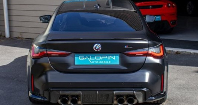 BMW M4 Compétition G82 - Coupé Mise en circulation : 27/06/2022 Garantie : 6 mois Puissance : 510 ch - 3.0 L I6 biturbo (S58B30M0) Transmission : Propulsion - Boîte automatique M Steptronic 8 rapports Historique & entretien : ?? Véhicule 1er immatriculation France pas de malus ?? Véhicule non accidenté ?? Excellent état général ?? Sort d’entretien ?? Peinture Frozen Black Metallic Configuration : Peinture Noir Mat Frozen Black Metallic — Échappement M Sport — Intérieur cuir étendu Merino — Sièges électriques chauffants M Sport — Affichage tête haute — Volant M en cuir multifonctions — Jantes alliage M — Étriers de freins M Bleu — Pack carbone complet extérieur Options & équipements : Audio & connectivité : • Navigation GPS BMW Live Cockpit • Système Hi-Fi • Bluetooth / connectivité smartphone • Apple CarPlay / Android Auto Conduite & sécurité : • Transmission Propulsion • Launch Control • Suspensions adaptatives M • Caméra 360° • Radars de stationnement • Régulateur de vitesse • Affichage tête haute • Feux BMW Laser Extérieur : • Jantes alliage M • Étriers de freins M Bleu • Échappement M Sport • Pack carbone complet extérieur (becquet M perf, diffuseur arrière, pare-choc avant, toit) Intérieur : • Sièges chauffants M Sport • Sièges électriques à mémoire • Volant M en cuir multifonctions • Compteurs numériques BMW spécifiques M4 Dimensions & performances : • Longueur : env. 4,79 m • Largeur : env. 1,90 m • Hauteur : env. 1,38 m • Poids : env. 1 880 kg • 0 à 100 km/h : env. 3,8 s • Vitesse max : env. 250 km/h (bridée) • Couple : 650 Nm • Moteur 3.0 L I6 biturbo - 510 ch Possibilité de reprise sur véhicule de sport ou prestige. Visible au showroom sur rendez-vous. Galopin Automobile