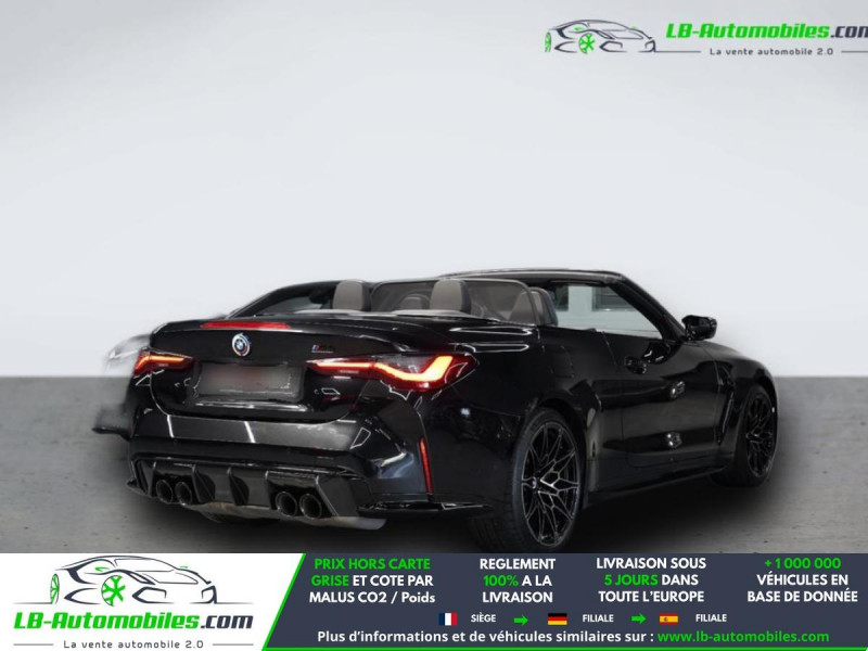 Référence : 1183242 Vos Avantages chez LB-AUTOMOBILES.com / Prix affiché TTC Livré hors carte grise / Livraison sous 10 jours dans toute la France hors 31 / Pas d?avance de frais paiement du véhicule 100% à la livraison par virement. BMW M4 Competition Cabriolet Neuf remisée, BMW M4 Competition Cabriolet Occasion Toulouse Beaupuy 31850, BMW M4 Competition Cabriolet Véhicule sorti de réseau collaborateur, BMW M4 Competition Cabriolet import, BMW M4 Competition Cabriolet importateur, BMW M4 Competition Cabriolet Livraison possible dans toute la France sous 5 jours, BMW M4 Competition Cabriolet, BMW M4 Competition Cabriolet Location Option Achat, BMW M4 Competition Cabriolet LLD, BMW M4 Competition Cabriolet Longue Durée, BMW M4 Competition Cabriolet TVA récupérable. Possibilité d'extension de garantie 12, 24,36 mois, Pour tout autres voitures import neufs ou occasions collaborateur fortement remisée, Mandataire Audi, Mandataire BMW, Mandataire Volkswagen, Mandataire Mercedes, Mandataire Peugeot Espagne, Mandataire Renault Espagne, Porsche import, Mandataire Citroën Espagne, Mandataire Seat Espagne, n'hésitez pas à nous contacter. « Sous réserve de vente préalable et erreur de saisie » Principaux équipements : - 4x4 - ABS - Accoudoir - Affichage tête haute - Android Auto - Antidémarrage - Apple CarPlay - Assistance au freinage d'urgence - Assistance de démarrage en côte - Assistant d'angle mort - Assistant feux de route - Avertisseur de franchissement de ligne - Bluetooth - Boîte de vitesses robotisée - Capteur de lumière - Capteur de pluie - Carnet d'entretien - Cockpit numérique - Commande vocale - Contrôle de la pression des pneus - Direction assistée - Éclairage adaptatif de virage - Éclairage d'ambiance - Éclairage route non éblouissant - Écran tactile - ESP - Fermeture centralisée - Feux de jour LED - Garantie - GPS - Isofix - Jantes alliage - Kit mains libres - Ordinateur de bord - Package hiver - Pack sport - Phare antibrouillard - Phares laser - Pneus été - Point Isofix siège passager - Port USB - Radio DAB - Réglage électrique des sièges - Réglage électrique des sièges avec fonction mémoire - Régulateur de vitesse adaptatif - Rétroviseur extérieur électrique - Rétroviseur intérieur anti-éblouissement automatique - Rétroviseurs extérieurs rabattables électriquement - Siège passager rabattable - Sièges chauffants - Sièges sport - Streaming musical intégré - Support lombaire - Suspension adaptative - Suspension sport - Système antipatinage - Système d'alarme - Système d'appel d'urgence - Système d'avertissement de la distance - Système de détection de la fatigue - Système de limitation de la vitesse - Système de reconnaissance des panneaux de signalisation - Système de sonorisation - Système Stop & Start - Toit pliant - Tuner/radio - Véhicule non-fumeur - Ventilation du siège - Verrouillage centralisé sans clé - Vitres électriques - Volant chauffant - Volant en cuir - Volant multifonction - WLAN / point d'accès Wi-Fi