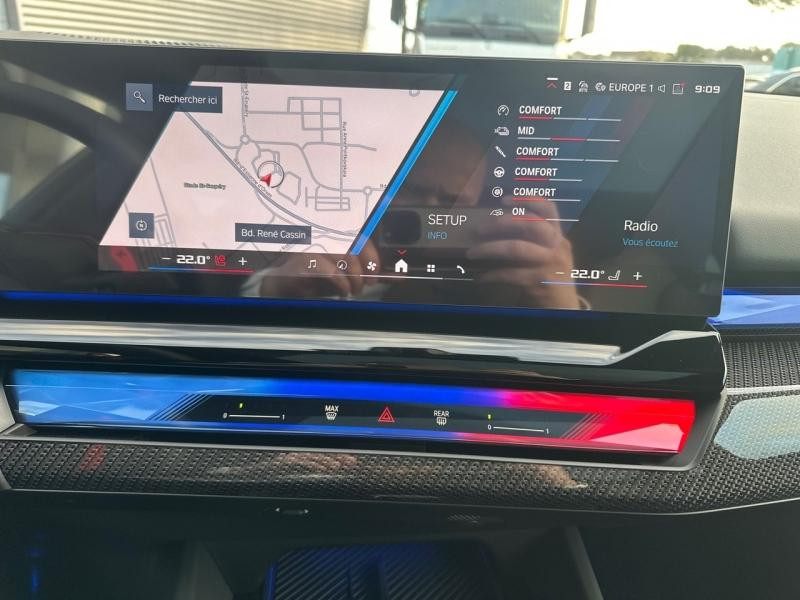 Aides à la conduite Driving Assistant Professional / Aides au stationnement Parking Assistant Plus / Alarme antivol / Attelage de remorque / Avertisseur de risque de collision et système anti collision à basse vitesse / Avertisseur sonore pour piétons / BMW IconicSounds Electric / BMW Live Cockpit Navigation Professional / Câble Professional Mode 3 (T2-T2) pour la recharge publique / Caméra d'habitacle / Chargeur rapide AC 11 kW / Ciel de pavillon M Alcantara anthracite / Compte-tours / Coques de rétroviseurs M Carbon / Dalle de recharge par induction pour smartphone / Eclairage d'ambiance / Equipements spécifiques UE / Freins M Composites rouges / Inserts décoratifs Dark Silver M avec Fibre de Carbone et fils argent. brillants / Kit de mobilité / Mesure individuelle de pression de pneumatiques / Pack Connected Professional (dont Apple CarPlay et Google Android Auto) / Pack Extérieur BMW Iconic Glow avec calandre illuminée / Personal eSim