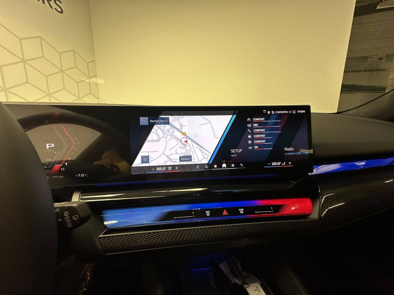 1 clé radiocommandée à mémorisation automatique des réglages "Personal Profile" 1 Setup Card & 1 Service Card / 3 ceintures AR 3 points / 3ème feu stop à LED / 5 sièges / ABS (système de freinage antiblocage) y compris assistant de freinage d'urgence en virage / Accoudoir central AV/AR (avec 2 porte-gobelets) / Active Guard -Avertisseur de collision AV avec intervention de freinage pour piétons/cyclistes incl. dans les virages et aux carrefours -Avertisseur de sortie de voie avec retour actif -Informations sur la limite de vitesse (Speed Limit Info) avec indication d'interdiction de dépassement ainsi que l'assistant de limitation de vitesse manuel (Speed Limit Assist) / Aides à la conduite Driving Assistant Avertisseur d'angle mort et de changement de voie, Avertisseur de trafic transversal AR, Avertisseur de risque de collision AR, Avertisseur de sortie de la voiture, Indicateur de limitation de vitesse / Aides à la conduite Driving Assistant Plus - Fonction à la demande / Aides à la conduite Parking Assistant Système d'aide à la conduite basé sur caméra et radars à ultrason comprenant les fonctionnalités d'Aides à la conduite suivantes : - Surround View - Remote 3D View - Drive Recorder - Remote Theft Recorder / Aides au stationnement Parking Assistant Système d'aide à la conduite basé sur caméra et radars à ultrason comprenant les fonctionnalités d'Aides à la conduite suivantes : - Caméra de recul avec vue panoramique AR intégrée dans l'emblème - Active Park Distance Control - Park Assistant (Aide au stationnement automatique) - Auto Reverse (Assistant de recul) - Aide au stationnement latéral / Airbag central (siège conducteur) / Airbag frontal (volant/conducteur et passager AV(désactivation possible)) / Alarme antivol / Appel d'Urgence Intelligent (durée de vie de la voiture) Appel automatique vers le centre d'assistance BMW en cas d'accident. Touche SOS pour Appel d'Urgence manuel. Les données importantes sont automatiquement transmises aux secours : identification et localisation de la voiture, nombre de passagers à bord, statuts des airbags. Ce service utilise la carte SIM montée d'usine et ne requiert pas l'utilisation du smartphone. / Appui lombaire ajustable / Assistant d'attention avec recommandation de pause / Avertisseur sonore pour piétons / Badges M5 sur les montants C / BMW IconicSounds Electric . / BMW ID (profils conducteurs) / BMW iDrive / BMW Live Cockpit Navigation Professional avec Affichage tête Haute et Réalité Augmentée - BMW Curved Display : combinaison de 2 écrans incurvés hautes résolutions dont un au niveau du tableau de bord de 12,3 "et un écran central tactile de 14,9", - Système d'exploitation BMW OS 8.5 avec widgets variables et configurables qui affichent des informations en temps réel, - Affichage tête haute HUD en couleur - Guidage intéractif avec "Réalité Augmentée - BMW Maps / BMW M xDrive (4WD, 4WD Sport, 2WD) / Boîte de vitesses automatique Sport 8 rapports avec palettes au volant / Bouton de démarrage du moteur Start/Stop sans manipulation de la clé / Buse de lave-glace pour caméra de recul (à côté du bouton du hayon) / Buses de lave-glace dégivrantes / Câble de recharge Professionnel Mode 3 (T2-T2) pour la recharge publique - 5 mètres Câble de recharge Professionnel de Mode 3 triphasé avec prises Type 2 - Type 2 destinéà la recharge sur bornes publiques ou privées. Peut être utilisé sur une borne de recharge raccordée en courant monophasé ou triphasé avec des puissances de charge maximales : 7,4 kW / 32 A (en monophasé) et de 22 kW / 32 A (en triphasé). Rangement dans le coffret à câbles sous le cache du compartiment à bagages. Couleur Gris basalte / Caméra d'habitacle Intégrée au ciel de pavillon. Permet de prendre des photos de l'intérieur en cours de route ou à distance, à l'arrêt via l'application My BMW / Capteur de pluie et allumage automatique des projecteurs / Ceintures de sécurité noires avec liserés aux couleurs M Ceintures de sécurité AV/AR en noir avec bandes spécifiques M / Chargeur rapide AC 11 kW / Chauffage de lunette AR / Ciel de pavillon M Anthracite Ciel de pavillon, garnitures des montant et pare-soleil de couleur anthracite. / Commande électrique du volet de coffre Ouverture à distance du coffre (clé) et fermeture par la touche située sur le coffre. / Dalle de recharge par induction / Désignation du modèle en noir / Différentiel M Sport Propulsion, agilité, stabilité, confort et comportement de conduite améliorés. Réglage du degré de blocage (essieu AR) entre 0 et 100 % en fonction de la situation de conduite et de l'état de la chaussée. - Traction - Agilité - Stabilité / Disques de freins AV/AR / Eclairage d'ambiance avec BMW Interaction Bar Des éléments à LED illuminent la planche de bord, la console centrale, les HPs, le bas d'habitacle, les panneaux et les hauts de contre-porte, ainsi que le déverrouillage des portes. La BMW Interaction Bar fait elle aussi partie de la mise en scène. L'éclairage d'ambiance offre six mises en scène lumineuses prédéfinies et peut être modulé suivant les goût de chacun. Plusieurs couleurs sont disponibles pour cela, au choix dans différentes combinaisons. / Ecrous de roues antivol / Feux de jour et clignotants AV/AR à LED / Feux de route anti-éblouissement / Feux de sortie de porte / Fonctionnalité Plug&Charge / Frein de parking électrique avec fonction "Automatic Hold" / Freins M Sport bleus / Inserts décoratifs Dark Silver avec Aluminium Rhombicle / Jantes M 20"/21" à rayons doubles style 951 M bicolores Midnight Grey avec pneus mixtes AV : 10.5J 20 / pneus : 285/40 ZR 20 AR : 11J 21 / pneus : 295/35 ZR 21 Midnight Grey / Diamant poli / Kit de mobilité / Launch Control / Lève-vitres électriques AV avec protection anti-pincement / M Drive Professional / M Dynamic Mode / Mesure individuelle de pression des pneumatiques / Motorisation M Hybrid avec : x M TwinPo