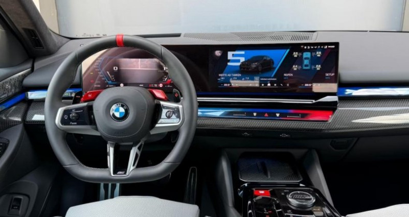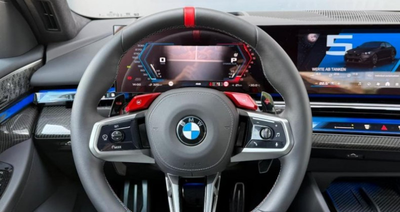 ======= OPTIONS ======= Jantes M 20 21 à rayons doubles style 952 M bicolores Black avec pneus mixtes AV : 10.5J 20 pneus : 285 40 ZR 20 AR : 11J 21 pneus : 295 35 ZR 21 Jet Black haute brillance high-gloss Fraisé diamant Aides au stationnement Parking Assistant Professional Système d'aide à la conduite basé sur caméra et radars à ultrason comprenant les fonctionnalités d'Aides à la conduite Park Assist Plus et un assistant de stationnement sans conducteur &a Attelage de remorque électrique Bouton dans le compartiment à bagages, l'attelage de remorque peut être pivoté électriquement jusqu'à ce qu'il soit complètement rangé sous le bouclier AR Câble BMW Flexible Charger 2.0 Mode 2 pour la recharge à domicile - 6 mètres Le BMW Flexible Fast Charger est un appareil mobile et flexible permettant la recharge à domicile. Boîtier étanche. Peut être utilisé avec l'Adaptateur pour prise d Ciel de pavillon M Alcantara anthracite Driving Assistant Professional Régulateur de vitesse actif ACC+ avec fonction Stop & Go jusqu'à 210 km h, Pilote semi-automatique, conduite autonome de niveau 2, Automatic Speed Limit Assist, Assistant de direction et de maintien de voie, Avertisseur de trafic transversal AV Freins M Composites rouges Essieu AV : - Frein à étrier fixe à 6 pistons, peint en rouge - Identification M - Disque de frein en composite 410mm x 36mm, ventilé, perforé Essieu AR : - Frein à étrier flottant à 1 piston, peint en rouge, ave Inserts décoratifs Dark Silver M avec Fibre de Carbone et fils argentés brillant Repair Inclusive 3 ans 200 000 km : Garantie Commerciale étendue 2 ans + 1 an Sellerie cuir Mérino Silverstone Schwarz Teinte de carrosserie métallisée BMW Individual ======= EQUIPEMENTS DE SERIE ======= M Drive Professional Accès Confort Adaptateur pour prise domestique (type E+F) Adaptateur (type E + F) pour BMW Flexible Charger nécessaire pour recharger sur une prise domestique 220 V Alarme antivol Appel d'Urgence Intelligent (durée de vie de la voiture) Appel automatique vers le centre d'assistance BMW en cas d'accident. Touche SOS pour Appel d'Urgence manuel. Les données importantes sont automatiquement transmises aux secours : identification et localisation Avertisseur sonore pour piétons BMW IconicSounds Electric . BMW Live Cockpit Navigation Professional avec Affichage tête Haute et Réalité Augmentée - BMW Curved Display : combinaison de 2 écrans incurvés hautes résolutions dont un au niveau du tableau de bord de 12,3 et un écran central tactile de Câble de recharge Professionnel Mode 3 (T2-T2) pour la recharge publique - 5 mètres Câble de recharge Professionnel de Mode 3 triphasé avec prises Type 2 - Type 2 destiné à la recharge sur bornes publiques ou privées. Peut être utilisé su Caméra d'habitacle Intégrée au ciel de pavillon. Permet de prendre des photos de l'intérieur en cours de route ou à distance, à l'arrêt via l'application My BMW Ceintures de sécurité noires avec liserés aux couleurs M Ceintures de sécurité AV AR en noir avec bandes spécifiques M Chargeur rapide AC 11 kW Climatisation automatique à 4 zones Dalle de recharge par induction Eclairage d'ambiance avec BMW Interaction Bar Des éléments à LED illuminent la planche de bord, la console centrale, les HPs, le bas d'habitacle, les panneaux et les hauts de contre-porte, ainsi que le déverrouillage des portes. La BMW Interaction Bar fait elle Ecrous de roues antivol Kit de mobilité Mesure individuelle de pression des pneumatiques Personal eSIM Personal eSIM est la version électronique, intégrée au véhicule, de la carte SIM traditionnelle. Vous l'utilisez via un abonnement souscrit auprès d'un opérateur téléphonique et transformez ainsi votre BMW en pér Projecteurs Advanced Full LED Phares adaptatifs, Feux de virage automatique, Feux de route sans éblouissement (BMW Selective Beam), de façon à ne pas éblouir les conducteurs des véhicules roulant devant la BMW et de ceux arrivant en sens inverse. Intensité p Projecteurs Shadow Line M Services Après-vente connectés BMW TeleServices Services ConnectedDrive (3 ans) Shadow Line M brillant étendu Shadow Line M brillant Eléments en noir à haute brillance : - Panneaux de garnissage des montants B et C - Encadrement extérieur des vitres latérales - Pieds et triangles des rétroviseurs extérieurs Sièges AV électriques à memoire conducteur Réglages électriques pour les sièges à AV: hauteur du siège, inclinaison du dossier, position du siège, Réglage de la colonne de direction électrique.Siège conducteur avec m Sièges M multifonctions Système Hi-Fi Bowers & Wilkins Surround Sound Triangle de présignalisation avec kit de premiers secours Tuner radio numérique DAB Vitrage calorifuge Volant chauffant Conso Mixte : l/100