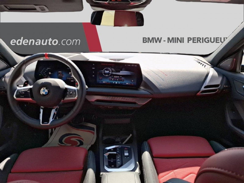 2 porte-gobelets sur la console centrale / 2 ports USB Type C dans la console centrale + 2 à l'AR / 3ème feu stop à LED sur la lunette AR / Accoudoir central AV avec compartiment de rangement / Active Guard - Avertissement de sortie de voie - Avertissement de collision frontale avec intervention sur les freins - Avertissement de virage à gauche (véhicule) avec fonction de freinage - Indicateur de limitation de vitesse - Assistant d'évitement / Airbags de tête AV et aux places latérales AR / Alarme antivol / Appel d'Urgence Intelligent (durée de vie de la voiture) Appel automatique vers le centre d'assistance BMW en cas d'accident. Touche SOS pour Appel d'Urgence manuel. Les données importantes sont automatiquement transmises aux secours : identification et localisation de la voiture, nombre de passagers à bord, statuts des airbags. Ce service utilise la carte SIM montée d'usine et ne requiert pas l'utilisation du smartphone. / Appuis-tête et ceintures de sécurité 3 points à toutes les places / BMW Curved Display / BMW Intelligent Personal Assistant / BMW Live Cockpit Navigation Plus / BMW "My Modes" (Personal/ Efficient/ Sport) / BMW xDrive - Système 4 roues motrices à gestion intelligente - Roues AV toujours motrices, puissance envoyée aussi aux roues AR si perte de motricitéà l'AV - Distribution variable de la puissance et du couple entre les roues AV/AR ajustée en temps réel / Boîte de vitesses automatique avec palettes à double embrayage DKG7 à 7 rapports / Calandre avec encadrement en chrome et barreaux verticaux / diagonaux / Capteurs d'impact - Activation de l'airbag, des feux de détresse, de l'éclairage intérieur - Déverrouillage des portes et légère ouverture des vitres / Ciel de pavillon M Anthracite / Compartiment à bagages : 2 crochets de sac, filet sur panneau droit / Contrôle de stabilité dynamique (DSC) avec dotation élargie - Assistant de démarrage en côte - Assistant dynamique de motricité (DTC) / Désignation du modèle à droite du hayon / Détecteur d'accident (crash sensor) - Allume les feux de détresse - Déverouillage des portes / Détecteur de pluie et allumage automatique des projecteurs / Déverrouillage électrique du coffre via la volet de coffre ou la clé radiocommandée / Diffuseur AR en « Dark Shadow » avec 4 sorties d'échappement rondes de 100 mm (2 de chaque côtés) / Driving Assistant - Avertisseur de franchissement de ligne (>70km/h avec vibrations dans le volant) - Avertisseur d'angle mort (>20km/h avec voyant d'alerte) - Avertisseur de risque de collision AV (>15km/h, préconditionnment du freinage >50km/h, assistance au freinage) - Avertisseur de risque de collision AR (déclenchement automatique des warning) - Avertisseur de trafic transversal AR (Avertisseur en cas de circulation transversale détectée derrière la voiture) / Eclairage de bienvenue autour du véhicule / Eclairage de plaque d'immatriculation à LED / Eclairage intérieur - Lampes de courtoisie - Eclairage habitacle AV et AR, y compris éclairage d'ambiance - Eclairage coffre à bagages sur le coté droit - Eclairage intérieur du compartiement de rangement dans l'accoudoir central - Lampes de lecture à l'AV et à l'AR - Eclairage plancher AV et AR / Ecrous de roues antivol / Eléments extérieurs (poignées de portes, baguettes de pare-chocs et de toit) couleur carrosserie / Fonction Start&Stop avec système prédictif via la navigation / Freins M Sport bleus Les puissants freins M Sport se caractérisent par des étriers de freins avant à 4 pistons fixes, des disques de frein surdimensionnés à AV et AR. Les 4 étriers reçoivent une peinture bleu et le logo M à l'AV / Inserts décoratifs M Aluminium mat "Hexacube" illuminés / Jantes en alliage léger 18" style 975 M, à rayons doubles, bicolores Midnight Grey 8 J x 18 / pneus 225/45 R18.Comprennent écrous de roues antivol. Montage chaînes à neige impossible. / Mesure individuelle de pression des pneumatiques avec 3 niveaux / Moteur TwinPower Turbo essence 4 cylindres -Turbocompresseur avec Dump Valve intégrée - Valvetronic - Double VANOS -Technologie BMW High Precision Injection - Conception allégée grace à l'aluminium - Double injection (collecteur d'admission et direct) et géométrie optimisée de la chambre de combustion / Parking Assistant - Caméra de recul - Manoeuvres de stationnemment automatique en créneau et en bataille - Freinage automatique (PDC actif) en marche AR - Assistant de marche AR/Auto-reverse / Personal eSIM Personal eSIM est la version électronique, intégrée au véhicule, de la carte SIM traditionnelle. Vous l'utilisez via un abonnement souscrit auprès d'un opérateur téléphonique et transformez ainsi votre BMW en périphérique mobile supplémentaire : - La BMW sera ajoutée au contrat du téléphone mobile du client en tant qu'appareil supplémentaire - Connectivité 5G - Les appels téléphoniques ou les connexions de données ne nécessitent pas la présence physique du téléphone portable privé / Prise 12 V dans la console centrale / Régulateur de vitesse avec fonction de freinage dans les descentes / Régulateur de vitesse avec fonction de freinage et limiteur de vitesse / Rétroviseurs extérieurs couleur carrosserie avec rappels de clignotants intégrés / Sellerie Alcantara / Similicuir Veganza Schwarz avec surpiqûres bleues / Services Après-vente connectés BMW Teleservices (durée de vie de la voiture) / Shadow Line M brillant Entourage des vitres latérales, les baguettes de bas de glace, les montants centraux ainsi que les pourtours, pieds et triangles des rétroviseurs extérieurs en noir brillant / Sorties d'échappement non visibles / Spoiler AR M / Suspension Adaptive M / Système de détection de somnolence / Système Hi-Fi Harman Kardon Système Hi-Fi muni de 12 HPs : - 1 tweeter central au milieu de la planche de bord - 1 HP central médium au milieu de la planche de bord - 2 tweeters dans les panneaux de garniture de