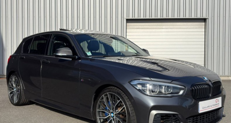 //// GUILLARD AUTOMOBILES VOUS PROPOSE A LA VENTE CETTE BELLE BMW SERIE 1 M140i XDRIVE 340ch (F20) BVA8 1ère Main //// // 10686euros D'OPTIONS // -Mise en circulation : 28/12/2018 -Puissance fiscale : 23ch -Couleur extérieure : MineralGrau (840euros) *Description du véhicule : -Pack Confort : Accès Comfort ( ouverture / fermeture des portes et démarrage sans clé ), sièges avant électriques à mémoire conducteur, appui lombaire ajustable pour sièges avant, sièges avant chauffants (1360euros) -Sièges sport cuir noir tout électriques à mémoire avec réglages lombaires électriques et surpiqûres bleues -Accoudoirs de portières en cuir avec surpiqûres bleues -Volant sport M en cuir / alu multifonctions -Radio CD commande au volant -Ordinateur de bord -Système Hi-Fi (300euros) -Planche de bord en cuir -Pack Innovation : Pack Advanced FULL LED, feux de route anti-éblouissements, Pack Safety (650euros) -Régulateur + limiteur de vitesse -Avertisseur de collision -Avertisseur de franchissement de ligne -Phares adaptatifs -Allumage automatique des feux -Détecteur de pluie -Climatisation automatique bizone (560euros) -Pack ConnectedDrive : Alarme antivol, navigation multimédia Professional, information Trafic en temps réel, conciergerie, connectivité avancée sans fil Hot Sport Wi-Fi et recharge sans fil par induction (1590euros) -GPS couleur tactile -Prises USB -Bluetooth audio -Connexion téléphone mains-libres Bluetooth -Commande vocale -4 vitres électriques -Rétroviseurs rabattables électriquement -Rétroviseurs extérieur électrochromes -Boîte de vitesse automatique séquentielle avec palettes au volant -4 modes de conduite ( Eco Pro / Comfort / Sport / Sport + ) -Fonction START & STOP -Pack Evasion : Toit ouvrant en verre coulissant et entrebaillable électriquement, vitrage calorifuge, prise 12V additionnelle (1010euros) -Accoudoir central en cuir -Kit rangement -Kit fumeurs (40euros) -Inserts décoratifs en carbone / alcantara avec inscription M Performance brodé -Rétroviseur intérieur électrochrome -Ciel de pavillon noir -Baguettes de seuils de portes alu avec inscription M140i -Pédalier / repose pied sport M en acier inoxydable -Tapis de sol en velours -Pack SimpliCity : Caméra de recul, système de manoeuvres automatique Park Assist (440euros) -Phares BMW Adaptative LED -Antibrouillards -Suspension SelectDrive -Edition Limité Série 1 5 portes (3896euros) -Jantes alu 19 M -Etriers de freins bleus avec inscription M -Kit aérodynamique M -Shadow Line Brillant extérieur -Coques de rétroviseurs en carbone -Système d'échappement sport M avec sorties en carbone Origine Véhicule en très bon état. Entretien suivi à jour. Véhicule révisé et garanti 12 mois (Extension possible de la garantie 24 mois). // REPRISE POSSIBLE DE VOTRE VEHICULE // // TOUS NOS VEHICULES SONT VISIBLES SUR RENDEZ-VOUS A PLEUMELEUC // SARL GUILLARD AUTOMOBILES 6 RUE LAENNEC 35137 PLEUMELEUC // HORAIRES D'OUVERTURE SEULEMENT SUR RENDEZ-VOUS //: -DU LUNDI au VENDREDI : 9h00-12h00 14h00-18h00 -LE SAMEDI : 9h00-12h00