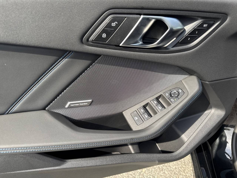 2 porte-gobelets sur la console centrale / 2 ports USB Type C dans la console centrale + 2 à l'AR / 3ème feu stop à LED sur la lunette AR / Accoudoir central AV avec compartiment de rangement / Active Guard - Avertissement de sortie de voie - Avertissement de collision frontale avec intervention sur les freins - Avertissement de virage à gauche (véhicule) avec fonction de freinage - Indicateur de limitation de vitesse - Assistant d'évitement / Airbags de tête AV et aux places latérales AR / Alarme antivol / Appel d'Urgence Intelligent (durée de vie de la voiture) Appel automatique vers le centre d'assistance BMW en cas d'accident. Touche SOS pour Appel d'Urgence manuel. Les données importantes sont automatiquement transmises aux secours : identification et localisation de la voiture, nombre de passagers à bord, statuts des airbags. Ce service utilise la carte SIM montée d'usine et ne requiert pas l'utilisation du smartphone. / Appuis-tête et ceintures de sécurité 3 points à toutes les places / BMW Curved Display / BMW Intelligent Personal Assistant / BMW Live Cockpit Navigation Plus / BMW "My Modes" (Personal/ Efficient/ Sport) / BMW xDrive - Système 4 roues motrices à gestion intelligente - Roues AV toujours motrices, puissance envoyée aussi aux roues AR si perte de motricitéà l'AV - Distribution variable de la puissance et du couple entre les roues AV/AR ajustée en temps réel / Boîte de vitesses automatique avec palettes à double embrayage DKG7 à 7 rapports / Calandre avec encadrement en chrome et barreaux verticaux / diagonaux / Capteurs d'impact - Activation de l'airbag, des feux de détresse, de l'éclairage intérieur - Déverrouillage des portes et légère ouverture des vitres / Ciel de pavillon M Anthracite / Compartiment à bagages : 2 crochets de sac, filet sur panneau droit / Contrôle de stabilité dynamique (DSC) avec dotation élargie - Assistant de démarrage en côte - Assistant dynamique de motricité (DTC) / Désignation du modèle à droite du hayon / Détecteur d'accident (crash sensor) - Allume les feux de détresse - Déverouillage des portes / Détecteur de pluie et allumage automatique des projecteurs / Déverrouillage électrique du coffre via la volet de coffre ou la clé radiocommandée / Driving Assistant - Avertisseur de franchissement de ligne (>70km/h avec vibrations dans le volant) - Avertisseur d'angle mort (>20km/h avec voyant d'alerte) - Avertisseur de risque de collision AV (>15km/h, préconditionnment du freinage >50km/h, assistance au freinage) - Avertisseur de risque de collision AR (déclenchement automatique des warning) - Avertisseur de trafic transversal AR (Avertisseur en cas de circulation transversale détectée derrière la voiture) / Eclairage de bienvenue autour du véhicule / Eclairage de plaque d'immatriculation à LED / Eclairage intérieur - Lampes de courtoisie - Eclairage habitacle AV et AR, y compris éclairage d'ambiance - Eclairage coffre à bagages sur le coté droit - Eclairage intérieur du compartiement de rangement dans l'accoudoir central - Lampes de lecture à l'AV et à l'AR - Eclairage plancher AV et AR / Eléments extérieurs M Sport / Eléments extérieurs (poignées de portes, baguettes de pare-chocs et de toit) couleur carrosserie / Eléments intérieurs M Sport / Fonction Start&Stop avec système prédictif via la navigation / Inserts décoratifs Aluminium Graphite illuminés / Jantes en alliage léger 18" style 975 M, à rayons doubles, bicolores Midnight Grey 8 J x 18 / pneus 225/45 R18.Comprennent écrous de roues antivol. Montage chaînes à neige impossible. / Kit de mobilité BMW Bouteille de mastic pour pneumatiques - compresseur électrique 12 V (connexion à une prise 12V) / Lève-vitres AV et AR / Mesure individuelle de pression des pneumatiques avec 3 niveaux / Moteur TwinPower Turbo essence 4 cylindres -Turbocompresseur avec Dump Valve intégrée - Valvetronic - Double VANOS -Technologie BMW High Precision Injection - Conception allégée grace à l'aluminium - Double injection (collecteur d'admission et direct) et géométrie optimisée de la chambre de combustion / Parking Assistant - Caméra de recul - Manoeuvres de stationnemment automatique en créneau et en bataille - Freinage automatique (PDC actif) en marche AR - Assistant de marche AR/Auto-reverse / Personal eSIM Personal eSIM est la version électronique, intégrée au véhicule, de la carte SIM traditionnelle. Vous l'utilisez via un abonnement souscrit auprès d'un opérateur téléphonique et transformez ainsi votre BMW en périphérique mobile supplémentaire : - La BMW sera ajoutée au contrat du téléphone mobile du client en tant qu'appareil supplémentaire - Connectivité 5G - Les appels téléphoniques ou les connexions de données ne nécessitent pas la présence physique du téléphone portable privé / Prise 12 V dans la console centrale / Régulateur de vitesse avec fonction de freinage dans les descentes / Régulateur de vitesse avec fonction de freinage et limiteur de vitesse / Rétroviseurs extérieurs couleur carrosserie avec rappels de clignotants intégrés / Sellerie Alcantara / Similicuir Veganza Schwarz avec surpiqûres bleues / Services Après-vente connectés BMW Teleservices (durée de vie de la voiture) / Shadow Line M brillant Entourage des vitres latérales, les baguettes de bas de glace, les montants centraux ainsi que les pourtours, pieds et triangles des rétroviseurs extérieurs en noir brillant / Sorties d'échappement non visibles / Suspension Adaptive M / Système de détection de somnolence / Système Hi-Fi 6 HP / Tapis de sol anthracite / Teinte de carrosserie unie / Triangle de présignalisation avec kit de premiers secours / Volant M gainé cuir (avec surpiqûres noires) Trois branches. Jante en cuir noir 'Walknappa', inserts chrome perlé et repose-pouce dans le volant. Logo M sur la base du volant