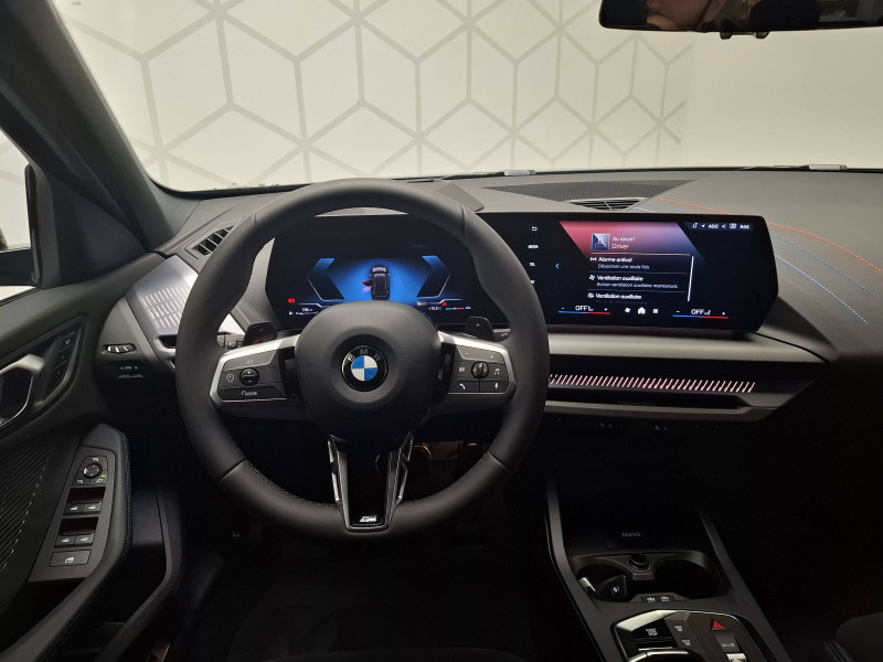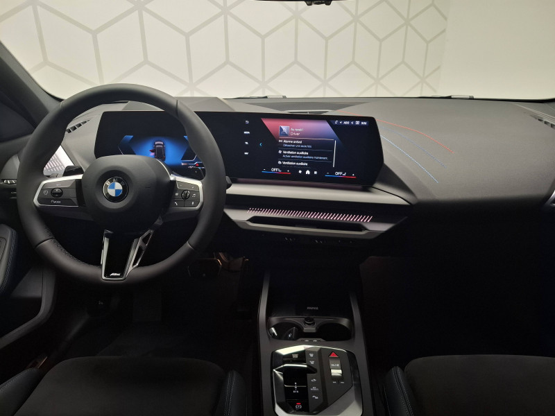 2 porte-gobelets sur la console centrale / 2 ports USB Type C dans la console centrale + 2 à l'AR / 3ème feu stop à LED sur la lunette AR / Accoudoir central AV avec compartiment de rangement / Active Guard - Avertissement de sortie de voie - Avertissement de collision frontale avec intervention sur les freins - Avertissement de virage à gauche (véhicule) avec fonction de freinage - Indicateur de limitation de vitesse - Assistant d'évitement / Airbags de tête AV et aux places latérales AR / Alarme antivol / Appel d'Urgence Intelligent (durée de vie de la voiture) Appel automatique vers le centre d'assistance BMW en cas d'accident. Touche SOS pour Appel d'Urgence manuel. Les données importantes sont automatiquement transmises aux secours : identification et localisation de la voiture, nombre de passagers à bord, statuts des airbags. Ce service utilise la carte SIM montée d'usine et ne requiert pas l'utilisation du smartphone. / Appuis-tête et ceintures de sécurité 3 points à toutes les places / BMW Curved Display / BMW Intelligent Personal Assistant / BMW Live Cockpit Navigation Plus / BMW "My Modes" (Personal/ Efficient/ Sport) / BMW xDrive - Système 4 roues motrices à gestion intelligente - Roues AV toujours motrices, puissance envoyée aussi aux roues AR si perte de motricitéà l'AV - Distribution variable de la puissance et du couple entre les roues AV/AR ajustée en temps réel / Boîte de vitesses automatique avec palettes à double embrayage DKG7 à 7 rapports / Calandre avec encadrement en chrome et barreaux verticaux / diagonaux / Capteurs d'impact - Activation de l'airbag, des feux de détresse, de l'éclairage intérieur - Déverrouillage des portes et légère ouverture des vitres / Ciel de pavillon M Anthracite / Compartiment à bagages : 2 crochets de sac, filet sur panneau droit / Contrôle de stabilité dynamique (DSC) avec dotation élargie - Assistant de démarrage en côte - Assistant dynamique de motricité (DTC) / Désignation du modèle à droite du hayon / Détecteur d'accident (crash sensor) - Allume les feux de détresse - Déverouillage des portes / Détecteur de pluie et allumage automatique des projecteurs / Déverrouillage électrique du coffre via la volet de coffre ou la clé radiocommandée / Driving Assistant - Avertisseur de franchissement de ligne (>70km/h avec vibrations dans le volant) - Avertisseur d'angle mort (>20km/h avec voyant d'alerte) - Avertisseur de risque de collision AV (>15km/h, préconditionnment du freinage >50km/h, assistance au freinage) - Avertisseur de risque de collision AR (déclenchement automatique des warning) - Avertisseur de trafic transversal AR (Avertisseur en cas de circulation transversale détectée derrière la voiture) / Eclairage de bienvenue autour du véhicule / Eclairage de plaque d'immatriculation à LED / Eclairage intérieur - Lampes de courtoisie - Eclairage habitacle AV et AR, y compris éclairage d'ambiance - Eclairage coffre à bagages sur le coté droit - Eclairage intérieur du compartiement de rangement dans l'accoudoir central - Lampes de lecture à l'AV et à l'AR - Eclairage plancher AV et AR / Eléments extérieurs M Sport / Eléments extérieurs (poignées de portes, baguettes de pare-chocs et de toit) couleur carrosserie / Eléments intérieurs M Sport / Fonction Start&Stop avec système prédictif via la navigation / Inserts décoratifs Aluminium Graphite illuminés / Jantes en alliage léger 18" style 975 M, à rayons doubles, bicolores Midnight Grey 8 J x 18 / pneus 225/45 R18.Comprennent écrous de roues antivol. Montage chaînes à neige impossible. / Kit de mobilité Bouteille de mastic pour pneumatiques - compresseur électrique 12 V (connexion à une prise 12V) / Mesure individuelle de pression des pneumatiques avec 3 niveaux / Moteur TwinPower Turbo essence 3 cylindres -Turbocompresseur - Valvetronic (modification de la profondeur d'ouverture des soupapes d'admission) - Double VANOS (système de distribution variable) - Technologie BMW High Precision Injection - Filtre à particules / Moteur TwinPower Turbo essence 4 cylindres -Turbocompresseur avec Dump Valve intégrée - Valvetronic - Double VANOS -Technologie BMW High Precision Injection - Conception allégée grace à l'aluminium - Double injection (collecteur d'admission et direct) et géométrie optimisée de la chambre de combustion / Parking Assistant - Caméra de recul - Manoeuvres de stationnemment automatique en créneau et en bataille - Freinage automatique (PDC actif) en marche AR - Assistant de marche AR/Auto-reverse / Personal eSIM Personal eSIM est la version électronique, intégrée au véhicule, de la carte SIM traditionnelle. Vous l'utilisez via un abonnement souscrit auprès d'un opérateur téléphonique et transformez ainsi votre BMW en périphérique mobile supplémentaire : - La BMW sera ajoutée au contrat du téléphone mobile du client en tant qu'appareil supplémentaire - Connectivité 5G - Les appels téléphoniques ou les connexions de données ne nécessitent pas la présence physique du téléphone portable privé / Prise 12 V dans la console centrale / Régulateur de vitesse avec fonction de freinage dans les descentes / Régulateur de vitesse avec fonction de freinage et limiteur de vitesse / Rétroviseurs extérieurs couleur carrosserie avec rappels de clignotants intégrés / Sellerie Alcantara / Similicuir Veganza Schwarz avec surpiqûres bleues / Services Après-vente connectés BMW Teleservices (durée de vie de la voiture) / Shadow Line M brillant Entourage des vitres latérales, les baguettes de bas de glace, les montants centraux ainsi que les pourtours, pieds et triangles des rétroviseurs extérieurs en noir brillant / Sorties d'échappement non visibles / Suspension Adaptive M / Système de détection de somnolence / Système Hi-Fi 6 HP / Tapis de sol anthracite / Teinte de carrosserie unie / Triangle de présignalisation avec kit de premiers secours / Volant M gainé cuir (ave