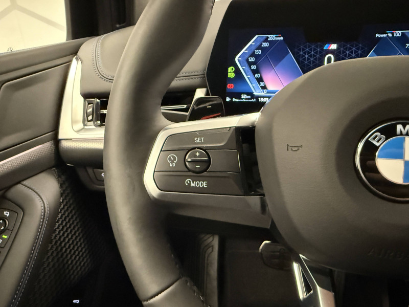 2 porte-gobelets sur la console centrale / 3ème feu stop LED intégré au spoiler AR / 5 places / Accoudoir central AV avec panneau de commande intégré / Active Guard Avertissement de franchissement de ligne avec impulsion sur la direction. Avertisseur de collision frontale avec intervention de freinage. Avertisseur de présence d'un véhicule lors d'un changement de direction vers la gauche avec action sur les freins. Avertisseur d'intersection. Avertisseur présence piéton/cycliste lors d'un virage en intersection. Assistance de limitation de vitesse avec informations de limite de vitesse, Assistance d'évitement en cas de risque de collision frontale / Aides au stationnement Parking Assistant Plus Fonctionnalités suivantes en plus du Park Assistant: Surround View, Remote 3D View, Drive Recorder, Remote Theft Recorder / Airbag entre les deux sièges AV en cas de collision latérale / Airbags de tête AV et aux places latérales AR / Alarme antivol / Appel d'Urgence Intelligent (durée de vie de la voiture) / BMW Digital BMW Maps, RTTI sur itinéraire, Apple CarPlay, Android Auto, BMW Intelligent Personal Assistant) / BMW EfficientDynamics Système de récupération de l'énergie au freinage, Fonction d'arrêt et de redémarrage automatique du moteur, Direction à assistance électrique Servotronic (assistance variable selon la vitesse) / BMW Live Cockpit Navigation Plus avec Écran BMW Curved Display / Boîte de vitesses automatique 7 rapports avec palettes au volant / Buse de lave-glace pour caméra de recul / Capacité du reservoir augmentée / Capteur d'impact (Activation de l'airbag, des feux de détresse, de l'éclairage intérieur, Déverrouillage des portes, Activation de la borne batterie de sécurité) / Carte SIM 4G LTE pour les Services ConnectedDrive / Ceintures de sécurité 3 points pour toutes les places / Ciel de pavillon M Anthracite / Clés radiocommandées à mémorisation automatique des réglages "Personal Profile" / Clignotants LED intégrés aux feux de jour / Commande électrique du hayon de coffre / Console centrale avec insert noir brillant / Contour de vitres noir mat / Contrôle de stabilité dynamique (DSC) avec dotation élargie Contrôle de freinage en courbe (CBC), Contrôle automatique de la stabilité (ASC), Contrôle dynamique des freins (DBC), Stabilisation de remorque, Assistant dynamique de motricité (DTC), Freinage de séchage, Assistant de démarrage en côte / Désignation du modèle à droite du hayon / Eclairage de bienvenue autour du véhicule / Eclairage de plaque d'immatriculation à LED / Ecrous de roues antivol / Eléments intérieur M / Feux AR à LED intégrant les clignotants / Feux de sortie de porte AV (porte ouverte) / Fixations ISOFIX / i-Size pour le siège passager AV et les deux sièges AR / Fonction cargo : Réglage de l'inclinaison de la banquette AR à 12 degrés (volume de chargement supplémentaire d' environ 85-100 litres) / Frein de parking électromécanique avec fonction "Automatic Hold" / Grilles de calandre cerclées de chrome avec barreaux verticaux noirs / Hotspot Wi-Fi / Hybridation légère (48V) / Inserts décoratifs Aluminium M Hexacube clair / Jantes en alliage léger 17" style 834 bicolores à rayons doubles 7 J x 17 pneus 205/60 R 17. Comprend écrous de roues antivol / Kit de mobilité Plus - Bouteille avec liquide anti-crevaison - Compresseur avec alimentation autonome via batterie rechargeable - Système se fixant au centre de la jante avec maintient de pression automatique du pneu crevé durant la conduite - Simple d'utilisation et réduction du temps passé sur le lieu de la panne / Kit Eclairage Lampes de courtoisie, Eclairage intérieur de l'accoudoir central, Eclairage habitacle AV et AR, y compris éclairage d'ambiance avec 9 couleurs au choix, Eclairage plancher AV et AR, Eclairage du miroir de courtoisie, Lampes de lecture centrales, Eclairage coffre à bagages sur un côté / Kit rangement - bac de rangement dans les portes AV et AR avec porte-bouteille - compartiment sous la planche de bord côté conducteur - compartiment de rangement central - compartiment de rangement avec couvercle rabattable sous l'accoudoir central AV - crochets de vêtements AR / Lève-vitres AV/AR électriques avec commande par impulsion et sécurité enfants / Mesure individuelle de pression des pneumatiques / Modes de conduite "My Mode" avec "Personal", "Efficient", "Sport", "Relax" & "Expressive / Moteur TwinPower Turbo essence 3 cylindres - Turbocompresseur - Valvetronic (modification de la profondeur d'ouverture des soupapes d'admission) - Double VANOS (système de distribution variable) - Injection haute pression - Filtre à particules / Norme GSR 2 (General Safety Regulation) / Notice d'utilisation de la voiture intégrée et carnet d'entretien électronique avec BMW Service History / Ordinateur de bord avec Check-Control et indicateur de température extérieure / Pack Aérodynamique M / Pare-choc AR avec inserts chromés en L / Pare-choc AV avec air curtains en noir mat / Personal eSIM Personal eSIM est la version électronique, intégrée au véhicule, de la carte SIM traditionnelle. Vous l'utilisez via un abonnement souscrit auprès d'un opérateur téléphonique et transformez ainsi votre BMW en périphérique mobile supplémentaire : - Connectivité en 5G - Meilleure qualité de connexion grâce aux antennes de la voiture - Connexion Hotspot Wi-Fi avec la possibilité de connecter jusqu'à 10 appareils (ex : tablette numérique, smartphone, ordinateur, ...) / Poignées de portes affleurantes / Ports USB Type C pour la recharge à l'AV (x2) et recharge à l'AR (x2) / Prises de courant 12V dans la console centrale AV et dans le coffre / Projecteurs LED (Feux de route et feux de croisement à technologie LED) / Rails de toit Shadow M Line brillant / Régulateur de vitesse avec fonction de freinage et limiteur de vitesse / Rétroviseurs extérieurs couleur carrosserie et chauffants avec rappels de clignotan