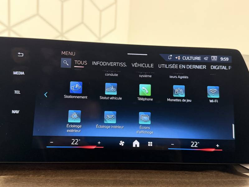 technologie de réseau local sans fil / caméra à l'arrière du véhicule / rétroviseur interieur electrochrome / Dispositif d'éclairage de lumière blanche à l'avant d'un véhicule qui s'allume automatiquement lorsque le véhicule se déplace vers l'avant afin d'accroître la visibilité du véhicule dans des conditions de lumière du jour. / dimension des jantes / appareil pouvant recevoir une carte sim et communiquant via bluetooth / Sieges arrières rabattable / materiau des jantes