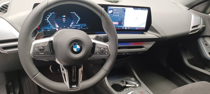 2 porte-gobelets sur la console centrale / 2 ports USB Type C dans la console centrale / 3ème feu stop à LED sur la lunette AR / ABS - Système anti blocage des roues Maintient le pouvoir directionnel du véhicule indépendamment de l'état de la chaussée. Evite le blocage des roues en régulant la pression de freinage / Accoudoir central AV avec compartiment de rangement / Active Guard - Avertissement de sortie de voie - Avertissement de collision frontale avec intervention sur les freins - Avertissement de virage à gauche (véhicule) avec fonction de freinage - Indicateur de limitation de vitesse - Assistant d'évitement / Airbags de tête AV et aux places latérales AR / Alarme antivol Surveillance des portes, coffre et capot moteur, protection de l'habitacle, détecteur de soulèvement et sirène. / Appel d'Urgence Intelligent (durée de vie de la voiture) Appel automatique vers le centre d'assistance BMW en cas d'accident. Touche SOS pour Appel d'Urgence manuel. Les données importantes sont automatiquement transmises aux secours : identification et localisation de la voiture, nombre de passagers à bord, statuts des airbags. Ce service utilise la carte SIM montée d'usine et ne requiert pas l'utilisation du smartphone. / Appuis-tête et ceintures de sécurité 3 points à toutes les places / Banquette AR rabattable 40/20/40 - Sièges rabattables en 40/20/40 - Trappe à ski - Accoudoir central AR - 2 porte-gobelets dans l'accoudoir / BMW Intelligent Personal Assistant / BMW Live Cockpit Navigation Plus avec Écran BMW Curved Display Nouveau système d'exploitation BMW Operating System 9 avec widgets variables configurables qui affichent des informations en temps réel, Remote Software Upgrade : mise à jour du logiciel de la BMW à distance, Connectivité 4G LTE, Mise à jour pour les données de carte de navigation Over the Air (OtA), BMW Maps : nouveau système de navigation, simplification de la recherche, calcul plus rapide, navigation apprenante. / BMW My Modes (Personnel, Efficient, Sport) / Boîte de vitesses automatique avec palettes à double embrayage DKG7 à 7 rapports - Fonction arrêt / redémarrage automatique Start/Stop, - Sélecteur mécanique, - Affichage du rapport engagé sur le combiné d'instrumentation, - Palettes au volant, - Passage de rapport en mode manuel. / Calandre avec encadrement en chrome et barreaux verticaux / diagonaux / Capteurs d'impact Activation de l'airbag, des feux de détresse, de l'éclairage intérieur.Double VANOS (système de distribution variable) - Déverrouillage des portes et légère ouverture des vitres / Ciel de pavillon M Anthracite / Compartiment à bagages : 2 crochets de sac, filet sur panneau droit / Contrôle de stabilité dynamique (DSC) avec dotation élargie - Assistant de démarrage en côte - Assistant dynamique de motricité (DTC) / Désignation du modèle sur le hayon à droite / Détecteur d'accident (crash sensor) - Allume les feux de détresse - Déverouillage des portes / Détecteur de pluie et allumage automatique des projecteurs / Déverrouillage électrique du coffre via la volet de coffre ou la clé radiocommandée / Driving Assistant - Avertisseur de franchissement de ligne (>70km/h avec vibrations dans le volant) - Avertisseur d'angle mort (>20km/h avec voyant d'alerte) - Avertisseur de risque de collision AV (>15km/h, préconditionnment du freinage >50km/h, assistance au freinage) - Avertisseur de risque de collision AR (déclenchement automatique des warning) - Avertisseur de trafic transversal AR (Avertisseur en cas de circulation transversale détectée derrière la voiture) / Eclairage de bienvenue autour du véhicule / Eclairage de plaque d'immatriculation à LED / Eclairage intérieur - Lampes de courtoisie.Eclairage habitacle AV et AR, y compris éclairage d'ambiance.Eclairage coffre à bagages sur le coté droit.Eclairage intérieur du compartiement de rangement dans l'accoudoir central.Lampes de lecture à l'AV et à l'AR.Eclairage plancher AV et AR . / Eléments extérieurs M Sport / Eléments extérieurs (poignées de portes, baguettes de pare-chocs et de toit) couleur carrosserie / Eléments intérieurs M Sport / Fonction Start&Stop avec système prédictif via la navigation / Inserts décoratifs M Aluminium mat "Hexacube" illuminés / Jantes en alliage léger 18" style 975 M, à rayons doubles, bicolores Midnight Grey 8 J x 18 / pneus 225/45 R18.Comprennent écrous de roues antivol. Montage chaînes à neige impossible. / Kit de mobilité BMW Bouteille de mastic pour pneumatiques - compresseur électrique 12 V (connexion à une prise 12V) à gauche dans le compartiment à bagages / Mesure individuelle de pression des pneumatiques avec 3 niveaux / Parking Assistant - Caméra de recul - Manoeuvres de stationnemment automatique en créneau et en bataille - Freinage automatique (PDC actif) en marche AR - Assistant de marche AR/Auto-reverse / Personal eSIM Personal eSIM est la version électronique, intégrée au véhicule, de la carte SIM traditionnelle. Vous l'utilisez via un abonnement souscrit auprès d'un opérateur téléphonique et transformez ainsi votre BMW en périphérique mobile supplémentaire : - Connectivité en 5G - Meilleure qualité de connexion grâce aux antennes de la voiture - Connexion Hotspot Wi-Fi avec la possibilité de connecter jusqu'à 10 appareils (ex : tablette numérique, smartphone, ordinateur, ...) / Prise 12 V dans la console centrale / Régulateur de vitesse avec fonction de freinage en descente / Régulateur de vitesse avec fonction de freinage et limiteur de vitesse / Rétroviseurs extérieurs avec rappels de clignotants intégrés / Rétroviseurs extérieurs couleur carrosserie / Sellerie Alcantara / Similicuir Veganza Schwarz avec surpiqûres bleues / Services Après-vente connectés BMW TeleServices (durée de vie de la voiture) Appel Automatique Appel Manuel Appel "BMW Assistance Teleservice Battery Guard Appel Hotline / Shadow Line M brillant Entourage 