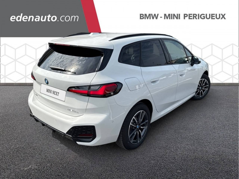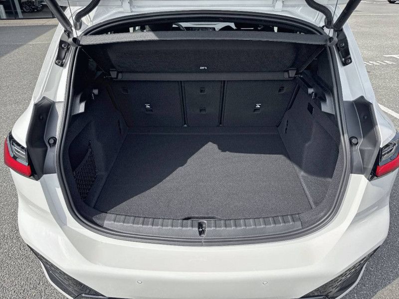 2 porte-gobelets sur la console centrale / 3ème feu stop LED intégré au spoiler AR / 5 places / Accoudoir central AV avec panneau de commande intégré / Active Guard Avertissement de franchissement de ligne avec impulsion sur la direction.Avertisseur de collision frontale avec intervention de freinage.Avertisseur de présence d'un véhicule lors d'un changement de direction vers la gauche avec action sur les freins.Avertisseur d'intersection.Avertisseur présence piéton/cycliste lors d'un virage en intersection.Assistance de limitation de vitesse avec informations de limite de vitesse, Assistance d'évitement en cas de risque de collision frontale / Airbag entre les deux sièges AV en cas de collision latérale / Airbags de tête AV et aux places latérales AR / Alarme antivol / Appel d'Urgence Intelligent (durée de vie de la voiture) / Avertisseur sonore pour piétons / Badges BMW extérieurs cerclés de bleu / BMW Digital BMW Maps, RTTI sur itinéraire, Apple CarPlay, Android Auto, BMW Intelligent Personal Assistant) / BMW EfficientDynamics Système de récupération de l'énergie au freinage, Fonction d'arrêt et de redémarrage automatique du moteur, Direction à assistance électrique Servotronic (assistance variable selon la vitesse) / BMW Live Cockpit Navigation Plus avec Écran BMW Curved Display / Boîte de vitesses automatique 7 rapports avec palettes au volant / Buse de lave-glace pour caméra de recul / Câble de recharge Professionnel Mode 3 (T2-T2) pour la recharge publique - 5 mètres / Capteur d'impact (Activation de l'airbag, des feux de détresse, de l'éclairage intérieur, Déverrouillage des portes, Activation de la borne batterie de sécurité) / Carte SIM 4G LTE pour les Services ConnectedDrive / Ceintures de sécurité 3 points pour toutes les places / Chargeur courant alternatif AC 11 kW / Ciel de pavillon M Anthracite / Clés radiocommandées à mémorisation automatique des réglages "Personal Profile" / Clignotants LED intégrés aux feux de jour / Commande électrique du hayon de coffre / Compatible Plug&Charge sur certaines bornes publiques / Console centrale avec insert noir brillant / Contour de vitres noir mat / Contrôle de stabilité dynamique (DSC) avec dotation élargie Contrôle de freinage en courbe (CBC), Contrôle automatique de la stabilité (ASC), Contrôle dynamique des freins (DBC), Stabilisation de remorque, Assistant dynamique de motricité (DTC), Freinage de séchage, Assistant de démarrage en côte / Désignation du modèle à droite du hayon / Eclairage de bienvenue autour du véhicule / Eclairage de plaque d'immatriculation à LED / Ecrous de roues antivol / Eléments intérieur M / Feux AR à LED intégrant les clignotants / Feux de sortie de porte AV (porte ouverte) / Fixations ISOFIX / i-Size pour le siège passager AV et les deux sièges AR / Fonction cargo : Réglage de l'inclinaison de la banquette AR à 12 degrés (volume de chargement supplémentaire d' environ 85-100 litres) / Frein de parking électromécanique avec fonction "Automatic Hold" / Grilles de calandre cerclées de chrome avec barreaux verticaux noirs / Hotspot Wi-Fi / Inserts décoratifs Aluminium M Hexacube clair / Jantes en alliage léger 17" style 834 bicolores à rayons doubles 7 J x 17 pneus 205/60 R 17. Comprend écrous de roues antivol. / Kit de mobilité BMW Bouteille de mastic pour pneumatiques - compresseur électrique 12 V (connexion à une prise 12V) / Kit Eclairage Lampes de courtoisie, Eclairage intérieur de l'accoudoir central, Eclairage habitacle AV et AR, y compris éclairage d'ambiance avec 9 couleurs au choix, Eclairage plancher AV et AR, Eclairage du miroir de courtoisie, Lampes de lecture centrales, Eclairage coffre à bagages sur un côté / Kit rangement - bac de rangement dans les portes AV et AR avec porte-bouteille - compartiment sous la planche de bord côté conducteur - compartiment de rangement central - compartiment de rangement avec couvercle rabattable sous l'accoudoir central AV - crochets de vêtements AR / Lève-vitres AV/AR électriques avec commande par impulsion et sécurité enfants / Mesure individuelle de pression des pneumatiques / Modes de conduite "My Mode" avec "Personal", "Efficient", "Sport", "Relax" & "Expressive / Modes de conduite "Sport Plus" et "Quickshift" / Norme GSR 2 (General Safety Regulation) / Notice d'utilisation de la voiture intégrée et carnet d'entretien électronique avec BMW Service History / Ordinateur de bord avec Check-Control et indicateur de température extérieure / Pack Aérodynamique M / Pare-choc AR avec inserts chromés en L / Pare-choc AV avec air curtains en noir mat / Parking Assistant - Système de manoeuvres de stationnemment en créneau et en bataille automatique - Caméra de recul - Radars de recul AV & AR (PDC) - Assistant de marche AR "Auto-Reverse" / Personal eSIM Personal eSIM est la version électronique, intégrée au véhicule, de la carte SIM traditionnelle. Vous l'utilisez via un abonnement souscrit auprès d'un opérateur téléphonique et transformez ainsi votre BMW en périphérique mobile supplémentaire : - Connectivité en 5G - Meilleure qualité de connexion grâce aux antennes de la voiture - Connexion Hotspot Wi-Fi avec la possibilité de connecter jusqu'à 10 appareils (ex : tablette numérique, smartphone, ordinateur, ...) / Poignées de portes affleurantes / Ports USB Type C pour la recharge à l'AV (x2) et recharge à l'AR (x2) / Prises de courant 12V dans la console centrale AV et dans le coffre / Projecteurs LED (Feux de route et feux de croisement à technologie LED) / Rails de toit Shadow M Line brillant / Régulateur de vitesse avec fonction de freinage et limiteur de vitesse / Rétroviseurs extérieurs couleur carrosserie et chauffants avec rappels de clignotants intégrés / Sellerie Alcantara / Veganza "Schwarz" avec surpiqûres contrastantes bleues / Services Après-vente connectés BMW TeleServices (durée de vie de la voiture) Appel Automati