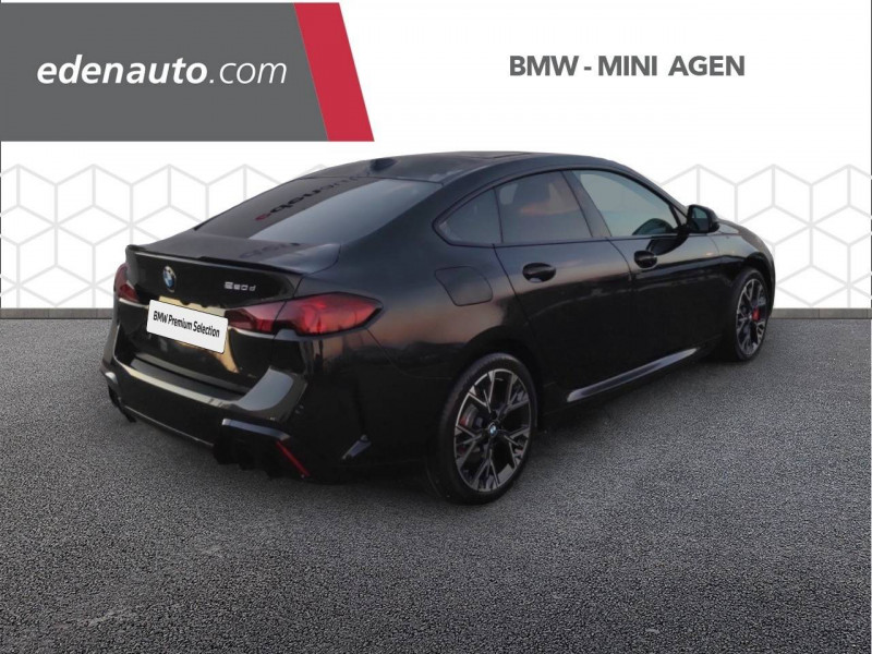 2 porte-gobelets sur la console centrale / 2 ports USB Type C dans la console centrale / 3ème feu stop à LED sur la lunette AR / ABS - Système anti blocage des roues Maintient le pouvoir directionnel du véhicule indépendamment de l'état de la chaussée. Evite le blocage des roues en régulant la pression de freinage / Accoudoir central AV avec compartiment de rangement / Active Guard - Avertissement de sortie de voie - Avertissement de collision frontale avec intervention sur les freins - Avertissement de virage à gauche (véhicule) avec fonction de freinage - Indicateur de limitation de vitesse - Assistant d'évitement / Aides à la conduite Driving Assistant - Avertisseur de franchissement de ligne (>70km/h avec vibrations dans le volant) - Avertisseur d'angle mort (>20km/h avec voyant d'alerte) - Avertisseur de risque de collision AV (>15km/h, préconditionnment du freinage >50km/h, assistance au freinage) - Avertisseur de risque de collision AR (déclenchement automatique des warning) - Avertisseur de trafic transversal AR (Avertisseur en cas de circulation transversale détectée derrière la voiture) / Aides au stationnement Parking Assistant - Caméra de recul - Manoeuvres de stationnemment automatique en créneau et en bataille - Freinage automatique (PDC actif) en marche AR - Assistant de marche AR/Auto-reverse / Airbags de tête AV et aux places latérales AR / Alarme antivol Surveillance des portes, coffre et capot moteur, protection de l'habitacle, détecteur de soulèvement et sirène. / Appel d'Urgence Intelligent (durée de vie de la voiture) Appel automatique vers le centre d'assistance BMW en cas d'accident. Touche SOS pour Appel d'Urgence manuel. Les données importantes sont automatiquement transmises aux secours : identification et localisation de la voiture, nombre de passagers à bord, statuts des airbags. Ce service utilise la carte SIM montée d'usine et ne requiert pas l'utilisation du smartphone. / Appuis-tête et ceintures de sécurité 3 points à toutes les places / Banquette AR rabattable 40/20/40 - Sièges rabattables en 40/20/40 - Trappe à ski - Accoudoir central AR - 2 porte-gobelets dans l'accoudoir / BMW Intelligent Personal Assistant / BMW Live Cockpit Navigation Plus / BMW My Modes (Personnel, Efficient, Sport) / Boîte de vitesses automatique avec palettes à double embrayage DKG7 à 7 rapports - Fonction arrêt / redémarrage automatique Start/Stop, - Sélecteur mécanique, - Affichage du rapport engagé sur le combiné d'instrumentation, - Palettes au volant, - Passage de rapport en mode manuel. / Calandre avec encadrement en chrome et barreaux verticaux / diagonaux / Capteurs d'impact - Activation de l'airbag, des feux de détresse, de l'éclairage intérieur - Déverrouillage des portes et légère ouverture des vitres / Ciel de pavillon M Anthracite / Compartiment à bagages : 2 crochets de sac, filet sur panneau droit / Contrôle de stabilité dynamique (DSC) avec dotation élargie - Assistant de démarrage en côte - Assistant dynamique de motricité (DTC) / Désignation du modèle sur le hayon à droite / Détecteur d'accident (crash sensor) - Allume les feux de détresse - Déverouillage des portes / Détecteur de pluie et allumage automatique des projecteurs / Déverrouillage électrique du coffre via la volet de coffre ou la clé radiocommandée / Eclairage de bienvenue autour du véhicule / Eclairage de plaque d'immatriculation à LED / Eclairage intérieur - Lampes de courtoisie.Eclairage habitacle AV et AR, y compris éclairage d'ambiance.Eclairage coffre à bagages sur le coté droit.Eclairage intérieur du compartiement de rangement dans l'accoudoir central.Lampes de lecture à l'AV et à l'AR.Eclairage plancher AV et AR . / Eléments extérieurs M Sport / Eléments extérieurs (poignées de portes, baguettes de pare-chocs et de toit) couleur carrosserie / Eléments intérieurs M Sport / Fonction Start&Stop avec système prédictif via la navigation / Inserts décoratifs M Aluminium mat "Hexacube" illuminés / Jantes en alliage léger 18" style 975 M, à rayons doubles, bicolores Midnight Grey 8 J x 18 / pneus 225/45 R18.Comprennent écrous de roues antivol. Montage chaînes à neige impossible. / Kit de mobilité BMW / Lève-vitres AV / Mesure individuelle de pression des pneumatiques avec 3 niveaux / Moteur TwinPower Turbo diesel 4 cylindres -Turbocompresseur - Technologie BMW High Precision Injection - Filtre à particule et catalyseur à oxydation - Réduction catalytique via injection d'AdBlue (SCR) / Personal eSIM Personal eSIM est la version électronique, intégrée au véhicule, de la carte SIM traditionnelle. Vous l'utilisez via un abonnement souscrit auprès d'un opérateur téléphonique et transformez ainsi votre BMW en périphérique mobile supplémentaire : - Connectivité en 5G - Meilleure qualité de connexion grâce aux antennes de la voiture - Connexion Hotspot Wi-Fi avec la possibilité de connecter jusqu'à 10 appareils (ex : tablette numérique, smartphone, ordinateur, ...) / Prise 12 V dans la console centrale / Régulateur de vitesse avec fonction de freinage en descente / Régulateur de vitesse avec fonction de freinage et limiteur de vitesse / Rétroviseurs extérieurs avec rappels de clignotants intégrés / Rétroviseurs extérieurs couleur carrosserie / Sellerie Alcantara / Similicuir Veganza Schwarz avec surpiqûres bleues / Services Après-vente connectés BMW TeleServices (durée de vie de la voiture) - Appel Automatique - Appel Manuel - Appel "BMW Assistance - Teleservice Battery Guard - Appel Hotline / Shadow Line M brillant Entourage des vitres latérales, les baguettes de bas de glace, les montants centraux ainsi que les pourtours, pieds et triangles des rétroviseurs extérieurs en noir brillant / Sièges AV chauffants Chauffage de l'assise et du dossier, parties centrales et latérales. Trois niveaux de réglages. / Sièges AV Sport Sièges au design plus sportif avec joues de sièges plus