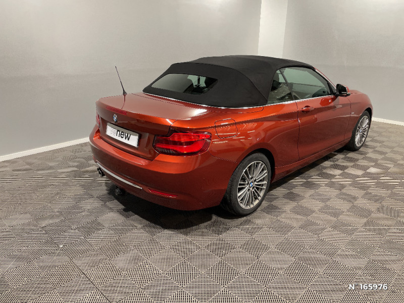 Désignation du modèle / Prise 12V dans la console centrale / Seuils de portes avec inscription BMW / Contrôle dynamique de stabilité DSC avec fonctionnalités étendues / Climatisation automatique 1 zone avec filtre microporeux et fonction de recyclage d'air / Boîte de vitesses automatique 8 rapports / Sélecteur de mode de conduite avec mode ECO PRO / 3ème feu stop / Appel d'Urgence Intelligent (à vie) / Services Après-vente connectés BMW TeleServices (à vie) / Teinte de carrosserie unie (Schwarz) / Mesure individuelle de pression des pneumatiques avec 3 niveaux d'alerte / Rétroviseurs extérieurs rabattables électriquement, rétroviseurs intérieur et extérieur gauche électrochromes / Pack Simplicity / Appuis-tête et ceintures de sécurité 3 points à toutes les places / Chrome Line extérieur / Jantes en alliage léger 17" (43 cm) style 724 à double batons, Ferric Grey 7,5Jx17 / pneumatiques 225/45 R17 / Services ConnectedDrive "BMW Online" (3 ans) / Clignotants avec répétiteurs latéraux intégrés dans les rétroviseurs extérieurs / Kit rangement / Verrouillage centralisé des portes, du coffre et de la trappe à carburant / Kit Eclairage / Filet anti-remous / Feux de stop bi-intensité / Contrôle de freinage en courbe CBC / Ecrous de roues antivol / Eclairage d'accompagnement (extention retardée des projecteurs) / Déverrouillage électrique du coffre via la volet de coffre ou la clé radiocommandée / Porte-gobelets sur la console centrale / Lève-vitres AV électriques, avec commande par impulsion et protection anti-coincement / Touches multifonctions sur le volant / Détecteur de pluie et allumage automatique des projecteurs / Régulateur de vitesse avec fonction de freinage / Bouton de démarrage "Start/Stop" avec contour chromé / Triangle de présignalisation avec kit de premiers secours / Freins à disque ventilés AV / Verrouillage automatique des portes dès 15 km/h environ / BMW EfficientDynamics / Kit de mobilité BMW / Airbags de tête AV et AR avec voile de protection contre les débris de verre / Interface Bluetooth et port USB / Système de manoeuvres automatiques "Park Assist" / Vide-poches ergonomiques dans les portes AV / Ordinateur de bord, Check-Control et indicateur de température extérieure / Navigation multimédia Business / Limiteur et régulateur de vitesse avec maintien de la vitesse en descente / Eclairage dans le coffre / Inserts décoratifs en Bois précieux Fineline 'Stream» soulignés de 'Pearl Chrome» / Ligne Luxury / Dossier de banquette AR rabattable avec trappe à ski élargie / Capote acoustique électrique, manoeuvre en 20 s. jusqu'à 50 km/h / Tapis de sol en velours / ABS, y compris assistant de freinage / Clés radiocommandées à mémorisation automatique des réglages "Personal Profile" / Direction Servotronic à assistance variable en fonction de la vitesse / Eléments extérieurs (poignées de portes, baguettes de pare-chocs et de toit) couleur carrosserie
