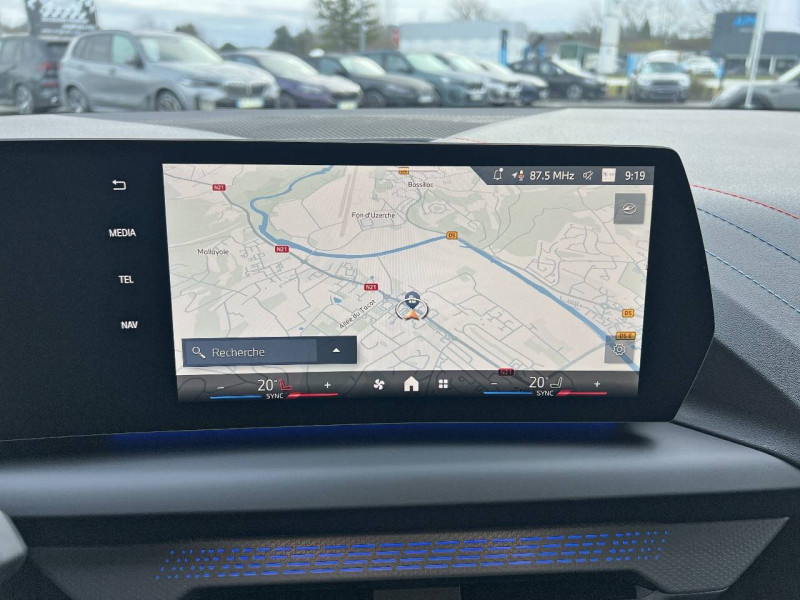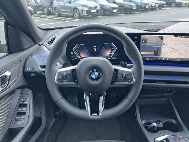 2 porte-gobelets sur la console centrale / 2 ports USB Type C dans la console centrale / 3ème feu stop à LED sur la lunette AR / ABS - Système anti blocage des roues Maintient le pouvoir directionnel du véhicule indépendamment de l'état de la chaussée. Evite le blocage des roues en régulant la pression de freinage / Accoudoir central AV avec compartiment de rangement / Active Guard - Avertissement de sortie de voie - Avertissement de collision frontale avec intervention sur les freins - Avertissement de virage à gauche (véhicule) avec fonction de freinage - Indicateur de limitation de vitesse - Assistant d'évitement / Aides à la conduite Driving Assistant - Avertisseur de franchissement de ligne (>70km/h avec vibrations dans le volant) - Avertisseur d'angle mort (>20km/h avec voyant d'alerte) - Avertisseur de risque de collision AV (>15km/h, préconditionnment du freinage >50km/h, assistance au freinage) - Avertisseur de risque de collision AR (déclenchement automatique des warning) - Avertisseur de trafic transversal AR (Avertisseur en cas de circulation transversale détectée derrière la voiture) / Aides au stationnement Parking Assistant - Caméra de recul - Manoeuvres de stationnemment automatique en créneau et en bataille - Freinage automatique (PDC actif) en marche AR - Assistant de marche AR/Auto-reverse / Airbags de tête AV et aux places latérales AR / Alarme antivol Surveillance des portes, coffre et capot moteur, protection de l'habitacle, détecteur de soulèvement et sirène. / Appel d'Urgence Intelligent (durée de vie de la voiture) Appel automatique vers le centre d'assistance BMW en cas d'accident. Touche SOS pour Appel d'Urgence manuel. Les données importantes sont automatiquement transmises aux secours : identification et localisation de la voiture, nombre de passagers à bord, statuts des airbags. Ce service utilise la carte SIM montée d'usine et ne requiert pas l'utilisation du smartphone. / Appuis-tête et ceintures de sécurité 3 points à toutes les places / Banquette AR rabattable 40/20/40 - Sièges rabattables en 40/20/40 - Trappe à ski - Accoudoir central AR - 2 porte-gobelets dans l'accoudoir / BMW Intelligent Personal Assistant / BMW Live Cockpit Navigation Plus / BMW My Modes (Personnel, Efficient, Sport) / Boîte de vitesses automatique avec palettes à double embrayage DKG7 à 7 rapports - Fonction arrêt / redémarrage automatique Start/Stop, - Sélecteur mécanique, - Affichage du rapport engagé sur le combiné d'instrumentation, - Palettes au volant, - Passage de rapport en mode manuel. / Calandre avec encadrement en chrome et barreaux verticaux / diagonaux / Capteurs d'impact - Activation de l'airbag, des feux de détresse, de l'éclairage intérieur - Déverrouillage des portes et légère ouverture des vitres / Ciel de pavillon M Anthracite / Compartiment à bagages : 2 crochets de sac, filet sur panneau droit / Contrôle de stabilité dynamique (DSC) avec dotation élargie - Assistant de démarrage en côte - Assistant dynamique de motricité (DTC) / Désignation du modèle sur le hayon à droite / Détecteur d'accident (crash sensor) - Allume les feux de détresse - Déverouillage des portes / Détecteur de pluie et allumage automatique des projecteurs / Déverrouillage électrique du coffre via la volet de coffre ou la clé radiocommandée / Eclairage de bienvenue autour du véhicule / Eclairage de plaque d'immatriculation à LED / Eclairage intérieur - Lampes de courtoisie.Eclairage habitacle AV et AR, y compris éclairage d'ambiance.Eclairage coffre à bagages sur le coté droit.Eclairage intérieur du compartiement de rangement dans l'accoudoir central.Lampes de lecture à l'AV et à l'AR.Eclairage plancher AV et AR . / Eléments extérieurs M Sport / Eléments extérieurs (poignées de portes, baguettes de pare-chocs et de toit) couleur carrosserie / Eléments intérieurs M Sport / Fonction Start&Stop avec système prédictif via la navigation / Inserts décoratifs M Aluminium mat "Hexacube" illuminés / Jantes en alliage léger 18" style 975 M, à rayons doubles, bicolores Midnight Grey 8 J x 18 / pneus 225/45 R18.Comprennent écrous de roues antivol. Montage chaînes à neige impossible. / Kit de mobilité BMW / Lève-vitres AV / Mesure individuelle de pression des pneumatiques avec 3 niveaux / Moteur TwinPower Turbo essence 3 cylindres -Turbocompresseur - Valvetronic (modification de la profondeur d'ouverture des soupapes d'admission) - Double VANOS (système de distribution variable) - Technologie BMW High Precision Injection - Filtre à particules / Personal eSIM Personal eSIM est la version électronique, intégrée au véhicule, de la carte SIM traditionnelle. Vous l'utilisez via un abonnement souscrit auprès d'un opérateur téléphonique et transformez ainsi votre BMW en périphérique mobile supplémentaire : - Connectivité en 5G - Meilleure qualité de connexion grâce aux antennes de la voiture - Connexion Hotspot Wi-Fi avec la possibilité de connecter jusqu'à 10 appareils (ex : tablette numérique, smartphone, ordinateur, ...) / Prise 12 V dans la console centrale / Régulateur de vitesse avec fonction de freinage en descente / Régulateur de vitesse avec fonction de freinage et limiteur de vitesse / Rétroviseurs extérieurs avec rappels de clignotants intégrés / Rétroviseurs extérieurs couleur carrosserie / Sellerie Alcantara / Similicuir Veganza Schwarz avec surpiqûres bleues / Services Après-vente connectés BMW TeleServices (durée de vie de la voiture) - Appel Automatique - Appel Manuel - Appel "BMW Assistance - Teleservice Battery Guard - Appel Hotline / Shadow Line M brillant Entourage des vitres latérales, les baguettes de bas de glace, les montants centraux ainsi que les pourtours, pieds et triangles des rétroviseurs extérieurs en noir brillant / Sièges AV chauffants Chauffage de l'assise et du dossier, parties centrales et latérales. Trois niveaux de réglages. / Sièges AV Sport Si