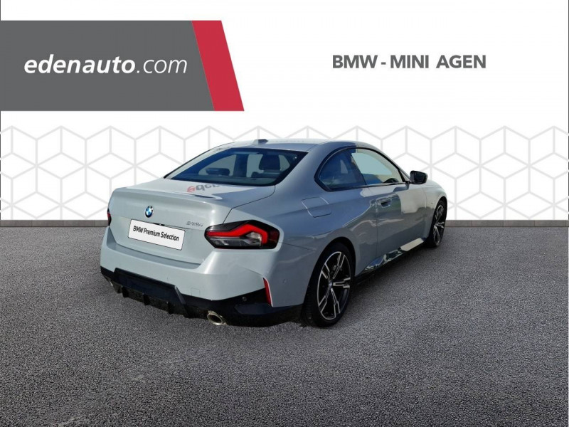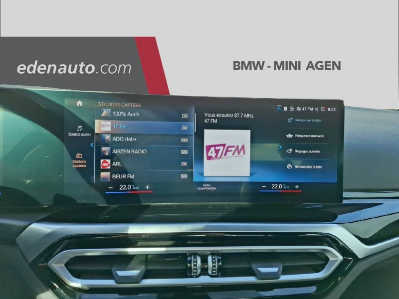ABS, y compris assistant de freinage / Active Guard Plus Avertissement de collision frontale avec intervention de freinage grâce à un radar et à une caméra (entre 5 km/h et 250 km/h) - Avertissement de chauvechement de ligne avec impulsion sur la direction - Assistance de limitation de vitesse avec informations de limite de vitesse / Appel d'Urgence Intelligent (durée de vie de la voiture) / BMW Curved Display / BMW Live Cockpit Navigation Plus / Boîte de vitesse automatique 8 rapports avec palettes au volant / Calandre à volets d'air pilotés / Capteur d'impact / Ciel de pavillon M Anthracite / Clignotants intégrés aux feux de jour / Connectivité téléphone Bluetooth avec interface USB / Contour de vitres Schwarz mat / Contrôle de stabilité dynamique (DSC) avec dotation élargie / Désactivation Airbag pour passager AV / Désignation du modèle sur la malle à droite / Eclairage d'ambiance Eclairage lumineux dynamique pour 4 applications (bienvenue, au revoir, portes ouvertes et appel téléphonique) dans 9 coloris différents du tableau de bord, des panneaux de portes et de la console centrale. Comprend également les liseuses arrière, l'éclairage du rangement de l'accoudoir central avant et poignées d'ouverture de porte (intérieur et extérieur) ainsi qu'un éclairage de bienvenue avec tapis de lumière / Eclairage de bienvenue / Eclairage de plaque d'immatriculation à LED / Eclairage intérieur Lampes de courtoises, Eclairage boîte à gants, intérieur de l'accoudoir central, Eclairage habitacle AV et AR, Eclairage plancher AV, Eclairage coffre à bagages / Ecrous de roues antivol / Feux AR à LED intégrant les clignotants / Feux de croisement et feux de route à technologie Bi-LED / Feux de route anti-éblouissement / Frein de parking électromécanique avec fonction "Automatic Hold" / Inserts décoratifs brillant "Schwarz" soulignés de chrome perlé / Jantes en alliage léger 18" style 848 M bicolores à rayons doubles avec pneumatiques mixtes 7,5Jx18 / pneus 225/45 R18, 8,5Jx18 / pneus 255/40 R18 / Kit de rangement - Bac de rangement dans les portes avant (une bouteille de 1L peut y prendre place) Contrôle Dynamique de la Stabiité DSC et Contrôle Dynamique de la Traction DTC - Prise 12 V dans la console centrale "Controller" iDrive avec touches de raccourci - Double prise USB Type C dans la console centrale arrière Détecteur de pluie et allumage automatique des projecteurs - Filets au dos des sièges avant et dans le coffre à bagages, / Mesure individuelle de pression des pneumatiques / Moteur TwinPower Turbo essence 4 cylindres / Pack Aérodynamique M / Pack Connected Pro / Park Assist / Prise de courant 12V dans la console centrale AV / Régulateur de vitesse avec fonction freinage en descente / Rétroviseur intérieur électrochrome / Rétroviseurs extérieurs à réglage électrique, chauffants et intégrant les clignotants latéraux / Sellerie Alcantara / Similicuir Sensatec "Schwarz" avec surpiqûres contrastantes Bleues / Services Après-vente connectés BMW TeleServices (durée de vie de la voiture) - Appel Automatique - Appel Manuel - Appel "BMW Assistance - Teleservice Battery Guard - Appel Hotline / Services ConnectedDrive (Apps véhicules) (3 ans) / Seuils de portes plastique avec monogramme BMW / Shadow Line M brillant Eléments en noir à haute brillance : - Panneaux de garnissage des montants B et C - Encadrement extérieur des vitres latérales - Pieds et triangles des rétroviseurs extérieurs - Rails de toit (Touring) / Sièges sport avec réglage en hauteur / Suspensions DirectDrive / Système de détection de somnolence / Tapis de sol en velours / Teinte de carrosserie unie (Alpinweiss) / Touches multifonctions sur le volant / Triangle de signalisation / Tuner DAB Inclus DAB+. Permet la réception de la radio numérique en plus de la radio analogique et offre une qualité sonore proche du CD. Des informations supplémentaires comme le titre et l'interprète sont transmises sous forme de texte. La Radio Numérique Terrestre est disponible à Paris, Marseille, Nice et Monaco, Lille, Lyon, Nantes, Rouen, Strasbourg et Toulouse. Les stations de radio numériques sont essentiellement des stations associatives, locales ou indépendantes