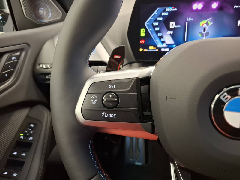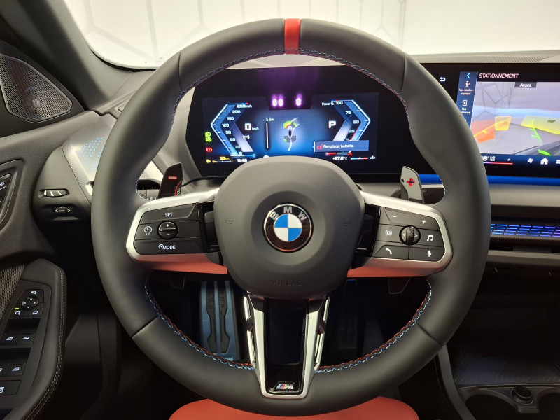 2 porte-gobelets sur la console centrale / 2 ports USB Type C dans la console centrale / 3ème feu stop à LED sur la lunette AR / ABS - Système anti blocage des roues Maintient le pouvoir directionnel du véhicule indépendamment de l'état de la chaussée. Evite le blocage des roues en régulant la pression de freinage / Accoudoir central AV avec compartiment de rangement / Active Guard - Avertissement de sortie de voie - Avertissement de collision frontale avec intervention sur les freins - Avertissement de virage à gauche (véhicule) avec fonction de freinage - Indicateur de limitation de vitesse - Assistant d'évitement / Airbags de tête AV et aux places latérales AR / Alarme antivol Surveillance des portes, coffre et capot moteur, protection de l'habitacle, détecteur de soulèvement et sirène. / Appel d'Urgence Intelligent (durée de vie de la voiture) Appel automatique vers le centre d'assistance BMW en cas d'accident. Touche SOS pour Appel d'Urgence manuel. Les données importantes sont automatiquement transmises aux secours : identification et localisation de la voiture, nombre de passagers à bord, statuts des airbags. Ce service utilise la carte SIM montée d'usine et ne requiert pas l'utilisation du smartphone. / Appuis-tête et ceintures de sécurité 3 points à toutes les places / Banquette AR rabattable 40/20/40 - Sièges rabattables en 40/20/40 - Trappe à ski - Accoudoir central AR - 2 porte-gobelets dans l'accoudoir / BMW Curved Display / BMW Intelligent Personal Assistant / BMW Live Cockpit Navigation Plus avec Écran BMW Curved Display Nouveau système d'exploitation BMW Operating System 9 avec widgets variables configurables qui affichent des informations en temps réel, Remote Software Upgrade : mise à jour du logiciel de la BMW à distance, Connectivité 4G LTE, Mise à jour pour les données de carte de navigation Over the Air (OtA), BMW Maps : nouveau système de navigation, simplification de la recherche, calcul plus rapide, navigation apprenante. / BMW My Modes (Personnel, Efficient, Sport) / BMW xDrive - Système 4 roues motrices à gestion intelligente - Roues AV toujours motrices, puissance envoyée aussi aux roues AR si perte de motricitéà l'AV - Distribution variable de la puissance et du couple entre les roues AV/AR ajustée en temps réel / Boîte de vitesses automatique avec palettes à double embrayage DKG7 à 7 rapports / Calandre M noire avec barreaux horizontaux / Capteurs d'impact Activation de l'airbag, des feux de détresse, de l'éclairage intérieur.Double VANOS (système de distribution variable) - Déverrouillage des portes et légère ouverture des vitres / Châssis M Technology Optimisation du châssis de la BMW M135 xDrive pour un comportement routier encore plus précis, dynamique et sportif: Amortisseurs AV plus rigides Supports rigides de barres anti-roulis AV et AR (aluminum VS plastique) Renforts du train AR pour plus de rigidité Géométrie spécifiques des trains roulants AV et AR / Ciel de pavillon M Anthracite / Compartiment à bagages : 2 crochets de sac, filet sur panneau droit / Contrôle de stabilité dynamique (DSC) avec dotation élargie - Assistant de démarrage en côte - Assistant dynamique de motricité (DTC) / Désignation du modèle sur le hayon à droite / Détecteur d'accident (crash sensor) - Allume les feux de détresse - Déverouillage des portes / Déverrouillage électrique du coffre via la volet de coffre ou la clé radiocommandée / Diffuseur AR en "Dark Shadow" avec 4 sorties d'échappement rondes de 90mm (2x2) / Driving Assistant - Avertisseur de franchissement de ligne (>70km/h avec vibrations dans le volant) - Avertisseur d'angle mort (>20km/h avec voyant d'alerte) - Avertisseur de risque de collision AV (>15km/h, préconditionnment du freinage >50km/h, assistance au freinage) - Avertisseur de risque de collision AR (déclenchement automatique des warning) - Avertisseur de trafic transversal AR (Avertisseur en cas de circulation transversale détectée derrière la voiture) / Eclairage de bienvenue autour du véhicule / Eclairage de plaque d'immatriculation à LED / Eclairage intérieur - Lampes de courtoisie.Eclairage habitacle AV et AR, y compris éclairage d'ambiance.Eclairage coffre à bagages sur le coté droit.Eclairage intérieur du compartiement de rangement dans l'accoudoir central.Lampes de lecture à l'AV et à l'AR.Eclairage plancher AV et AR . / Ecrous de roues antivol / Eléments extérieurs (poignées de portes, baguettes de pare-chocs et de toit) couleur carrosserie / Fonction Start&Stop avec système prédictif via la navigation / Freins M Sport bleus Les puissants freins M Sport se caractérisent par des étriers de freins AV à 4 pistons fixes, des disques de frein surdimensionnés à l'AV et à l'AR.Les 4 étriers reçoivent une peinture bleu et le logo M à l'AV. / Inserts décoratifs M Aluminium mat "Hexacube" illuminés / Jantes en alliage léger 18" style 975 M, à rayons doubles, bicolores Midnight Grey 8 J x 18 / pneus 225/45 R18.Comprennent écrous de roues antivol. Montage chaînes à neige impossible. / Kit de mobilité BMW Bouteille de mastic pour pneumatiques - compresseur électrique 12 V (connexion à une prise 12V) à gauche dans le compartiment à bagages / Mesure individuelle de pression des pneumatiques avec 3 niveaux / Moteur TwinPower Turbo essence 4 cylindres Turbocompresseur avec Dump Valve intégrée - Valvetronic - Double VANOS -Technologie BMW High Precision Injection - Conception allégée grace à l'aluminium - Double injection (collecteur d'admission et direct) et géométrie optimisée de la chambre de combustion / Parking Assistant - Caméra de recul - Manoeuvres de stationnemment automatique en créneau et en bataille - Freinage automatique (PDC actif) en marche AR - Assistant de marche AR/Auto-reverse / Personal eSIM Personal eSIM est la version électronique, intégrée au véhicule, de la carte SIM traditionnelle. Vous l'utilisez via un abonne