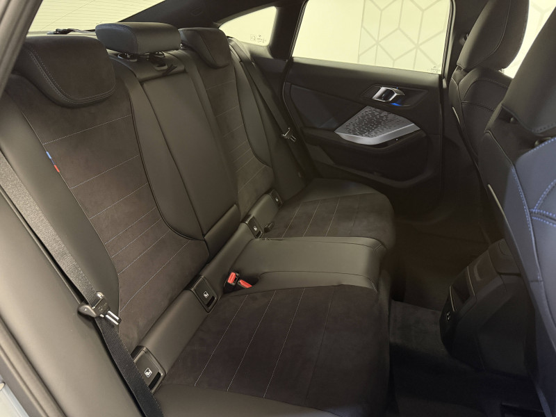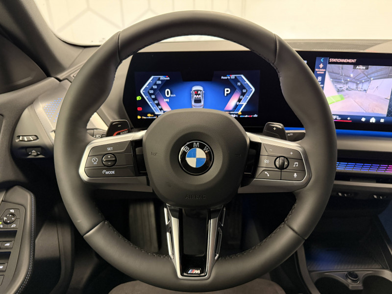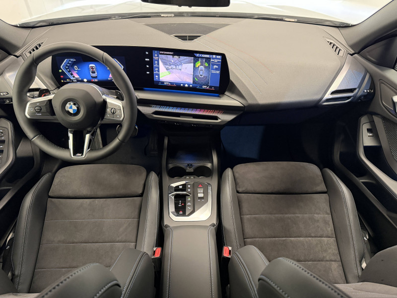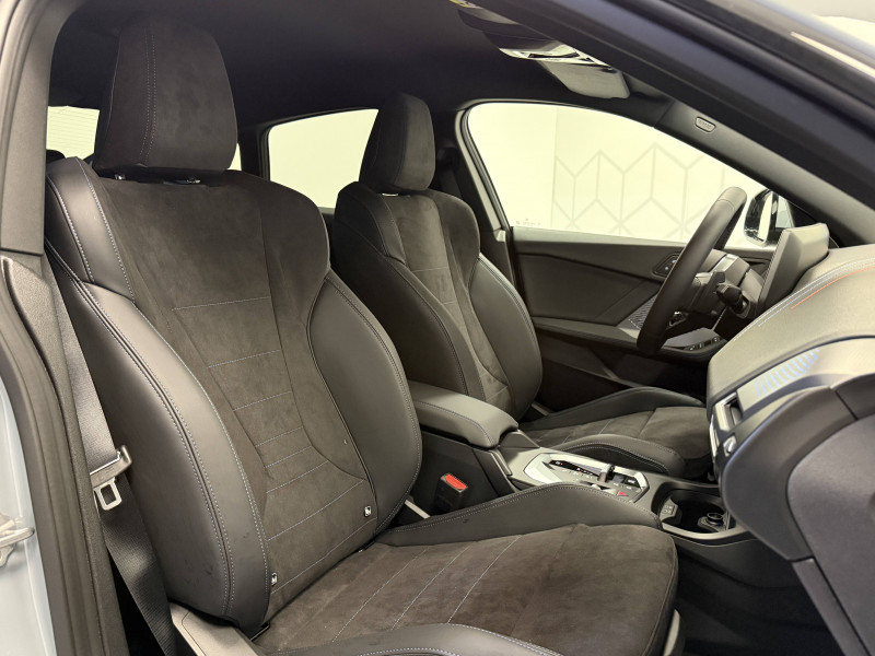 2 porte-gobelets sur la console centrale / 2 ports USB Type C dans la console centrale / 3ème feu stop à LED sur la lunette AR / ABS - Système anti blocage des roues Maintient le pouvoir directionnel du véhicule indépendamment de l'état de la chaussée. Evite le blocage des roues en régulant la pression de freinage / Accoudoir central AV avec compartiment de rangement / Active Guard - Avertissement de sortie de voie - Avertissement de collision frontale avec intervention sur les freins - Avertissement de virage à gauche (véhicule) avec fonction de freinage - Indicateur de limitation de vitesse - Assistant d'évitement / Aides à la conduite Driving Assistant - Avertisseur de franchissement de ligne (>70km/h avec vibrations dans le volant) - Avertisseur d'angle mort (>20km/h avec voyant d'alerte) - Avertisseur de risque de collision AV (>15km/h, préconditionnment du freinage >50km/h, assistance au freinage) - Avertisseur de risque de collision AR (déclenchement automatique des warning) - Avertisseur de trafic transversal AR (Avertisseur en cas de circulation transversale détectée derrière la voiture) / Aides au stationnement Parking Assistant - Caméra de recul - Manoeuvres de stationnemment automatique en créneau et en bataille - Freinage automatique (PDC actif) en marche AR - Assistant de marche AR/Auto-reverse / Airbags de tête AV et aux places latérales AR / Alarme antivol Surveillance des portes, coffre et capot moteur, protection de l'habitacle, détecteur de soulèvement et sirène. / Appel d'Urgence Intelligent (durée de vie de la voiture) Appel automatique vers le centre d'assistance BMW en cas d'accident. Touche SOS pour Appel d'Urgence manuel. Les données importantes sont automatiquement transmises aux secours : identification et localisation de la voiture, nombre de passagers à bord, statuts des airbags. Ce service utilise la carte SIM montée d'usine et ne requiert pas l'utilisation du smartphone. / Appuis-tête et ceintures de sécurité 3 points à toutes les places / Banquette AR rabattable 40/20/40 - Sièges rabattables en 40/20/40 - Trappe à ski - Accoudoir central AR - 2 porte-gobelets dans l'accoudoir / BMW Intelligent Personal Assistant / BMW Live Cockpit Navigation Plus / BMW My Modes (Personnel, Efficient, Sport) / Boîte de vitesses automatique avec palettes à double embrayage DKG7 à 7 rapports - Fonction arrêt / redémarrage automatique Start/Stop, - Sélecteur mécanique, - Affichage du rapport engagé sur le combiné d'instrumentation, - Palettes au volant, - Passage de rapport en mode manuel. / Calandre avec encadrement en chrome et barreaux verticaux / diagonaux / Capteurs d'impact - Activation de l'airbag, des feux de détresse, de l'éclairage intérieur - Déverrouillage des portes et légère ouverture des vitres / Ciel de pavillon M Anthracite / Compartiment à bagages : 2 crochets de sac, filet sur panneau droit / Contrôle de stabilité dynamique (DSC) avec dotation élargie - Assistant de démarrage en côte - Assistant dynamique de motricité (DTC) / Désignation du modèle sur le hayon à droite / Détecteur d'accident (crash sensor) - Allume les feux de détresse - Déverouillage des portes / Détecteur de pluie et allumage automatique des projecteurs / Déverrouillage électrique du coffre via la volet de coffre ou la clé radiocommandée / Eclairage de bienvenue autour du véhicule / Eclairage de plaque d'immatriculation à LED / Eclairage intérieur - Lampes de courtoisie.Eclairage habitacle AV et AR, y compris éclairage d'ambiance.Eclairage coffre à bagages sur le coté droit.Eclairage intérieur du compartiement de rangement dans l'accoudoir central.Lampes de lecture à l'AV et à l'AR.Eclairage plancher AV et AR . / Eléments extérieurs M Sport / Eléments extérieurs (poignées de portes, baguettes de pare-chocs et de toit) couleur carrosserie / Eléments intérieurs M Sport / Fonction Start&Stop avec système prédictif via la navigation / Inserts décoratifs M Aluminium mat "Hexacube" illuminés / Jantes en alliage léger 18" style 975 M, à rayons doubles, bicolores Midnight Grey 8 J x 18 / pneus 225/45 R18.Comprennent écrous de roues antivol. Montage chaînes à neige impossible. / Kit de mobilité BMW / Lève-vitres AV / Mesure individuelle de pression des pneumatiques avec 3 niveaux / Moteur TwinPower Turbo essence 3 cylindres -Turbocompresseur - Valvetronic (modification de la profondeur d'ouverture des soupapes d'admission) - Double VANOS (système de distribution variable) - Technologie BMW High Precision Injection - Filtre à particules / Personal eSIM Personal eSIM est la version électronique, intégrée au véhicule, de la carte SIM traditionnelle. Vous l'utilisez via un abonnement souscrit auprès d'un opérateur téléphonique et transformez ainsi votre BMW en périphérique mobile supplémentaire : - Connectivité en 5G - Meilleure qualité de connexion grâce aux antennes de la voiture - Connexion Hotspot Wi-Fi avec la possibilité de connecter jusqu'à 10 appareils (ex : tablette numérique, smartphone, ordinateur, ...) / Prise 12 V dans la console centrale / Régulateur de vitesse avec fonction de freinage en descente / Régulateur de vitesse avec fonction de freinage et limiteur de vitesse / Rétroviseurs extérieurs avec rappels de clignotants intégrés / Rétroviseurs extérieurs couleur carrosserie / Sellerie Alcantara / Similicuir Veganza Schwarz avec surpiqûres bleues / Services Après-vente connectés BMW TeleServices (durée de vie de la voiture) - Appel Automatique - Appel Manuel - Appel "BMW Assistance - Teleservice Battery Guard - Appel Hotline / Shadow Line M brillant Entourage des vitres latérales, les baguettes de bas de glace, les montants centraux ainsi que les pourtours, pieds et triangles des rétroviseurs extérieurs en noir brillant / Sièges AV chauffants Chauffage de l'assise et du dossier, parties centrales et latérales. Trois niveaux de réglages. / Sièges AV Sport Si