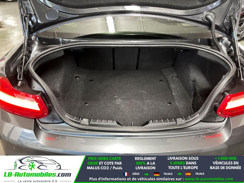 Référence : 1203503 Vos Avantages chez LB-AUTOMOBILES.com / Prix affiché TTC Livré hors carte grise / Livraison sous 10 jours dans toute la France hors 31 / Pas d?avance de frais paiement du véhicule 100% à la livraison par virement. BMW Série 2 Coupé Neuf remisée, BMW Série 2 Coupé Occasion Toulouse Beaupuy 31850, BMW Série 2 Coupé Véhicule sorti de réseau collaborateur, BMW Série 2 Coupé import, BMW Série 2 Coupé importateur, BMW Série 2 Coupé Livraison possible dans toute la France sous 5 jours, BMW Série 2 Coupé, BMW Série 2 Coupé Location Option Achat, BMW Série 2 Coupé LLD, BMW Série 2 Coupé Longue Durée, BMW Série 2 Coupé TVA récupérable. Possibilité d'extension de garantie 12, 24,36 mois, Pour tout autres voitures import neufs ou occasions collaborateur fortement remisée, Mandataire Audi, Mandataire BMW, Mandataire Volkswagen, Mandataire Mercedes, Mandataire Peugeot Espagne, Mandataire Renault Espagne, Porsche import, Mandataire Citroën Espagne, Mandataire Seat Espagne, n'hésitez pas à nous contacter. « Sous réserve de vente préalable et erreur de saisie » Principaux équipements : - 4x4 - ABS - Accoudoir - Antidémarrage - Assistance au freinage d'urgence - Assistance de démarrage en côte - Assistant feux de route - Avertisseur de franchissement de ligne - Bluetooth - Boîte de vitesses robotisée - Capteur de lumière - Capteur de pluie - Carnet d'entretien - Chargeur CD - Contrôle de la pression des pneus - Direction assistée - Éclairage d'ambiance - Éclairage route non éblouissant - Écran tactile - ESP - Fermeture centralisée - Feux de jour LED - Garantie - GPS - Grille de protection pour coffre - Hayon électrique - Isofix - Jantes alliage - Kit de réparation d'urgence des pneus - Kit mains libres - Lecteur CD - Ordinateur de bord - Pack sport - Phares LED - Pneus été - Point Isofix siège passager - Port USB - Radio DAB - Réglage électrique des sièges - Réglage électrique des sièges avec fonction mémoire - Régulateur de vitesse - Rétroviseur extérieur électrique - Rétroviseur intérieur anti-éblouissement automatique - Rétroviseurs extérieurs rabattables électriquement - Sièges chauffants - Sièges sport - Streaming musical intégré - Support lombaire - Suspension sport - Système antipatinage - Système d'alarme - Système d'appel d'urgence - Système d'avertissement de la distance - Système de détection de la fatigue - Système de limitation de la vitesse - Système de nettoyage des phares - Système de reconnaissance des panneaux de signalisation - Système de sonorisation - Système Stop & Start - Toit ouvrant - Tuner/radio - Véhicule non-fumeur - Verrouillage centralisé sans clé - Vitres électriques - Vitres teintées - Volant chauffant - Volant en cuir - Volant multifonction