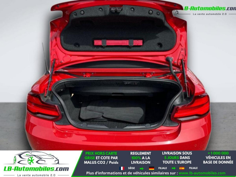 Référence : 1210256 Vos Avantages chez LB-AUTOMOBILES.com / Prix affiché TTC Livré hors carte grise / Livraison sous 10 jours dans toute la France hors 31 / Pas d?avance de frais paiement du véhicule 100% à la livraison par virement. BMW Série 2 Cabriolet Neuf remisée, BMW Série 2 Cabriolet Occasion Toulouse Beaupuy 31850, BMW Série 2 Cabriolet Véhicule sorti de réseau collaborateur, BMW Série 2 Cabriolet import, BMW Série 2 Cabriolet importateur, BMW Série 2 Cabriolet Livraison possible dans toute la France sous 5 jours, BMW Série 2 Cabriolet, BMW Série 2 Cabriolet Location Option Achat, BMW Série 2 Cabriolet LLD, BMW Série 2 Cabriolet Longue Durée, BMW Série 2 Cabriolet TVA récupérable. Possibilité d'extension de garantie 12, 24,36 mois, Pour tout autres voitures import neufs ou occasions collaborateur fortement remisée, Mandataire Audi, Mandataire BMW, Mandataire Volkswagen, Mandataire Mercedes, Mandataire Peugeot Espagne, Mandataire Renault Espagne, Porsche import, Mandataire Citroën Espagne, Mandataire Seat Espagne, n'hésitez pas à nous contacter. « Sous réserve de vente préalable et erreur de saisie » Principaux équipements : - ABS - Accoudoir - Antidémarrage - Assistant feux de route - Bluetooth - Capteur de lumière - Capteur de pluie - Contrôle de la pression des pneus - Diesel avec filtre à particules - Direction assistée - Éclairage adaptatif de virage - Éclairage d'ambiance - Éclairage route non éblouissant - ESP - Fermeture centralisée - Feux de jour LED - Garantie - GPS - Isofix - Jantes alliage - Kit mains libres - Ordinateur de bord - Phare antibrouillard - Phares LED - Pneus été - Port USB - Propulsion - Radio DAB - Régulateur de vitesse - Rétroviseur extérieur électrique - Rétroviseur intérieur anti-éblouissement automatique - Sièges chauffants - Sièges sport - Support lombaire - Système antipatinage - Système d'appel d'urgence - Système de sonorisation - Système Stop & Start - Tuner/radio - Véhicule non-fumeur - Vitres électriques - Volant chauffant - Volant en cuir - Volant multifonction