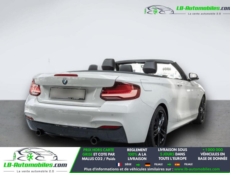 Référence : 1190868 Vos Avantages chez LB-AUTOMOBILES.com / Prix affiché TTC Livré hors carte grise / Livraison sous 10 jours dans toute la France hors 31 / Pas d?avance de frais paiement du véhicule 100% à la livraison par virement. BMW Série 2 Cabriolet Neuf remisée, BMW Série 2 Cabriolet Occasion Toulouse Beaupuy 31850, BMW Série 2 Cabriolet Véhicule sorti de réseau collaborateur, BMW Série 2 Cabriolet import, BMW Série 2 Cabriolet importateur, BMW Série 2 Cabriolet Livraison possible dans toute la France sous 5 jours, BMW Série 2 Cabriolet, BMW Série 2 Cabriolet Location Option Achat, BMW Série 2 Cabriolet LLD, BMW Série 2 Cabriolet Longue Durée, BMW Série 2 Cabriolet TVA récupérable. Possibilité d'extension de garantie 12, 24,36 mois, Pour tout autres voitures import neufs ou occasions collaborateur fortement remisée, Mandataire Audi, Mandataire BMW, Mandataire Volkswagen, Mandataire Mercedes, Mandataire Peugeot Espagne, Mandataire Renault Espagne, Porsche import, Mandataire Citroën Espagne, Mandataire Seat Espagne, n'hésitez pas à nous contacter. « Sous réserve de vente préalable et erreur de saisie » Principaux équipements : - ABS - Accoudoir - Android Auto - Antidémarrage - Apple CarPlay - Assistance de démarrage en côte - Bluetooth - Boîte de vitesses robotisée - Capteur de lumière - Capteur de pluie - Carnet d'entretien - Chargement par induction pour smartphones - Commande vocale - Contrôle de la pression des pneus - Diesel avec filtre à particules - Direction assistée - Éclairage d'ambiance - ESP - Fermeture centralisée - GPS - Isofix - Jantes alliage - Kit de réparation d'urgence des pneus - Kit mains libres - Lecteur CD - Ordinateur de bord - Pack sport - Phare antibrouillard - Phares LED - Port USB - Propulsion - Radio DAB - Réglage électrique des sièges - Réglage électrique des sièges avec fonction mémoire - Régulateur de vitesse - Rétroviseur extérieur électrique - Rétroviseur intérieur anti-éblouissement automatique - Rétroviseurs extérieurs rabattables électriquement - Sièges chauffants - Sièges sport - Support lombaire - Suspension sport - Système antipatinage - Système d'alarme - Système d'appel d'urgence - Système de reconnaissance des panneaux de signalisation - Système de sonorisation - Système Stop & Start - Tuner/radio - Véhicule non-fumeur - Verrouillage centralisé sans clé - Vitres électriques - Volant chauffant - Volant en cuir - Volant multifonction - WLAN / point d'accès Wi-Fi