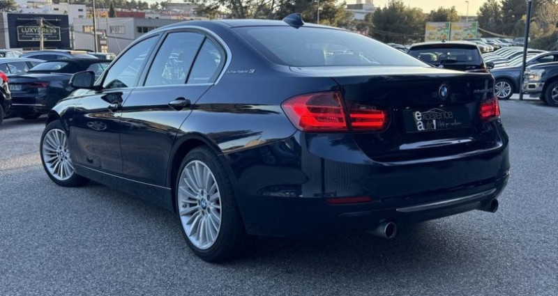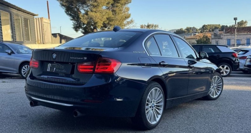 Bmw SERIE 3 (F30) ACTIVEHYBRID3 340CH LUXURY, (Berline), BLEU F, 19cv, 4 portes, mise en circulation le 01-12-2014. 5 places, longueur : 4,62 mètres, boîte de vitesse : automatique OPTIONS ET EQUIPEMENTS : Audio - Télécommunications - Appel d'Assistance Localisé - Appel d'Urgence Localisé - Disque dur multimédia - GPS Cartographique - Kit mains-libres Bluetooth - Navigation multimédia Professional - Prise USB - Prise auxiliaire de connexion audio - Radio CD MP3 6HP - Services connectés Conduite - Aide au démarrage en côte - Allumage des phares automatique - Arrêt et redémarrage auto. du moteur - Blocage électronique du différentiel - Capteur de luminosité - Capteur de pluie - Commande du comportement dynamique - Construction allégée intelligente - Démarrage sans clé - Follow me home - Limiteur de vitesse - Régulateur de vitesse - Régulateur de vitesse et de distance - Système de récupération énergie freinage Extérieur - Boucliers AV et AR couleur caisse - Calandre chromée - Echappement à double sortie - Eclairage au sol - Feux arrière à LED - Feux de freinage d'urgence - Feux de jour à LED - Feux de position à LED - Jantes Alu - Lave-phares - Phares bi-xénon - Phares de route adaptatifs - Projecteurs bi-Xénon - Radar de stationnement AR - Répétiteurs de clignotant dans rétro ext - Rétroviseurs dégivrants - Rétroviseurs ext. indexés à la marche AR - Rétroviseurs extérieurs à mémoire - Rétroviseurs extérieurs électrochromes - Rétroviseurs rabattables électriquement - Rétroviseurs électriques - Rétroviseurs électriques dégivrants - Sortie d'échappement chromée - Toit ouvrant en verre électrique Intérieur - Accoudoir central AR avec trappe à skis - Accoudoir central AV avec rangement - Bacs de portes avant - Banquette 40/20/40 - Banquette AR rabattable - Banquette arrière 3 places - Boite à gants fermée - Clim automatique arriere - Clim automatique tri-zones - Commande Climatisation AR - Compte tours - Direction assistée électrique - Eclairage d'ambiance - Ecran multifonction couleur - Filtre à Pollen - Fixations Isofix aux places arrières - Frein à main en cuir - Inserts de porte bois - Inserts de tableau de bord bois - Kit Fumeur - Lampe de coffre - Lampes de lecture à l'arrière - Lampes de lecture à l'avant - Levier vitesse cuir - Miroir de courtoisie conducteur éclairé - Miroir de courtoisie passager éclairé - Ordinateur de bord - Ouverture des vitres séquentielle - Porte-gobelets avant - Prise 12V - Rétroviseur intérieur électrochrome - Siège conducteur réglable en hauteur - Siège passager réglable en hauteur - Température extérieure - Verrouillage auto. des portes en roulant - Verrouillage centralisé des portes - Verrouillage centralisé à distance - Vitres arrière électriques - Vitres avant électriques - Vitres teintées - Volant cuir - Volant cuir multifonction - Volant multifonction - Volant métal - Volant réglable en profondeur et hauteur - Volant sport - Volant sport gainé cuir Sécurité - ABS - Aide au freinage d'urgence - Airbag conducteur - Airbag passager déconnectable - Airbags frontaux - Airbags latéraux avant - Airbags rideaux AV et AR - Antidémarrage électronique - Antipatinage - Contrôle de freinage en courbe - Contrôle élect. de la pression des pneus - Détecteur de sous-gonflage - EBD - ESP - Kit anti-crevaison - Phares antibrouillard - Préparation Isofix - Troisième ceinture de sécurité Autres équipements et informations : - Interface Bluetooth avec port audio USB - Rétros ext. électrochr. - rabatt électr. - Rétros ext. électrochr., rabatt électr. Kilométrage garanti. Référence annonce : 10605