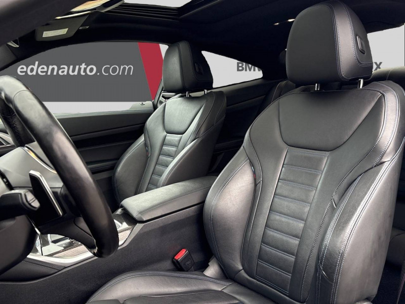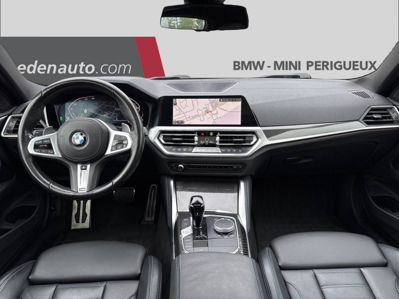 2 porte-gobelets sur la console centrale / 4 places / ABS, y compris assistant de freinage / Active Guard Plus Avertissement de collision frontale avec intervention de freinage grâce à un radar et à une caméra (entre 5 km/h et 250 km/h) - Avertissement de chauvechement de ligne avec impulsion sur la direction - Assistance de limitation de vitesse avec informations de limite de vitesse / Alarme antivol / Appel d'Urgence Intelligent (durée de vie de la voiture) / Applications véhicule (3 ans). BMW Connected+ (3 ans). / Appui lombaire conducteur et réglage en largeur dossier conducteur / BMW EfficientDynamics / BMW Live Cockpit Navigation Pro / Boîte de vitesses automatique 8 rapports / Capacité du reservoir augmentée / Carte SIM 4G LTE pour les Services ConnectedDrive / Ceintures de sécurité 3 points pour toutes les places / Ciel de pavillon "Anthrazit" BMW Individual / Clés radiocommandées à mémorisation automatique des réglages "Personal Profile" / Connexion multiple de téléphones / Contrôle de freinage en courbe CBC / Controller iDrive avec touches de raccourci / Désignation du modèle xDrive sur la malle à gauche / Détecteur de pluie et allumage automatique des projecteurs / Direction DirectDrive à démultiplication variable / Direction Servotronic à assistance variable en fonction de la vitesse BMW EfficientDynamics / Eclairage d'accueil / Eclairage d'ambiance Eclairage lumineux dynamique pour 4 applications (bienvenue, au revoir, portes ouvertes et appel téléphonique) dans 9 coloris différents du tableau de bord, des panneaux de portes et de la console centrale. Comprend également les liseuses arrière, l'éclairage du rangement de l'accoudoir central avant et poignées d'ouverture de porte (intérieur et extérieur) ainsi qu'un éclairage de bienvenue avec tapis de lumière / Eclairage dans le coffre / Ecrous de roues antivol / Eléments extérieurs (poignées de portes et baguettes de toit) couleur carrosserie / Feux de croisement et feux de route à technologie Bi-LED / Feux de jour et clignotants AV/AR à LED / Finition M Sport / Fonction d'arrêt et de redémarrage automatique du moteur BMW EfficientDynamics / Frein de parking électromécanique avec fonction Auto-Hold / Grilles de calandre "Mesheffect" avec pépites en aluminium et cadres en chrome brillant / Hotspot Wi-Fi / Hybridation légère (48V) / Inserts décoratifs M Aluminium Tetragon / Interface Bluetooth pour téléphone portable / Jantes en alliage léger 18" (46 cm) style 848 M bicolores à rayons doubles avec pneumatiques mixtes 7,5Jx18 / pneus 225/45 R18, 8,5Jx18 / pneus 255/40 R18, Comprend Ecrous antivol de roues / Kit de rangement - Bac de rangement dans les portes avant (une bouteille de 1L peut y prendre place) Contrôle Dynamique de la Stabiité DSC et Contrôle Dynamique de la Traction DTC - Prise 12 V dans la console centrale "Controller" iDrive avec touches de raccourci - Double prise USB Type C dans la console centrale arrière Détecteur de pluie et allumage automatique des projecteurs - Filets au dos des sièges avant et dans le coffre à bagages, / Kit Eclairage / Lève-vitres AV électriques avec commande par impulsion et protection anti-coincement / Mesure individuelle de pression des pneumatiques / Notice d'utilisation de la voiture intégrée et carnet d'entretien électronique avec BMW Service History / Ordinateur de bord avec affichage de la température extérieure / Pack Aérodynamique M / Pack Connected Pro / Park Assist / Préparation pour feux de route permanents anti-éblouissement / Prises USB (1 type A dans la console centrale et 1 type C dans l'accoudoir central) / Réglage de la largeur du dossier / Réglage de la largeur du dossier conducteur / Régulateur de vitesse avec fonction de freinage et limiteur de vitesse / Rétroviseur intérieur électrochrome / Rétroviseurs extérieurs couleur carrosserie et chauffants avec rappels de clignotants intégrés / Sélecteur de mode de conduite - (3 modes) ECO PRO, Comfort, Sport / Sellerie Alcantara / Similicuir Sensatec "Schwarz" avec surpiqûres contrastantes Bleues / Services Après-vente connectés BMW TeleServices (durée de vie de la voiture) - Appel Automatique - Appel Manuel - Appel "BMW Assistance - Teleservice Battery Guard - Appel Hotline / Seuils de portes avec inscription BMW / Shadow Line M brillant Eléments en noir à haute brillance : - Panneaux de garnissage des montants B et C - Encadrement extérieur des vitres latérales - Pieds et triangles des rétroviseurs extérieurs - Rails de toit (Touring) / Sièges Advanced AV réglables en hauteur et inclinaison du dossier (sans réglage de la largeur du dossier) / Suppression de la fonction manuelle de basculement du siège Advanced / Suspensions DirectDrive / Système de récupération de l'énergie au freinage BMW EfficientDynamics / Tapis de sol en velours / Technologie 4 roues motrices intelligente xDrive / Teinte de carrosserie unie (Alpinweiss) / Touches multifonctions sur le volant / Triangle de présignalisation avec kit de premiers secours / Tuner DAB Inclus DAB+. Permet la réception de la radio numérique en plus de la radio analogique et offre une qualité sonore proche du CD. Des informations supplémentaires comme le titre et l'interprète sont transmises sous forme de texte. La Radio Numérique Terrestre est disponible à Paris, Marseille, Nice et Monaco, Lille, Lyon, Nantes, Rouen, Strasbourg et Toulouse. Les stations de radio numériques sont essentiellement des stations associatives, locales ou indépendantes / Verrouillage centralisé des portes, du coffre et de la trappe à essence / Vitres avec protection contre la chaleur et le soleil / Volant M gainé cuir Trois branches, aplati en bas et marque à 12 heures en noir. Volant en cuir noir 'Walknappa' avec surpiqûres noires, inserts chrome nacré et repose-pouce dans le volant. Logo M sur la base du volant.