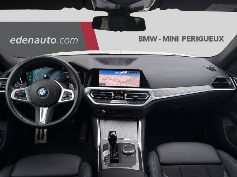 2 porte-gobelets sur la console centrale / 5 places / ABS, y compris assistant de freinage / Active Guard Plus Avertissement de collision frontale avec intervention de freinage grâce à un radar et à une caméra (entre 5 km/h et 250 km/h) - Avertissement de chauvechement de ligne avec impulsion sur la direction - Assistance de limitation de vitesse avec informations de limite de vitesse / Alarme antivol / Appel d'Urgence Intelligent (durée de vie de la voiture) / Avertisseur de franchissement de ligne avec intervention dans la direction / BMW EfficientDynamics / BMW Live Cockpit Navigation Pro / Boîte de vitesses automatique 8 rapports / Capacité du reservoir augmentée / Carte SIM 4G LTE pour les Services ConnectedDrive / Ceintures de sécurité 3 points pour toutes les places / Ciel de pavillon M Anthracite / Clés radiocommandées à mémorisation automatique des réglages "Personal Profile" / Commande électrique du volet de coffre / Connectivité avancée avec recharge sans fil par induction / Connexion multiple de téléphones / Contrôle de freinage en courbe CBC / Controller iDrive avec touches de raccourci / Désignation du modèle sur la malle à gauche / Détecteur de pluie et allumage automatique des projecteurs / Direction DirectDrive à démultiplication variable / Direction Servotronic à assistance variable en fonction de la vitesse / Eclairage d'accueil / Eclairage d'ambiance Eclairage lumineux dynamique pour 4 applications (bienvenue, au revoir, portes ouvertes et appel téléphonique) dans 9 coloris différents du tableau de bord, des panneaux de portes et de la console centrale. Comprend également les liseuses arrière, l'éclairage du rangement de l'accoudoir central avant et poignées d'ouverture de porte (intérieur et extérieur) ainsi qu'un éclairage de bienvenue avec tapis de lumière / Eclairage dans le coffre / Ecrous de roues antivol / Eléments extérieurs (poignées de portes et baguettes de toit) couleur carrosserie / Feux de croisement et feux de route à technologie Bi-LED / Feux de jour et clignotants AV/AR à LED / Frein de parking électromécanique avec fonction Auto-Hold / Grilles de calandre "Mesheffect" avec pépites en aluminium et cadres en chrome brillant / Hotspot Wi-Fi / Hybridation légère (48V) / Indicateur de limitation de vitesse / Inserts décoratifs Aluminium Tetragon soulignés de chrome perlé / Interface Bluetooth / Jantes en alliage léger 18'' style 858 M bicolores à rayons doubles 8,5 J x 18 / pneus 245/45 R 18 / Kit Eclairage / Kit rangement / Lève-vitres AV électriques avec commande par impulsion et protection anti-coincement / Mesure individuelle de pression des pneumatiques / Notice d'utilisation de la voiture intégrée et carnet d'entretien électronique avec BMW Service History / Ordinateur de bord avec Check-Control et indicateur de température extérieure / Pack Aérodynamique M / Pack Connected Pro / Park Assist / Préparation pour feux de route anti-éblouissement / Prises USB (1 type A dans la console centrale et 1 type C dans l'accoudoir central) / Protection active des piétons / Rampe commune de 3ème génération et un turbocompresseur à géométrie variable / Réglage de la largeur du dossier conducteur / Régulateur de vitesse avec fonction de freinage et limiteur de vitesse / Rétroviseur intérieur électrochrome / Rétroviseurs extérieurs couleur carrosserie et chauffants avec rappels de clignotants intégrés / Sélecteur de mode de conduite - (3 modes) ECO PRO, Comfort, Sport / Sellerie Alcantara / Similicuir Sensatec "Schwarz" avec surpiqûres contrastantes Bleues / Services Après-vente connectés BMW TeleServices (durée de vie de la voiture) - Appel Automatique - Appel Manuel - Appel "BMW Assistance - Teleservice Battery Guard - Appel Hotline / Services ConnectedDrive (Apps véhicules) (3 ans) / Seuils de portes avec inscription BMW / Shadow Line M brillant Eléments en noir à haute brillance : - Panneaux de garnissage des montants B et C - Encadrement extérieur des vitres latérales - Pieds et triangles des rétroviseurs extérieurs - Rails de toit (Touring) / Sièges Advanced conducteur et passager AV réglables en hauteur et inclinaison du dossier (sans réglage de largeur du dossier) / Sortie d'échappement simple à gauche et à droite de 90 mm / Suspensions DirectDrive / Système anti-collision à basse vitesse / Système de récupération de l'énergie au freinage / Tapis de sol en velours / Technologie 4 roues motrices intelligente xDrive / Technologie BMW TwinPower Turbo avec injection directe / Teinte de carrosserie unie (Alpinweiss) / Touches multifonctions sur le volant / Triangle de présignalisation avec kit de premiers secours / Tuner DAB Inclus DAB+. Permet la réception de la radio numérique en plus de la radio analogique et offre une qualité sonore proche du CD. Des informations supplémentaires comme le titre et l'interprète sont transmises sous forme de texte. La Radio Numérique Terrestre est disponible à Paris, Marseille, Nice et Monaco, Lille, Lyon, Nantes, Rouen, Strasbourg et Toulouse. Les stations de radio numériques sont essentiellement des stations associatives, locales ou indépendantes / Verrouillage centralisé des portes, du coffre et de la trappe à essence / Vitres avec protection contre la chaleur et le soleil / Volant M gainé cuir Trois branches, aplati en bas et marque à 12 heures en noir. Volant en cuir noir 'Walknappa' avec surpiqûres noires, inserts chrome nacré et repose-pouce dans le volant. Logo M sur la base du volant.