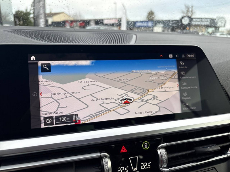 2 porte-gobelets sur la console centrale / 2 sièges à l'AR / 4 places / ABS, y compris assistant de freinage / Active Guard Plus Avertissement de collision frontale avec intervention de freinage grâce à un radar et à une caméra (entre 5 km/h et 250 km/h) - Avertissement de chauvechement de ligne avec impulsion sur la direction - Assistance de limitation de vitesse avec informations de limite de vitesse / Alarme antivol / Appel d'Urgence Intelligent (durée de vie de la voiture) / Applications véhicule (3 ans). BMW Connected+ (3 ans). / Appui lombaire conducteur et réglage en largeur dossier conducteur / BMW EfficientDynamics / BMW Live Cockpit Navigation Pro / Boîte de vitesses automatique 8 rapports / Capacité du reservoir augmentée / Carte SIM 4G LTE pour les Services ConnectedDrive / Ceintures de sécurité 3 points pour toutes les places / Clés radiocommandées à mémorisation automatique des réglages "Personal Profile" / Connexion multiple de téléphones / Contrôle de freinage en courbe CBC / Controller iDrive avec touches de raccourci / Désignation du modèle sur la malle à droite / Détecteur de pluie et allumage automatique des projecteurs / Direction DirectDrive à démultiplication variable / Direction Servotronic à assistance variable en fonction de la vitesse BMW EfficientDynamics / Eclairage d'accueil / Eclairage d'ambiance Eclairage lumineux dynamique pour 4 applications (bienvenue, au revoir, portes ouvertes et appel téléphonique) dans 9 coloris différents du tableau de bord, des panneaux de portes et de la console centrale. Comprend également les liseuses arrière, l'éclairage du rangement de l'accoudoir central avant et poignées d'ouverture de porte (intérieur et extérieur) ainsi qu'un éclairage de bienvenue avec tapis de lumière / Eclairage dans le coffre / Ecrous de roues antivol / Eléments extérieurs (poignées de portes et baguettes de toit) couleur carrosserie / Feux de croisement et feux de route à technologie Bi-LED / Feux de jour et clignotants AV/AR à LED / Finition M Sport / Fonction d'arrêt et de redémarrage automatique du moteur BMW EfficientDynamics / Frein de parking électromécanique avec fonction Auto-Hold / Grilles de calandre "Mesheffect" avec pépites en aluminium et cadres en chrome brillant / Hotspot Wi-Fi / Hybridation légère (48V) / Inserts décoratifs M Aluminium Tetragon / Interface Bluetooth pour téléphone portable / Jantes en alliage léger 18" (46 cm) style 848 M bicolores à rayons doubles avec pneumatiques mixtes 7,5Jx18 / pneus 225/45 R18, 8,5Jx18 / pneus 255/40 R18, Comprend Ecrous antivol de roues / Kit de rangement - Bac de rangement dans les portes avant (une bouteille de 1L peut y prendre place) Contrôle Dynamique de la Stabiité DSC et Contrôle Dynamique de la Traction DTC - Prise 12 V dans la console centrale "Controller" iDrive avec touches de raccourci - Double prise USB Type C dans la console centrale arrière Détecteur de pluie et allumage automatique des projecteurs - Filets au dos des sièges avant et dans le coffre à bagages, / Kit Eclairage / Lève-vitres AV électriques avec commande par impulsion et protection anti-coincement / Mesure individuelle de pression des pneumatiques / Notice d'utilisation de la voiture intégrée et carnet d'entretien électronique avec BMW Service History / Ordinateur de bord avec affichage de la température extérieure / Pack Aérodynamique M / Pack Connected Pro / Park Assist / Préparation pour feux de route permanents anti-éblouissement / Prises USB (1 type A dans la console centrale et 1 type C dans l'accoudoir central) / Réglage de la largeur du dossier / Régulateur de vitesse avec fonction de freinage et limiteur de vitesse / Rétroviseur intérieur électrochrome / Rétroviseurs extérieurs couleur carrosserie et chauffants avec rappels de clignotants intégrés / Sélecteur de mode de conduite - (3 modes) ECO PRO, Comfort, Sport / Sellerie Cuir "Vernasca" Schwarz avec surpiqûres Bleues / Teinte d'habitacle Schwarz / Services Après-vente connectés BMW TeleServices (durée de vie de la voiture) - Appel Automatique - Appel Manuel - Appel "BMW Assistance - Teleservice Battery Guard - Appel Hotline / Seuils de portes avec inscription BMW / Shadow Line M brillant Eléments en noir à haute brillance : - Panneaux de garnissage des montants B et C - Encadrement extérieur des vitres latérales - Pieds et triangles des rétroviseurs extérieurs - Rails de toit (Touring) / Sièges Advanced AV réglables en hauteur et inclinaison du dossier (sans réglage de la largeur du dossier) / Sièges AV électriques avec mémoire conducteur / Suspensions DirectDrive / Système de récupération de l'énergie au freinage BMW EfficientDynamics / Tableau de bord en similicuir Sensatec / Tapis de sol en velours / Teinte de carrosserie unie (Alpinweiss) / Touches multifonctions sur le volant / Triangle de présignalisation avec kit de premiers secours / Tuner DAB Inclus DAB+. Permet la réception de la radio numérique en plus de la radio analogique et offre une qualité sonore proche du CD. Des informations supplémentaires comme le titre et l'interprète sont transmises sous forme de texte. La Radio Numérique Terrestre est disponible à Paris, Marseille, Nice et Monaco, Lille, Lyon, Nantes, Rouen, Strasbourg et Toulouse. Les stations de radio numériques sont essentiellement des stations associatives, locales ou indépendantes / Verrouillage centralisé des portes, du coffre et de la trappe à essence / Vitres avec protection contre la chaleur et le soleil / Volant M gainé cuir Trois branches, aplati en bas et marque à 12 heures en noir. Volant en cuir noir 'Walknappa' avec surpiqûres noires, inserts chrome nacré et repose-pouce dans le volant. Logo M sur la base du volant.