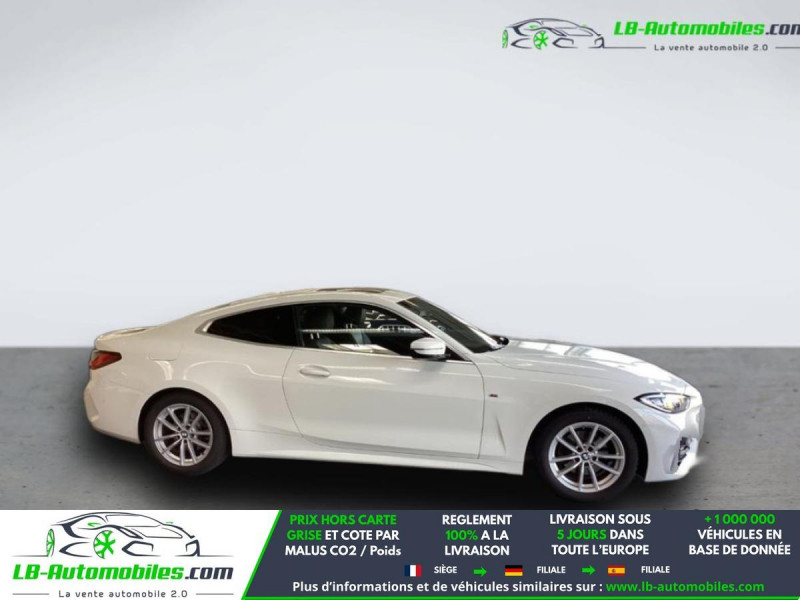 Référence : 1191407 Vos Avantages chez LB-AUTOMOBILES.com / Prix affiché TTC Livré hors carte grise / Livraison sous 10 jours dans toute la France hors 31 / Pas d?avance de frais paiement du véhicule 100% à la livraison par virement. BMW Série 4 Coupé Neuf remisée, BMW Série 4 Coupé Occasion Toulouse Beaupuy 31850, BMW Série 4 Coupé Véhicule sorti de réseau collaborateur, BMW Série 4 Coupé import, BMW Série 4 Coupé importateur, BMW Série 4 Coupé Livraison possible dans toute la France sous 5 jours, BMW Série 4 Coupé, BMW Série 4 Coupé Location Option Achat, BMW Série 4 Coupé LLD, BMW Série 4 Coupé Longue Durée, BMW Série 4 Coupé TVA récupérable. Possibilité d'extension de garantie 12, 24,36 mois, Pour tout autres voitures import neufs ou occasions collaborateur fortement remisée, Mandataire Audi, Mandataire BMW, Mandataire Volkswagen, Mandataire Mercedes, Mandataire Peugeot Espagne, Mandataire Renault Espagne, Porsche import, Mandataire Citroën Espagne, Mandataire Seat Espagne, n'hésitez pas à nous contacter. « Sous réserve de vente préalable et erreur de saisie » Principaux équipements : - ABS - Accoudoir - Affichage tête haute - Antidémarrage - Assistance au freinage d'urgence - Assistance de démarrage en côte - Assistant de sortie de stationnement - Assistant feux de route - Attache remorque pivotante - Avertisseur de franchissement de ligne - Bluetooth - Boîte de vitesses robotisée - Capteur de lumière - Capteur de pluie - Carnet d'entretien - Chargement par induction pour smartphones - Cockpit numérique - Commande vocale - Contrôle de la pression des pneus - Direction assistée - Éclairage d'ambiance - Écran tactile - ESP - Fermeture centralisée - Feux de jour LED - Garantie - GPS - Isofix - Jantes alliage - Kit mains libres - Ordinateur de bord - Pack fumeur - Pack sport - Phare antibrouillard - Phares LED - Port USB - Propulsion - Radio DAB - Réglage électrique des sièges - Réglage électrique des sièges avec fonction mémoire - Régulateur de vitesse - Rétroviseur extérieur électrique - Rétroviseur intérieur anti-éblouissement automatique - Sièges chauffants - Sièges sport - Streaming musical intégré - Support lombaire - Suspension sport - Système antipatinage - Système d'alarme - Système d'appel d'urgence - Système d'avertissement de la distance - Système de détection de la fatigue - Système de limitation de la vitesse - Système de reconnaissance des panneaux de signalisation - Système de sonorisation - Système Stop & Start - Toit ouvrant - Tuner/radio - Verrouillage centralisé sans clé - Vitres électriques - Vitres teintées - Volant en cuir - WLAN / point d'accès Wi-Fi
