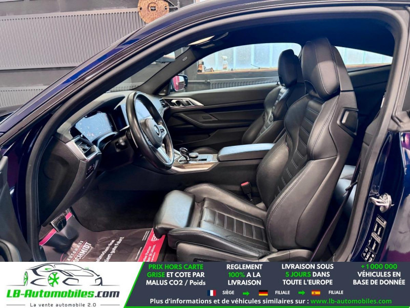 Référence : 1171730 Vos Avantages chez LB-AUTOMOBILES.com / Prix affiché TTC Livré hors carte grise / Livraison sous 10 jours dans toute la France hors 31 / Pas d?avance de frais paiement du véhicule 100% à la livraison par virement. BMW Série 4 Coupé Neuf remisée, BMW Série 4 Coupé Occasion Toulouse Beaupuy 31850, BMW Série 4 Coupé Véhicule sorti de réseau collaborateur, BMW Série 4 Coupé import, BMW Série 4 Coupé importateur, BMW Série 4 Coupé Livraison possible dans toute la France sous 5 jours, BMW Série 4 Coupé, BMW Série 4 Coupé Location Option Achat, BMW Série 4 Coupé LLD, BMW Série 4 Coupé Longue Durée, BMW Série 4 Coupé TVA récupérable. Possibilité d'extension de garantie 12, 24,36 mois, Pour tout autres voitures import neufs ou occasions collaborateur fortement remisée, Mandataire Audi, Mandataire BMW, Mandataire Volkswagen, Mandataire Mercedes, Mandataire Peugeot Espagne, Mandataire Renault Espagne, Porsche import, Mandataire Citroën Espagne, Mandataire Seat Espagne, n'hésitez pas à nous contacter. « Sous réserve de vente préalable et erreur de saisie » Principaux équipements : - 4x4 - ABS - Accoudoir - Affichage tête haute - Antidémarrage - Assistance au freinage d'urgence - Assistance de démarrage en côte - Assistant d'angle mort - Assistant feux de route - Avertisseur de franchissement de ligne - Bluetooth - Boîte de vitesses robotisée - Capteur de lumière - Capteur de pluie - Carnet d'entretien - Chargement par induction pour smartphones - Cockpit numérique - Commande vocale - Contrôle de la pression des pneus - Direction assistée - Éclairage adaptatif de virage - Éclairage d'ambiance - Écran tactile - ESP - Fermeture centralisée - Feux de jour LED - Garantie - GPS - Hayon électrique - Isofix - Jantes alliage - Kit mains libres - Ordinateur de bord - Pack sport - Phares laser - Port USB - Radio DAB - Réglage électrique des sièges - Réglage électrique des sièges avec fonction mémoire - Régulateur de vitesse adaptatif - Rétroviseur extérieur électrique - Rétroviseur intérieur anti-éblouissement automatique - Rétroviseurs extérieurs rabattables électriquement - Sièges sport - Support lombaire - Suspension adaptative - Suspension sport - Système antipatinage - Système d'alarme - Système d'appel d'urgence - Système d'avertissement de la distance - Système de détection de la fatigue - Système de reconnaissance des panneaux de signalisation - Système de sonorisation - Système Stop & Start - Tuner/radio - Verrouillage centralisé sans clé - Vitres électriques - Volant en cuir - Volant multifonction - WLAN / point d'accès Wi-Fi