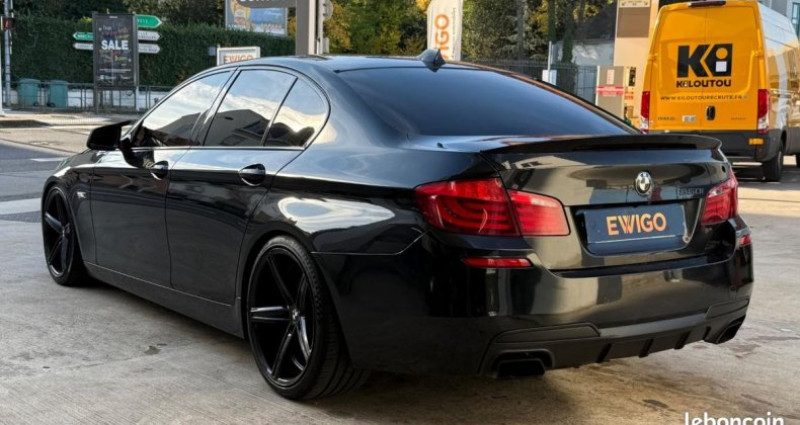 BMW Série 5 (F10) 4.4 550IA V8 408 + SIEGES CHAUFFANTS + CAMERA berline, noir, 31 cv, 4 portes, première mise en circulation le 17/06/2010, garantie 6 mois. - NOS SERVICES ET PRESTATIONS COMPLÉMENTAIRES - - Visite virtuelle : avant de vous déplacer, visualisez votre futur véhicule sous toutes ses coutures . Contactez-nous pour en voir plus ! - Extension de garantie jusqu'à 60 mois. - Solutions de Financement de 12 à 84 mois. - Livraison dans toute la France métropolitaine (sur devis). - Reprise possible de votre ancien véhicule. - Les informations délivrées par cette annonce sont non contractuelles et données à titre indicatif. Packs disponibles (véhicules éligibles au Label) - Pack Clés en Main - 691 € TTC(¹)(²) Démarches (hors carte grise) | 1/4 de carburant | Nettoyage First | Garantie 6 mois | Label inclus? - Pack Sérénité - 891 € TTC(¹)(²)- Démarches (hors carte grise) | 1/2 de carburant | Nettoyage Confort | Garantie 12 mois | Label inclus? - Pack Prestige - 1.091 € TTC(¹)(²) Démarches (hors carte grise) | Plein complet | Nettoyage Prestige | Garantie 12 mois | Label inclus? + Surprise du chef - (¹) Les véhicules non éligibles au Label bénéficient de tarifs préférentiels. Veuillez contacter votre conseiller pour obtenir les conditions tarifaires applicables. (²) Tarif pour les véhicules deux roues motrices dont la valeur de vente est inférieure à 60 000 € TTC. - - Accès transport en commun depuis la gare Nancy centre / Possibilité de venir vous chercher à la gare de Nancy centre - Véhicule visible sur rendez-vous - Du Lundi au Samedi de 9h à 18h30 - EWIGO NANCY - 144 rue du faubourg des trois maisons - 54000 NANCY - Tel : [Coordonnées masquées] 5 places OPTIONS ET ÉQUIPEMENTS : Audio - Télécommunications : - Info trafic - Système audio Harman Kardon - Bluetooth - commandes vocales Conduite : - BVA - Boîte de vitesse séquentielle - Choix du mode de conduite - Essuies glaces automatiques - Frein de parking auto - Stop & Start - allumage automatique des feux - démarrage sans clé - détecteur de pluie - limiteur de vitesse - palettes au volant - régulateur de vitesse Couleur : - Peinture métallisée Extérieur : - Echappement à double sortie - Phares AR à led - Aide au parking AR - caméra de recul - jantes : aluminium - projecteurs xénon - système d'aide au stationnement Intérieur : - Accoudoir central AV - Accoudoir central AV +AR - Inserts aluminium - Miroir de courtoisie chauffeur éclairé - Miroir de courtoisie passager éclairé - Sièges AV électriques - Sièges à mémoire - Volant alu/cuir - accoudoir central - accoudoir central arrière - banquette 1/3 - 2/3 - climatisation : automatique - climatisation multi zone - fermeture centralisée - ordinateur de bord - rétroviseur interieur electrochrome - sièges chauffants - vitres surteintées - vitres électriques - volant chauffant - volant réglable hauteur - volant réglable profondeur Pack : - Boîte de vitesse automatique - Pack extérieur - Pack intérieur - nombre de rapports : 8 vitesses - volant multifonctions - volant réglable Sécurité : - Airbags - Antibrouillards avant - Contrôle de pression des pneus - ABS - Aide au demarrage en pente - ESP - fixations ISOFIX - phares antibrouillard Autres équipements et informations : - 408 / 408CH - 5 places / 5 portes - CRIT'AIR 1 - Carnet d'entretien - Double des clés - Phares AV de jour - Classe Crit'air : 2 - Puissance kilowatt : 300 kw - dimension des jantes : 20 pouces - puissance réelle : 408 ch - émission CO2 : 243 g/km - état : bon Référence annonce : d152807