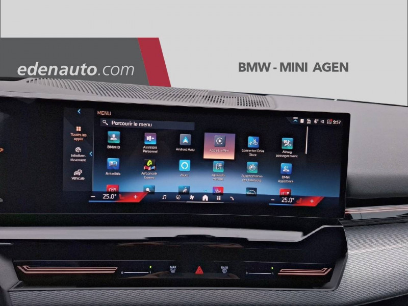 3 ceintures AR 3 points / 3ème feu stop à LED / 5 sièges / ABS (système de freinage antiblocage) y compris assistant de freinage d'urgence en virage / Accoudoir central AV/AR (avec 2 porte-gobelets) / Active Guard -Avertisseur de collision AV avec intervention de freinage pour piétons/cyclistes incl. dans les virages et aux carrefours -Avertisseur de sortie de voie avec retour actif -Informations sur la limite de vitesse (Speed Limit Info) avec indication d'interdiction de dépassement ainsi que l'assistant de limitation de vitesse manuel (Speed Limit Assist) / Aides à la conduite Driving Assistant Plus - Fonction à la demande / Airbag central (siège conducteur) / Airbag frontal (volant/conducteur et passager AV(désactivation possible)) / Alarme antivol / Anneau bleu autour de l'emblème BMW sur le capot, le hayon, le volant et les moyeux de roue / Appel d'Urgence Intelligent (durée de vie de la voiture) Appel automatique vers le centre d'assistance BMW en cas d'accident. Touche SOS pour Appel d'Urgence manuel. Les données importantes sont automatiquement transmises aux secours : identification et localisation de la voiture, nombre de passagers à bord, statuts des airbags. Ce service utilise la carte SIM montée d'usine et ne requiert pas l'utilisation du smartphone. / Appui lombaire ajustable / Assistant d'attention avec recommandation de pause / Avertisseur sonore pour piétons / BMW Digital Key / BMW eDrive (Capacité de la batterie haute tension Lithium-ion: 22,1 kWh brute (19,4 kWh nette)/403V) -Chargeur embarqué AC 7,4 kW. 'Authentification automatique Plug&Charge lors du branchement sur certaines bornes publiques / BMW eDrive Capacité de la batterie haute tension Lithium-ion : 22,1 kWh brute (19,4 kWh nette) / 403 V.Trappe de recharge avec éclairage LED à l'avant gauche - Chargeur embarqué AC 11 kW.'Authentification automatique Plug&Charge lors du branchement sur certaines bornes publiques / BMW IconicSounds Electric . / BMW ID / BMW Live Cockpit Navigation Plus avec BMW Curved Display / Boîte de vitesses automatique 8 rapports / Bouton de démarrage du moteur Start/Stop sans manipulation de la clé / Buse de lave-glace pour caméra de recul / Buses de lave-glace chauffantes / Câble de recharge Professionnel Mode 3 (T2-T2) pour la recharge publique - 5 mètres Câble de recharge Professionnel de Mode 3 triphasé avec prises Type 2 - Type 2 destinéà la recharge sur bornes publiques ou privées. Peut être utilisé sur une borne de recharge raccordée en courant monophasé ou triphasé avec des puissances de charge maximales : 11 kW / 32 A (en monophasé) et de 22 kW / 32 A (en triphasé). Rangement dans le coffret à câbles sous le cache du compartiment à bagages. Couleur Gris basalte / Capteur de pluie et allumage automatique des projecteurs / Chargeur rapide AC Plus 11 kW Puissance maximale du chargeur embarqué AC : 11 kW, 3 phases, intensité max. : 32 A / Chauffage de lunette AR / Ciel de pavillon M Anthracite Ciel de pavillon, garnitures des montant et pare-soleil de couleur anthracite. / Climatisation automatique bi-zone à fonctionnalités étendues Contrôle individuel de la température pour le conducteur et le passager AV, Programme automatique avec 5 niveaux d'intensité, Fonction SYNC : les réglages du conducteur s'appliquent à toute la zone passagers, Recirculation automatique de l'air (SSC), capteur qui détecte l'essence et les gaz d'échappement diesel (CO, NOx), Refroidissement maximal (MAX AC), pour le conducteur et le passager AV, Microfiltre à charbon, Pré-refroidissement, Aérateurs AR dans la console centrale AR / Contrôle de la traction (TCS) / Dalle de recharge par induction / Désignation du modèle / Disques de freins AV/AR / Driving Assistant Avertisseur d'angle mort et de changement de voie, Avertisseur de trafic transversal AR, Avertisseur de risque de collision AR, Avertisseur de sortie de la voiture, Indicateur de limitation de vitesse / Eclairage d'ambiance avec BMW Interaction Bar Des éléments à LED illuminent la planche de bord, la console centrale, les HPs, le bas d'habitacle, les panneaux et les hauts de contre-porte, ainsi que le déverrouillage des portes. La BMW Interaction Bar fait elle aussi partie de la mise en scène. L'éclairage d'ambiance offre six mises en scène lumineuses prédéfinies et peut être modulé suivant les goût de chacun. Plusieurs couleurs sont disponibles pour cela, au choix dans différentes combinaisons. / Ecrous de roues antivol / Eléments extérieurs M Sport / Eléments intérieurs M Sport / Encadrement des vitres latérales en Aluminium satiné / Entourage de calandre en Aluminium satiné / Feux de jour et clignotants AV/AR à LED / Feux de route anti-éblouissement / Feux de sortie de porte / Fonctionnalité Plug&Charge / Frein de parking électrique avec fonction "Automatic Hold" / Inserts décoratifs Dark Silver avec Aluminium Rhombicle / Jantes 19" M à rayons doubles style 935 M bicolores Black Greys 8.5 J × 19 / pneus: 245/45 R 19, Midnight Grey / Kit de mobilité / Kit de mobilité Plus Comprend - Un flacon de produit de colmatage pour pneumatiques avec une alimentation autonome par batterie rechargeable et connectable facilement sur les écous de la roue concernée, - Gonflage du pneumatique en roulant - Facile à installer et permet de réduire le temps d'arrêt pendant la panne grâce à une instalation en moins de 2 minutes. / Lève-vitres AV / Mesure individuelle de pression des pneumatiques / Moteur TwinPower Turbo essence 4 cylindres Combine un turbocompresseur Twin Scroll avec Valvetronic, double VANOS et injection de haute précision / Norme GSR 2 (General Safety Regulation) / Pack Connected Pro (dont Apple CarPlay et Android Auto) Fonctions "Ma BMW à distance" (durée indéfinie) Remote 3D View (Vue 3D à distance) (3 ans) Information Trafic en Temps Réel (RTTI) (3 ans) Connected Navigation (3 ans) Connected Parking Intégration Smartphone (durée illimitée) A