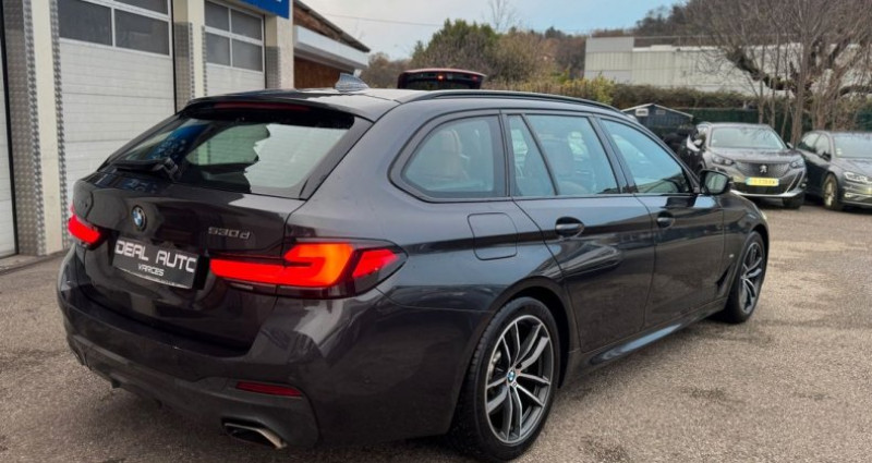 Bmw Série 5 Touring 530dA xDrive 286ch M Sport Steptronic, (Break), Sophistograu métallisé, 17cv, 5 portes, mise en circulation le 27-08-2021, première main, garantie 12 mois. 5 places, longueur : 4,96 mètres, poids en charge 2610 Kg, boîte de vitesse : automatique OPTIONS ET EQUIPEMENTS : Audio - Télécommunications - 6 Haut parleurs - Appel d'Urgence Localisé - Borne Wi-Fi - Commandes du système audio au volant - Commandes vocales - Connectivité avancée sans fil+induction - Ecran tactile - Fonction MP3 - GPS Cartographique - Interface Media - Kit mains-libres Bluetooth - Prise USB - Prise auxiliaire de connexion audio - Radio - Radio numérique DAB - Services connectés - TMC Conduite - Affichage tête haute HUD couleur - Aide au démarrage en côte - Arrêt et redémarrage auto. du moteur - Capteur de luminosité - Capteur de pluie - Commande Mode ECO - Commande du comportement dynamique - Correcteur d'assiette - Démarrage sans clé - Follow me home - Palettes changement vitesses au volant - Régulateur de vitesse - Suspensions Sport - Système de maintien du véhicule en côte - Système de récupération énergie freinage Extérieur - Buses de lave-glace chauffantes - Caméra de recul - Coffre assisté électriquement - Coffre avec fermeture à distance - Echappement à double sortie - Eclairage au sol - Eclairage statique d'intersection - Feux arrière à LED - Feux de jour à LED - Filtre à particules - Jantes Alu - Ouverture du coffre mains-libres - Phares avant LED - Phares de route adaptatifs - Phares directionnels - Radar de stationnement AR - Radar de stationnement AV - Rétroviseurs dégivrants - Rétroviseurs extérieurs électrochromes - Rétroviseurs rabattables électriquement - Rétroviseurs électriques - Système d'assistance au stationnement - Système d'éclairage intelligent à LED - Système de mesure de place disponible - Toit ouvrant panoramique Intérieur - Accoudoir arrière - Accoudoir central AV avec rangement - Banquette 40/20/40 - Banquette AR rabattable - Banquette arrière 3 places - Boite à gants fermée - Boite à gants éclairée et réfrigérable - Clim automatique bi-zones - Compte tours - Eclairage d'ambiance - Ecran multifonction couleur - Filtre à Pollen - Fixations Isofix aux places arrières - Inserts de porte métal - Inserts de tableau de bord métal - Lampes de lecture à l'avant - Miroir de courtoisie conducteur éclairé - Miroir de courtoisie passager éclairé - Ordinateur de bord - Ouverture des vitres séquentielle - Poches d'aumonières - Porte-gobelets arrière - Prise 12V - Rétroviseur intérieur électrochrome - Siège conducteur réglable en hauteur - Siège passager réglable en hauteur - Sièges AV électriques+mémoire conducteur - Sièges avant chauffants - Sièges avant sport - Soutien lombaire ajustable - Tablette cache bagages - Température extérieure - Verrouillage centralisé à distance - Vitrage calorifuge - Vitres arrière électriques - Vitres avant électriques - Volant cuir - Volant multifonction - Volant sport Sécurité - ABS - Airbag conducteur - Airbag passager déconnectable - Airbags latéraux avant - Airbags rideaux - Airbags rideaux AR - Alarme antivol - Alarme périmétrique - Alarme volumétrique - Antidémarrage électronique - Antipatinage - Appuis-tête avant actifs - Contrôle de Traction - Contrôle élect. de la pression des pneus - EBD - ESP - Phares antibrouillard LED - Système de détection de somnolence - Troisième ceinture de sécurité - Témoin de bouclage ceinture conducteur - Témoin de bouclage des ceintures AV Autres équipements et informations : - Sophistograu métallisé - Clé intelligente BMW Display Key - Pack Innovation - Shadow Line M brillant étendu - Cuir marron Ideal Auto Varces 34 rue du Peuil 38760 Varces
