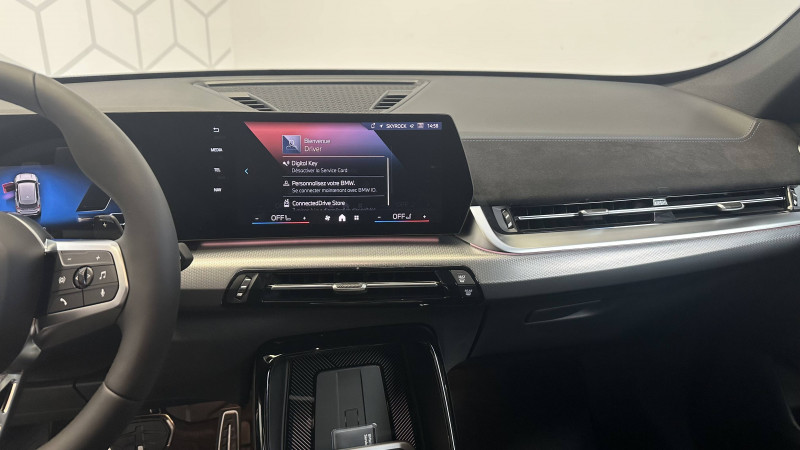 2 porte-gobelets sur la console centrale / 3ème feu stop LED intégré au spoiler AR / 5 places / Accoudoir central AV avec panneau de commande intégré / Active Guard Avertissement de franchissement de ligne avec impulsion sur la direction (>70km/h).Avertisseur de collision frontale avec intervention de freinage (3-210km/h).Avertisseur de présence d'un véhicule lors d'un changement de direction vers la gauche avec action sur les freins (3-35km/h).Avertisseur d'intersection (détection risque collision latérale 3-85km/h).Avertisseur présence piéton/cycliste lors d'un virage en intersection (3-35km/h).Assistance de limitation de vitesse. / Airbag entre les deux sièges AV en cas de collision latérale / Airbag passager AV désactivable via la clé / Airbags de tête à l'AV et aux places latérales AR / Alarme antivol / Appel d'Urgence Intelligent (durée de vie de la voiture) / BMW Digital (BMW Maps, RTTI sur itinéraire, Apple CarPlay, Android Auto, BMW Intelligent Personal Assistant) / BMW EfficientDynamics Système de récupération de l'énergie au freinage, Fonction d'arrêt et de redémarrage automatique du moteur, Direction à assistance électrique Servotronic (assistance variable selon la vitesse) / BMW Live Cockpit Navigation Plus avec Ecran Widescreen / BMW Live Cockpit Plus / Boîte de vitesses automatique 7 rapports avec palettes au volant / Buse de lave-glace pour caméra de recul / Capteur d'impact (Activation de l'airbag, des feux de détresse, de l'éclairage intérieur, Déverrouillage des portes, Activation de la borne batterie de sécurité) / Carte SIM 4G LTE pour les Services ConnectedDrive / Ceintures de sécurité 3 points pour toutes les places / Ciel de pavillon M Anthracite / Clés radiocommandées à mémorisation automatique des réglages "Personal Profile" (x 2) / Clignotants LED intégrés aux feux de jour / Climatisation automatique 2 zones Contrôle de la température et du volume d'air distribué avec 5 niveaux d'intensité, réglables séparément entre le conducteur et le passager. Fonctionnalité SYNC pour que les réglages du conducteur s'appliquent à l'ensemble de l'habitacle. Contrôle commun de la température à l'AR. Capteur d'humidité et d'ensoleillement, filtre à charbon actif et microfiltre. / Commande électrique du hayon de coffre / Compartiment à bagages : 2 crochets de sac, filet sur panneau garuche, prise 12V, rangement additionel au modèle) sous plancher amovible / Console centrale avec insert noir brillant / Contour de vitres noir mat / Contrôle de freinage en courbe CBC / Contrôle dynamique du freinage (DBC) / Désignation du modèle à droite du hayon / Détecteur de pluie et allumage automatique des projecteurs / Eclairage de bienvenue autour du véhicule / Eclairage de plaque d'immatriculation à LED / Eléments extérieurs M Sport / Eléments intérieur M / Equipements supplémentaires Pack M Sport / Feux AR à LED intégrant les clignotants / Feux de sortie de porte AV (porte ouverte) / Filtre à particules et catalyseur à oxydation / Fixations ISOFIX / i-Size pour les deux sièges AR extérieurs / Fonction cargo : Réglage de l'inclinaison de la banquette AR à 12 degrés (volume de chargement supplémentaire d' environ 85-100 litres) / Fonctionnalité "Follow Me Home" (éclairage d'accompagnement) : les feux de croisement restent allumés quelques instants une fois le contact coupé / Fonction Start&Stop automatique / Freinage de séchage / Frein de parking électromécanique avec fonction "Automatic Hold" / Grilles de calandre cerclées de chrome avec barreaux verticaux noirs / HotSpot Wi-Fi / Hybridation légère 48V - Fonctionnalité e-Boost via moteur électrique de 19ch situé dans la boite de vitesse / Injection directe Common Rail / Inserts décoratifs Aluminium M Hexacube / Jantes en alliage léger 18" style 838 M Gris foncé. Bicolore 7.5 J x 18 pneus 225/55 R 18. Montage chaînes à neige impossible. / Kit de mobilité Plus - Bouteille avec liquide anti-crevaison - Compresseur avec alimentation autonome via batterie rechargeable - Système se fixant au centre de la jante avec maintient de pression automatique du pneu crevé durant la conduite - Simple d'utilisation et réduction du temps passé sur le lieu de la panne / Kit éclairage / Kit rangement / Lève-vitres AV/AR électriques avec commande par impulsion et sécurité enfants / Mesure individuelle de pression des pneumatiques / My Modes: 5 modes de conduite (Personnel, Efficient, Sport, Relax, Expressive) / Norme General Safety Regulation 2 (GSR2) / Notice d'utilisation de la voiture intégrée et carnet d'entretien électronique avec BMW Service History / Ordinateur de bord avec Check-Control et indicateur de température extérieure / Pare-choc AR avec inserts chromés en L / Pare-choc AV avec air curtains en noir mat / Parking Assistant Comprend l'option Caméra de recul. Manoeuvres de stationnemment en créneau et en bataille facilitées par mesure automatique, Assistant de marche AR/Auto-reverse / Performance control : contrôle du moteur et interventions freinage pour améliorer l'agilité et la neutralité en virage / Personal eSIM Personal eSIM est la version électronique, intégrée au véhicule, de la carte SIM traditionnelle. Vous l'utilisez via un abonnement souscrit auprès d'un opérateur téléphonique et transformez ainsi votre BMW en périphérique mobile supplémentaire : - Connectivité en 5G - Meilleure qualité de connexion grâce aux antennes de la voiture - Connexion Hotspot Wi-Fi avec la possibilité de connecter jusqu'à 10 appareils (ex : tablette numérique, smartphone, ordinateur, ...) / Planche de bord en similicuir Sensatec Habillage de la planche de bord en Sensatec noir avec surpiqûres grise (surpiqûres bleues en combinaison avec une sellerie Alcantara / Sensatec), Parties supérieures du tableau de bord et du panneau de porte / Poignées de portes affleurantes / Ports USB Type C pour la recharge à l'AV (x2) et