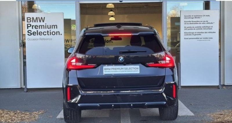 EQUIPEMENTS ================== - Accès Confort - Affichage Tête Haute HUD couleur - Aides à la conduite Driving Assistant - Aides à la conduite Driving Assistant Plus - Aides au stationnement Parking Assistant Plus - Alarme antivol - Appel d'Urgence Intelligent - Avertisseur de risque de collision et système anti collision à basse vitesse - Banquette arrière coulissante 60/40 et rabattable 40/20/40 - BMW Live Cockpit Navigation Professional - Boîte de vitesses automatique avec palettes au volant - Ciel de pavillon M anthracite - Commande type de boîte de vitesses - Compte-tours - Dalle de recharge par induction pour smartphone - Ecrous antivol de roues - Equipements spécifiques UE - Feux de route anti-éblouissement - Filet de séparation du coffre - Finition M Sport - Fixation i-Size ou Isofix à l'avant avec désactivation de l'airbag passager - Inserts décoratifs M Hexacube Aluminium clair - Kit de mobilité - Mesure individuelle de pression de pneumatiques - Omission sigle - Pack Evasion - Pack Innovation - Personal eSim - Planche de bord Sensatec - Projecteurs Advanced Full LED - Rails de toit Shadow Line M brillant - Repair Inclusive - 3 ans/200.000 km - Rétroviseur intérieur anti-éblouissement - Rétroviseurs rabattables et intérieur et extérieur gauche antiéblouissement - Saphirschwarz métallisé - Sellerie Veganza perforé Schwarz - Services Apres-Vente connectes et ConnectedDrive - Shadow Line M brillant - Sièges avant chauffants - Sièges avant Sport - Suspension Adaptative M - Système Hi-Fi Harman Kardon - Toit ouvrant panoramique en verre - Triangle de présignalisation et trousse de premiers secours - Tuner radio numerique DAB - Vitrage calorifuge - Volant M gainé cuir